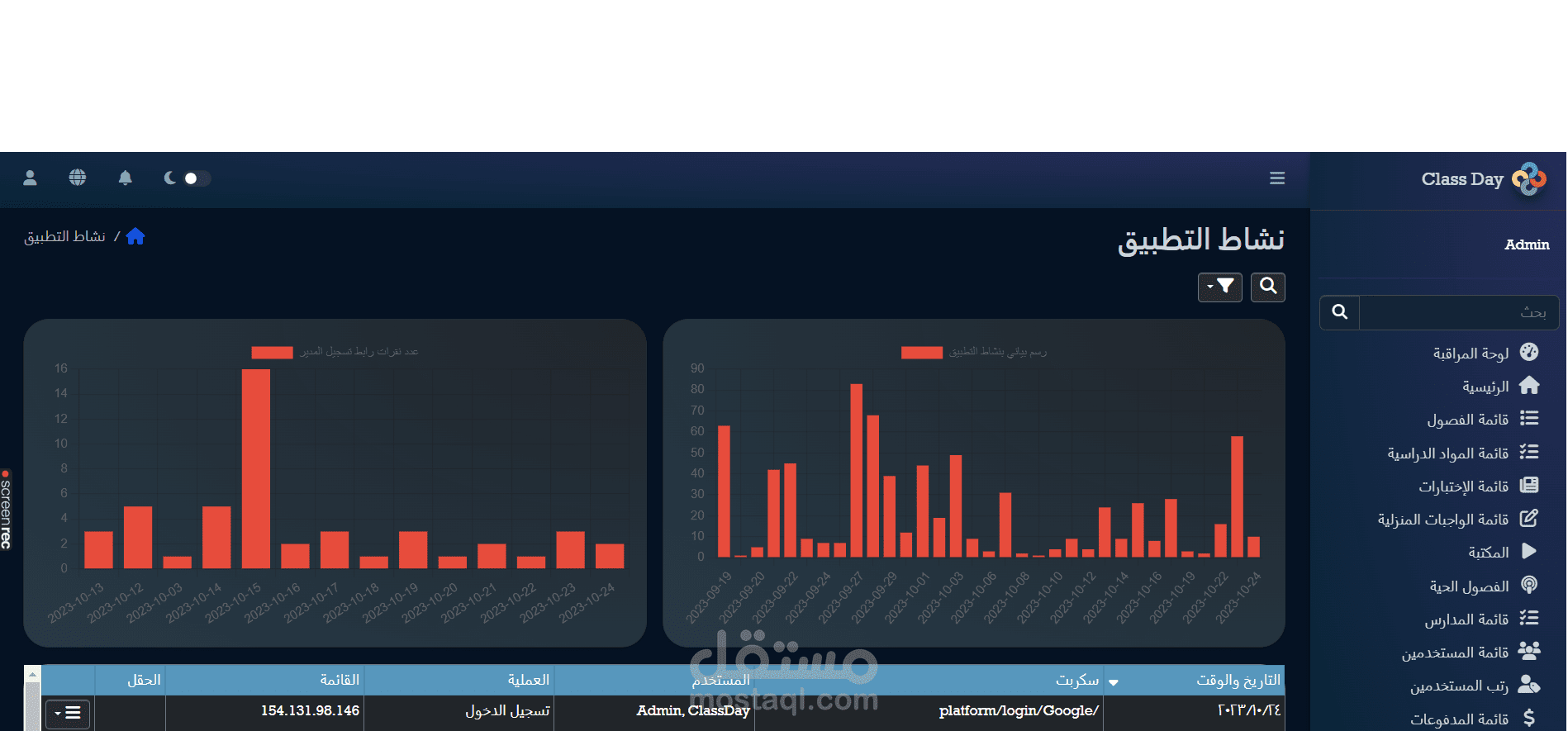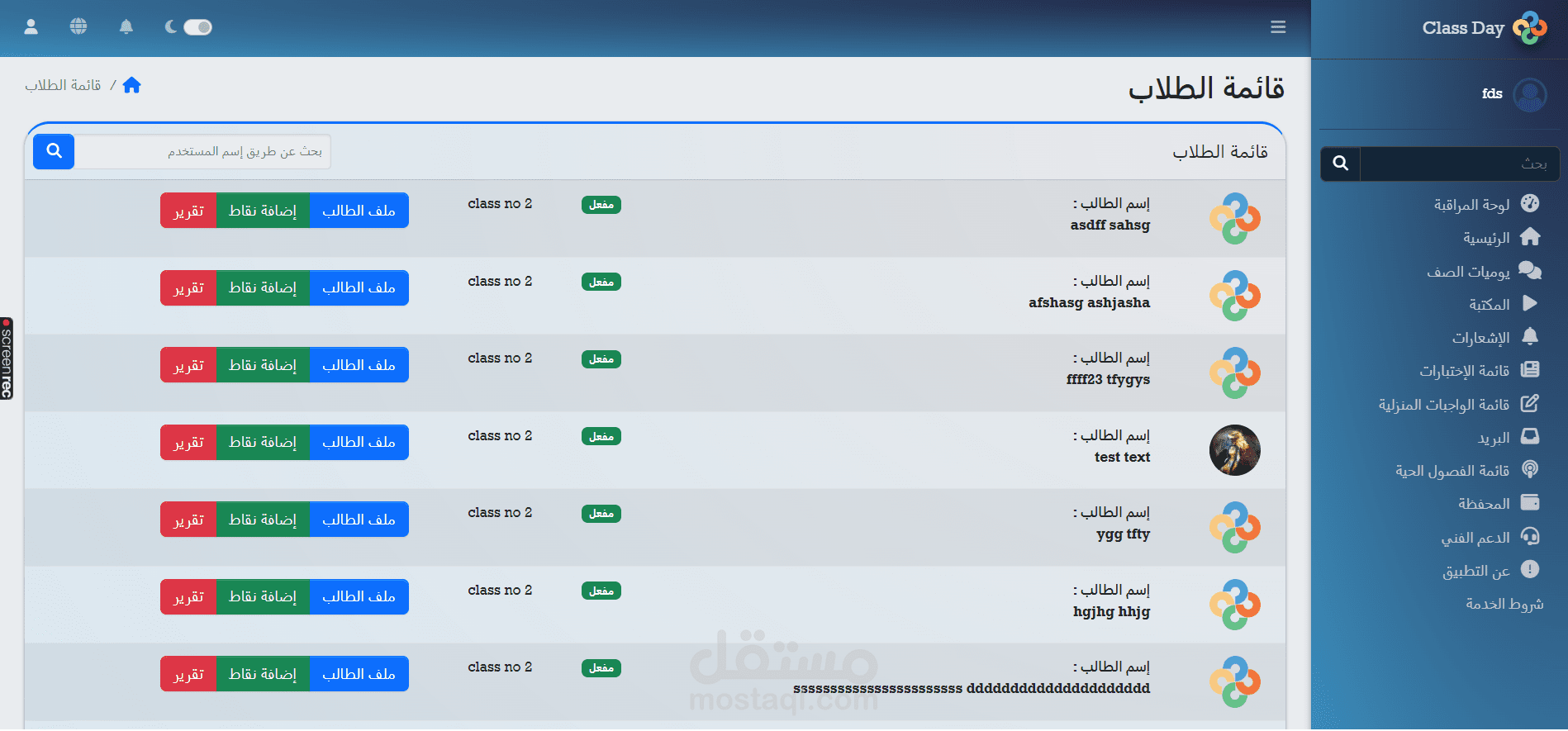 3- قائمة يوميات ونشاط الطلاب والطالبات
