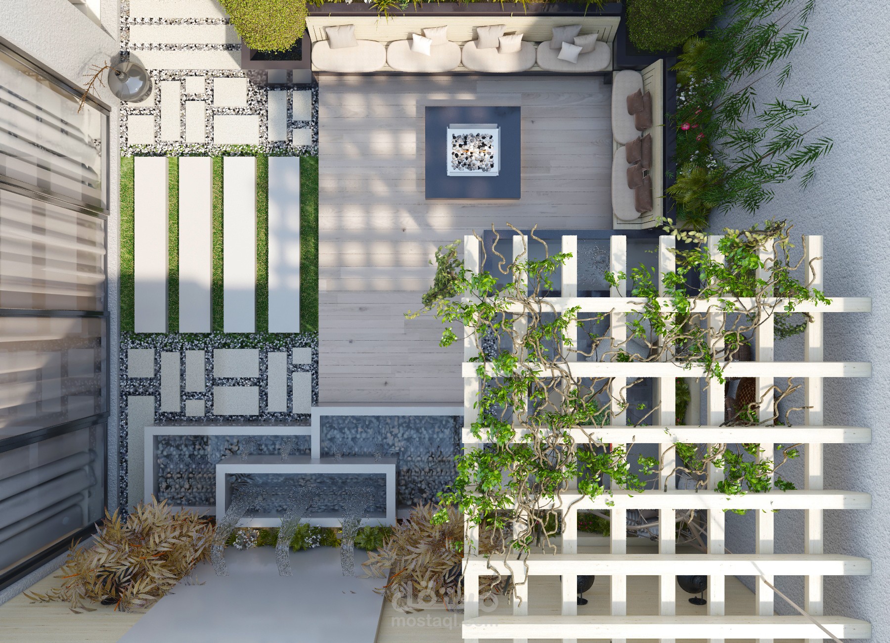 تصميم فراغ مكشوف وتوظيفه كجلسة خارجية وحديقة صغيرة