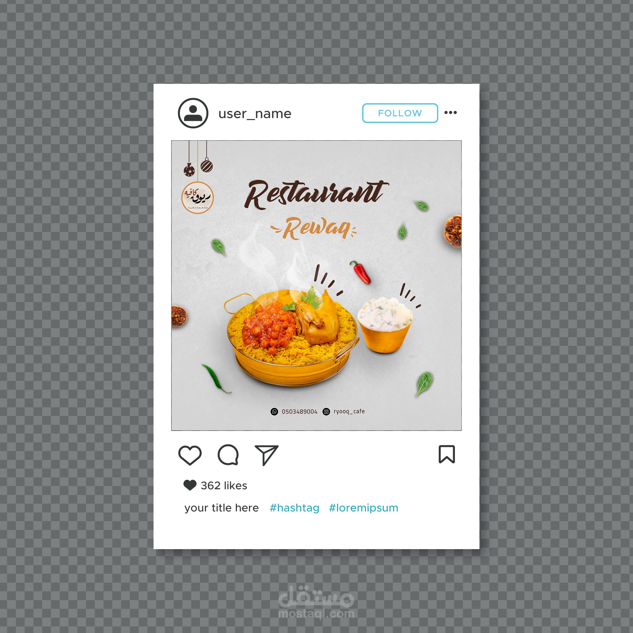 Social media designs for a restaurant in Saudi Arabia