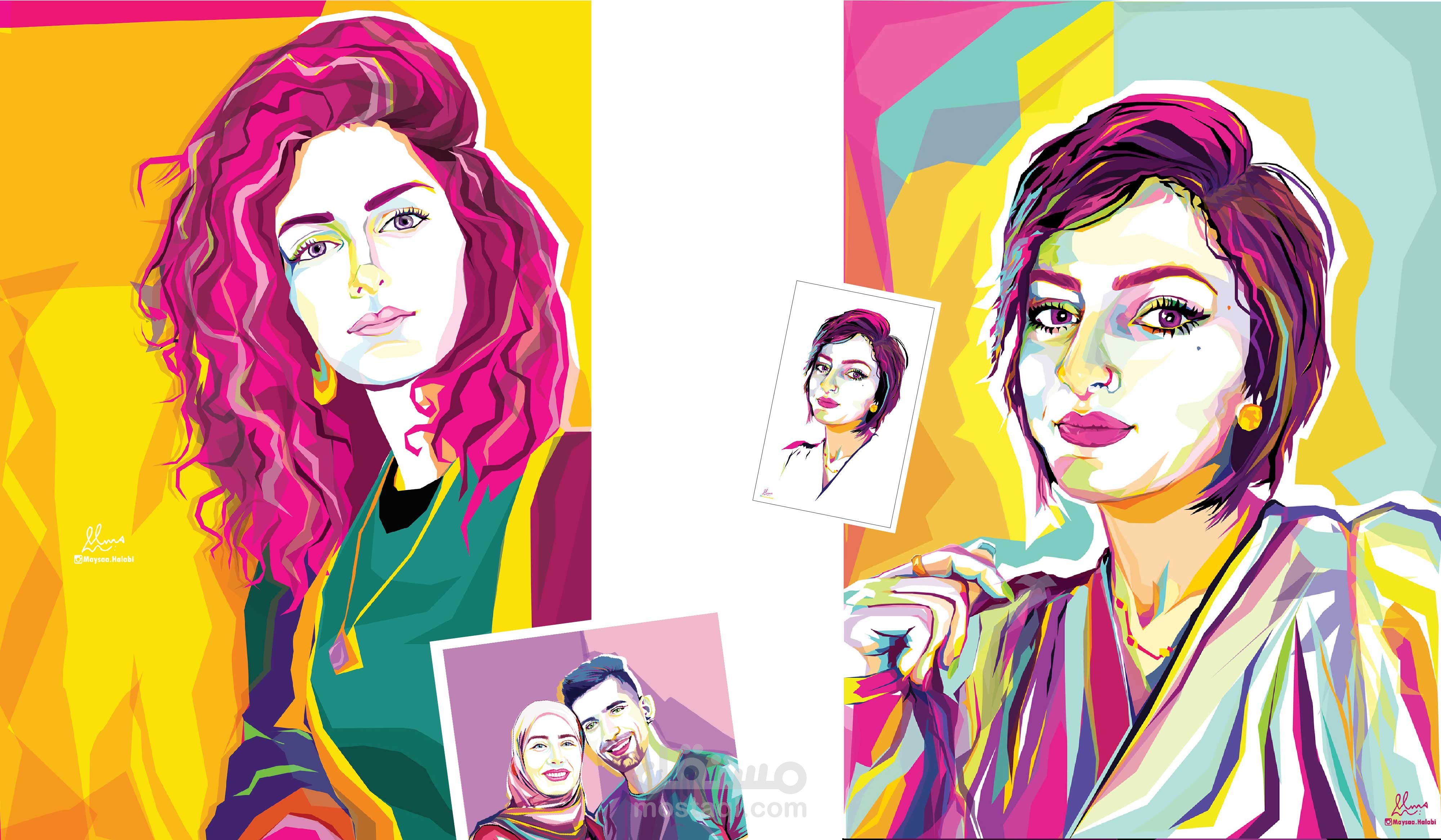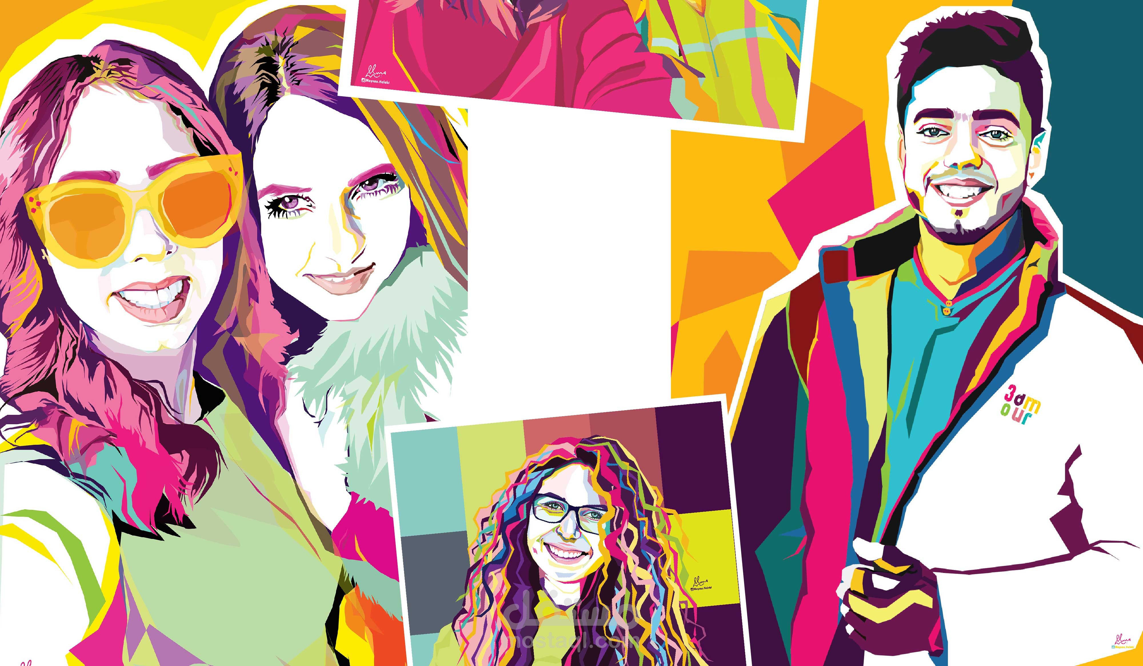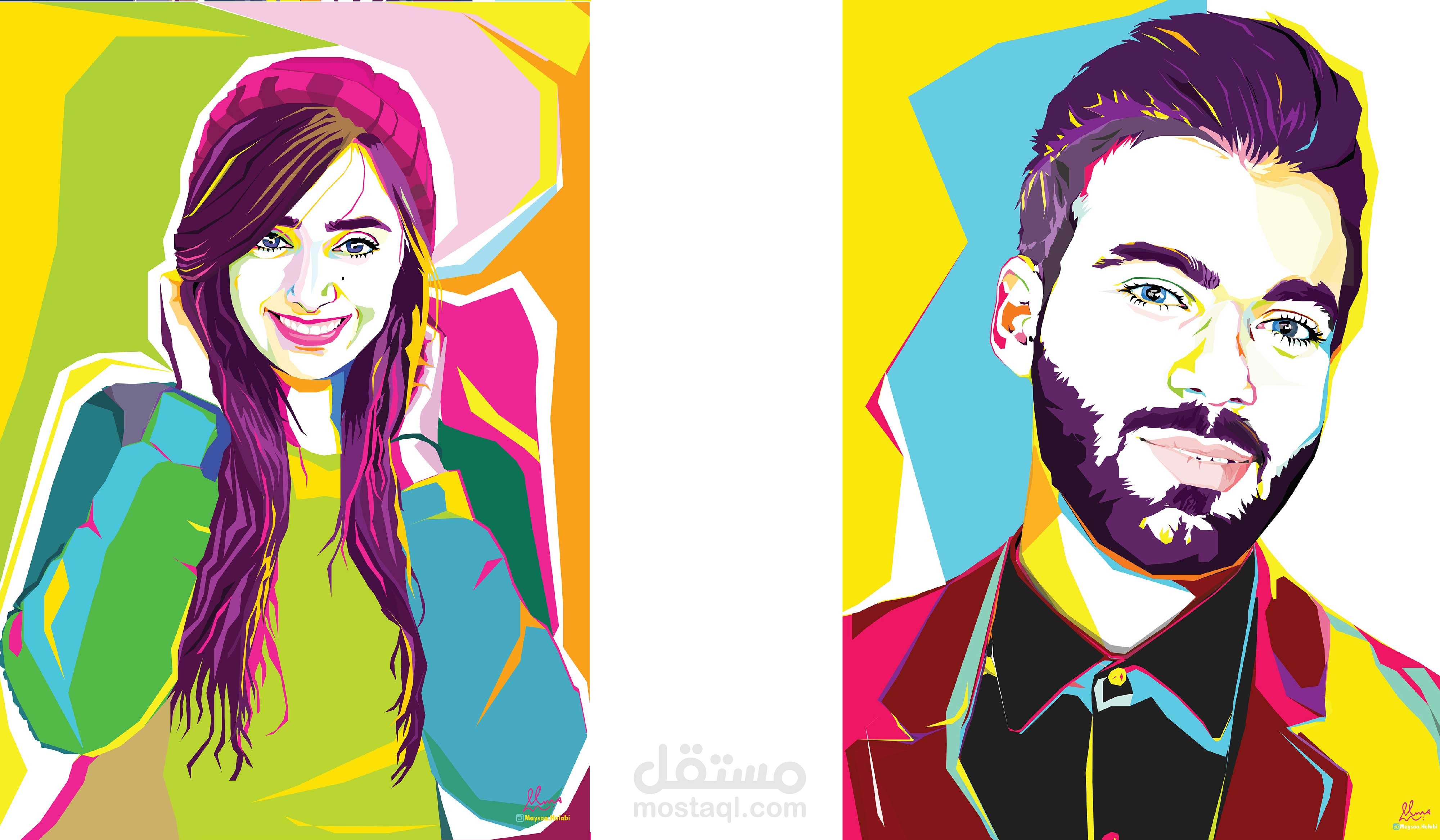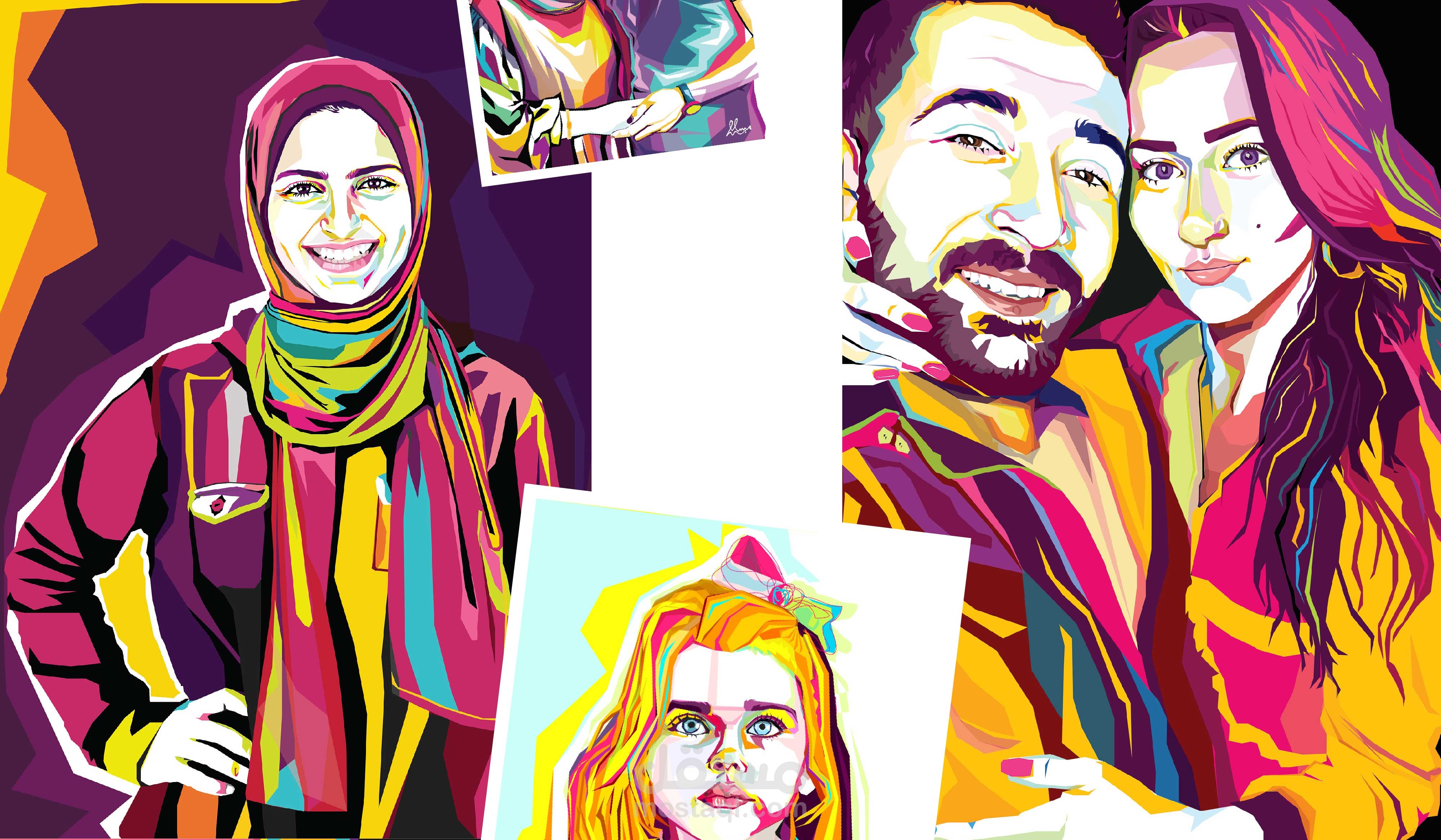 لوحات بورتريه متعددة الألوان مرسومة بأسلوب يشبه البوب آرت ذات طابع خاص