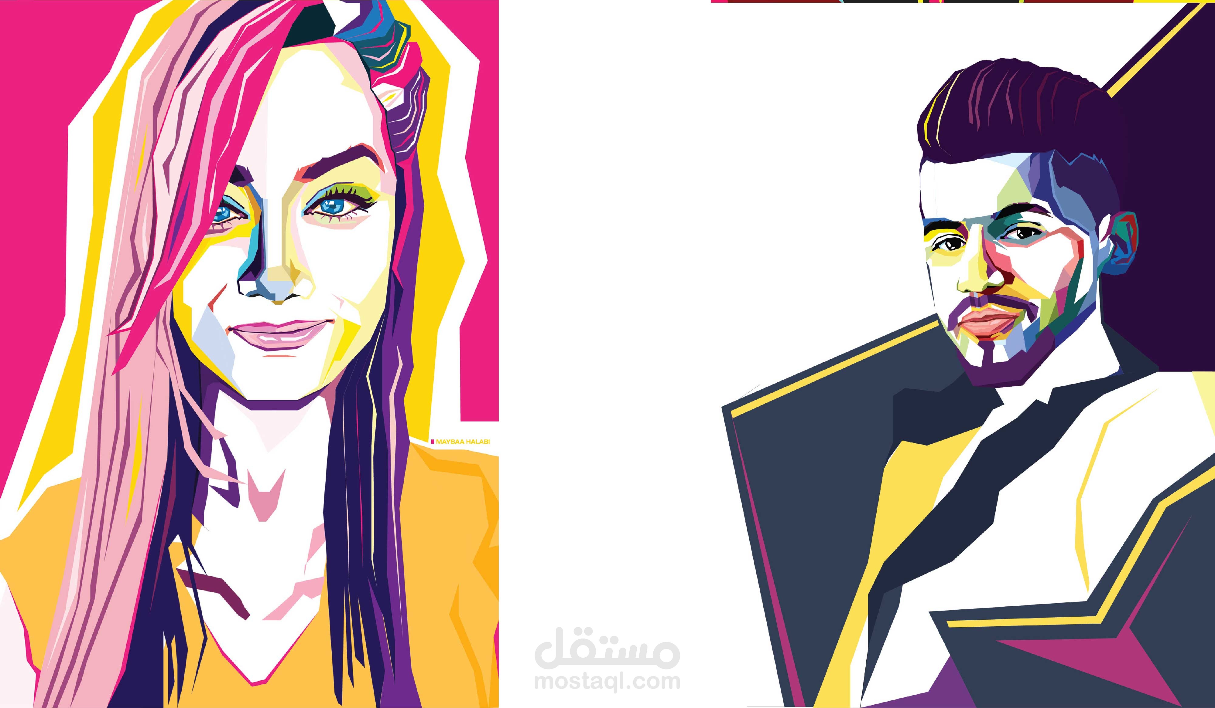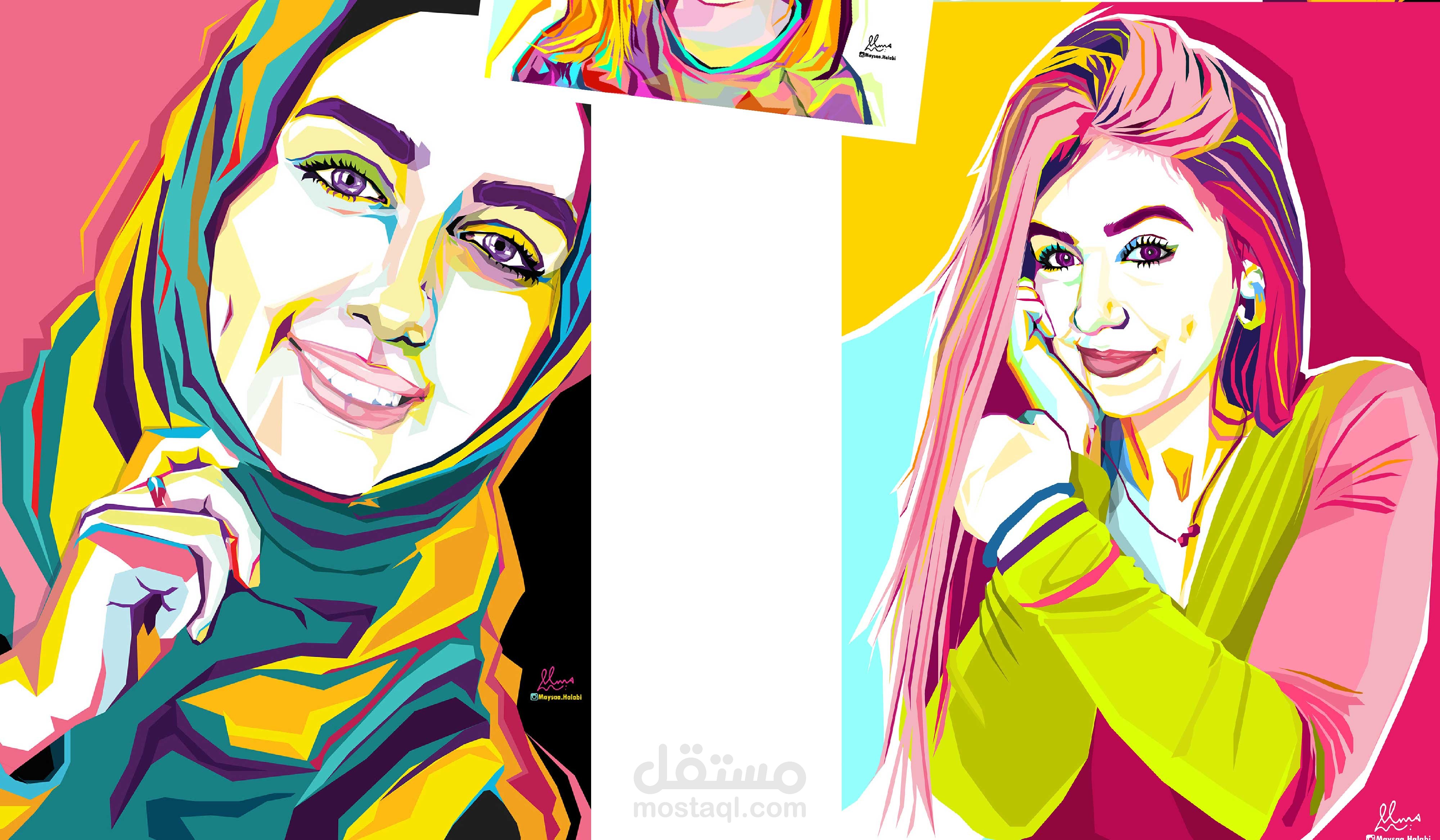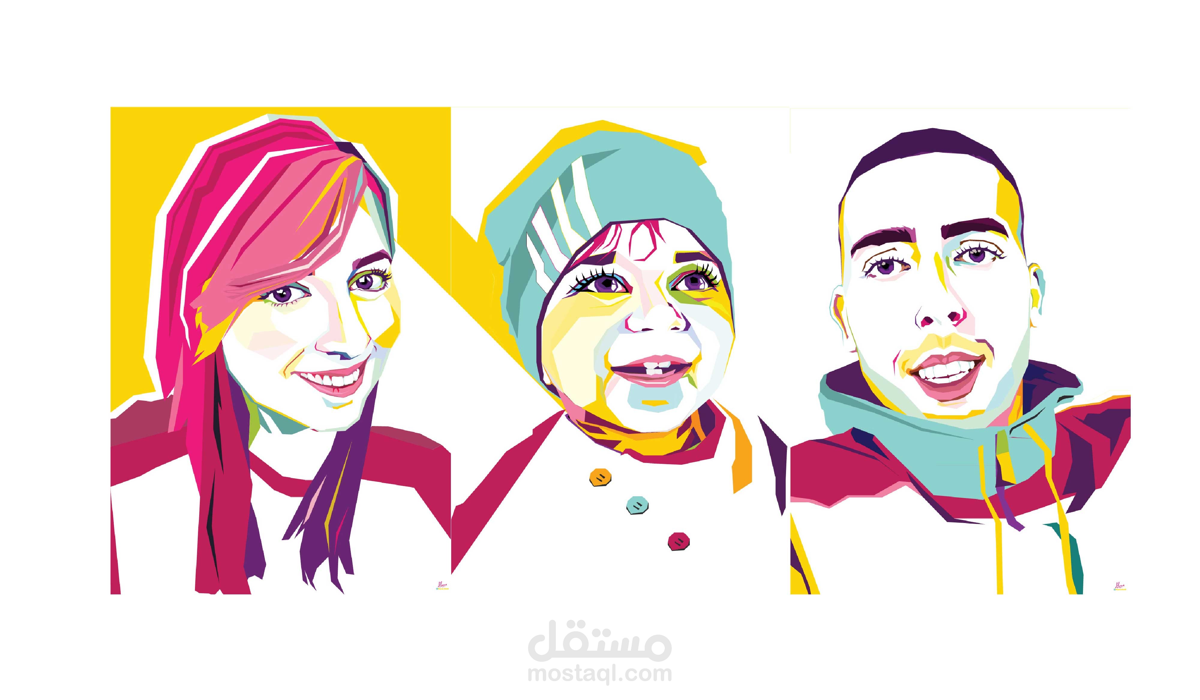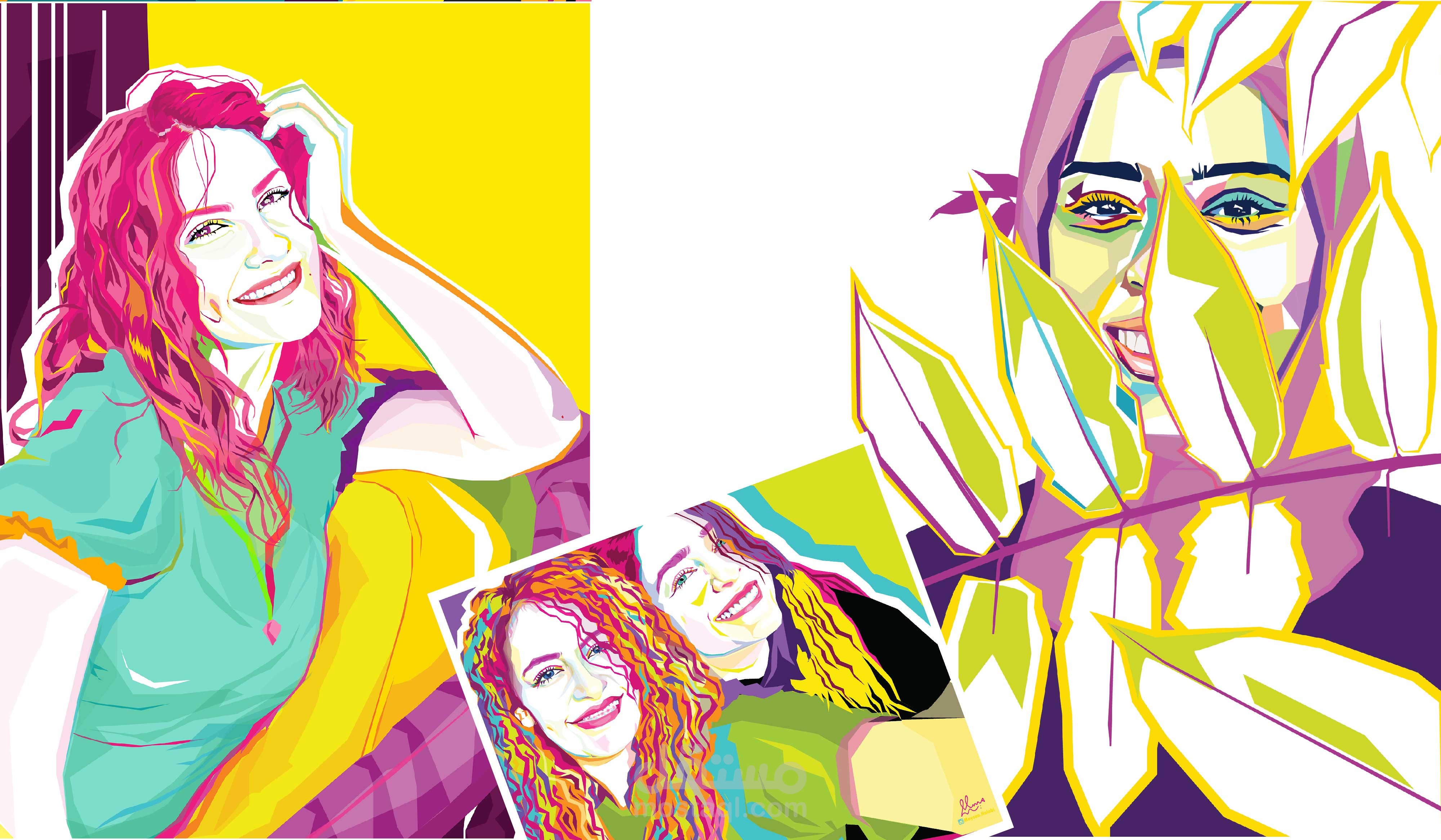 لوحات بورتريه متعددة الألوان مرسومة بأسلوب يشبه البوب آرت ذات طابع خاص