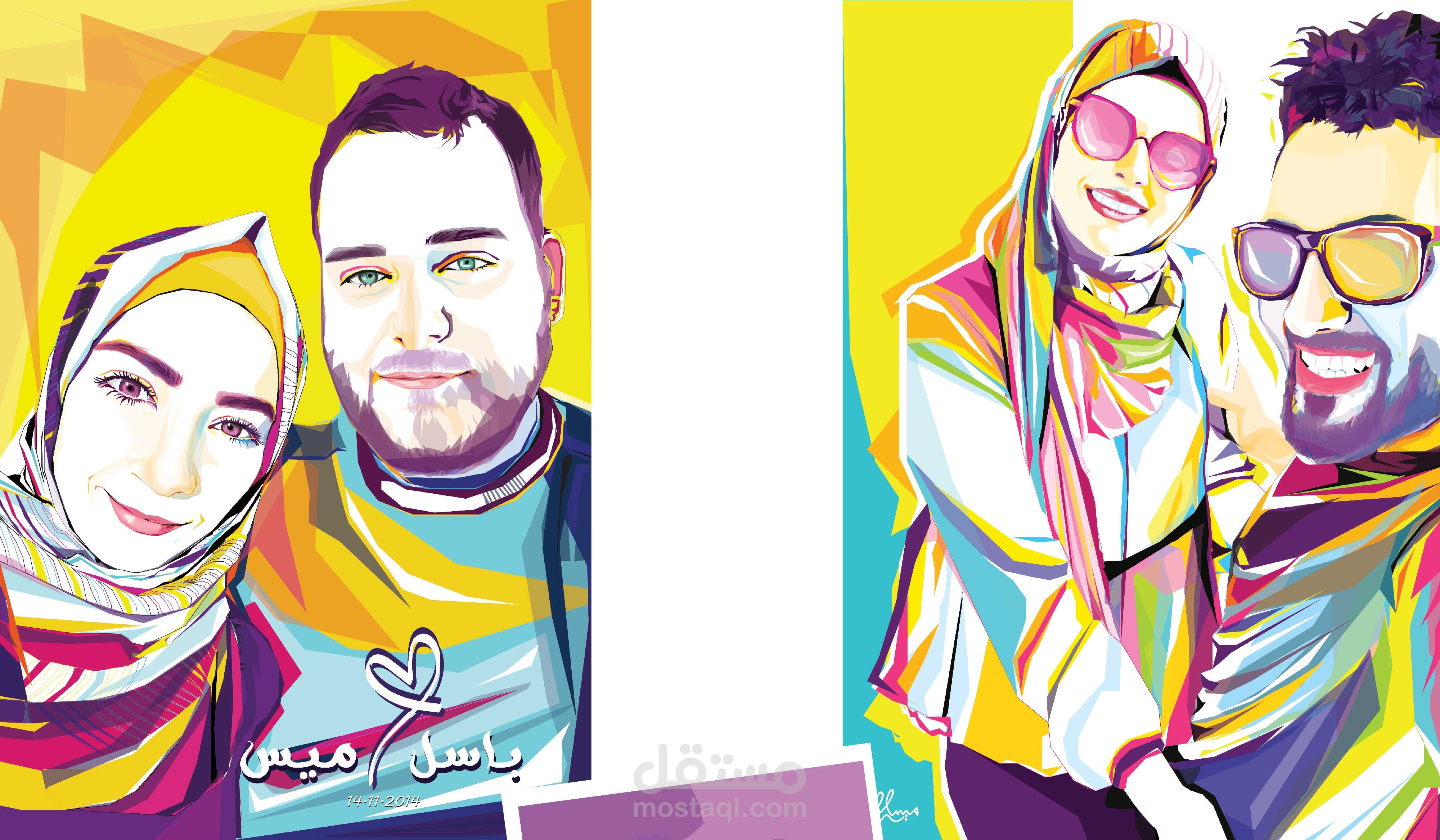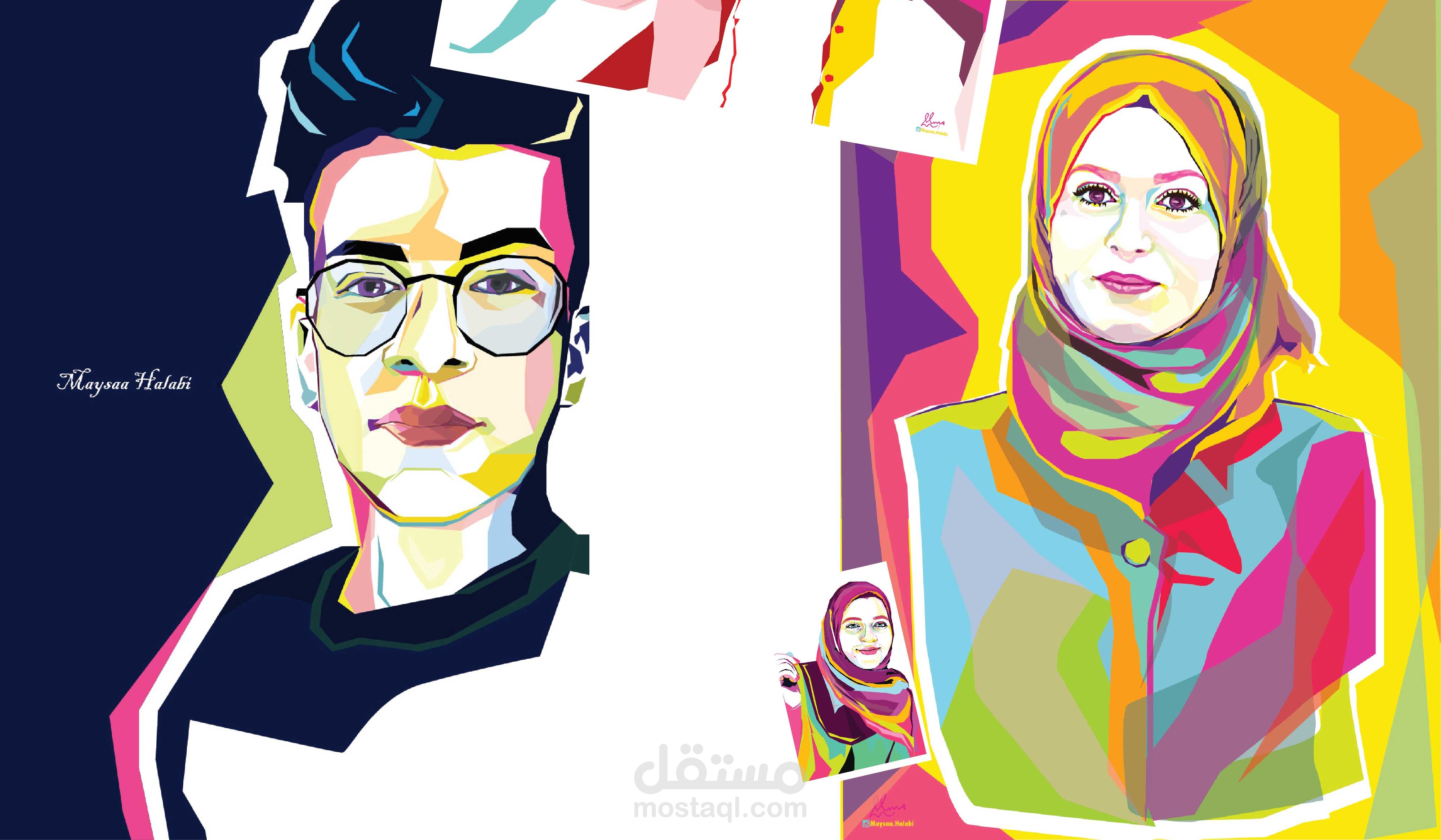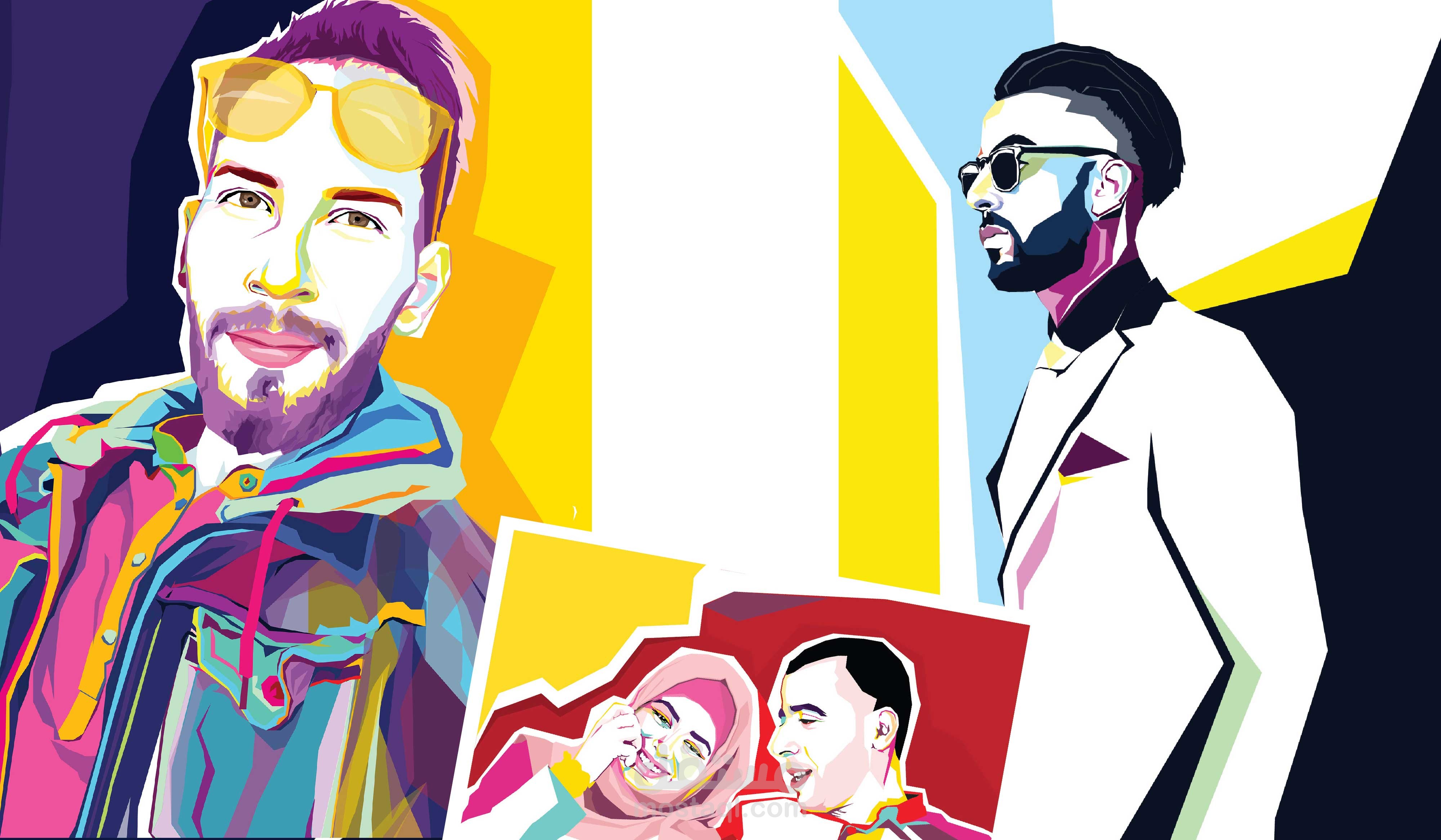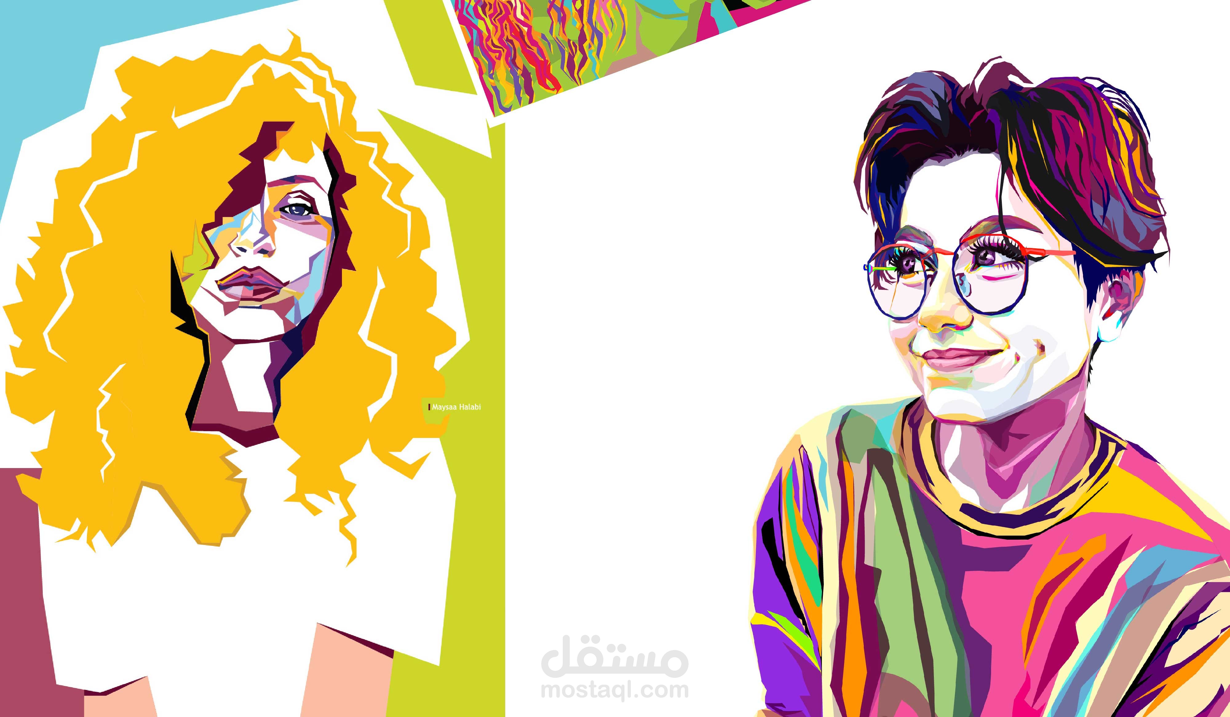 لوحات بورتريه متعددة الألوان مرسومة بأسلوب يشبه البوب آرت ذات طابع خاص