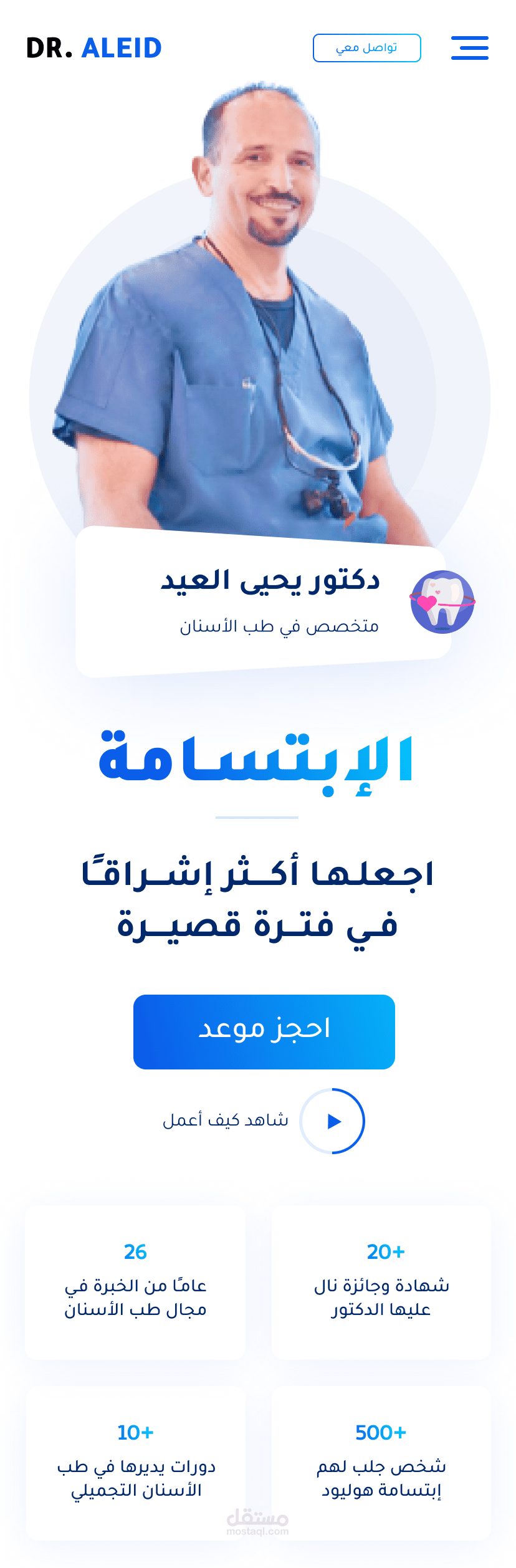 إعادة تصميم واجهة المستخدم لموقع دكتور أسنان متجاوب 100% مع جميع شاشات الأجهزة الذكية