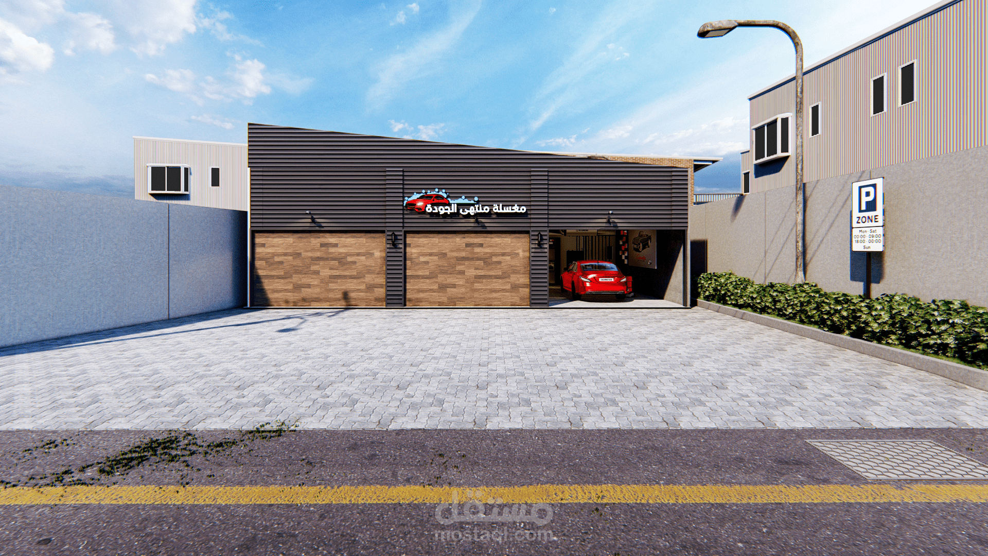تصميم لمغسلة سيارات ستايل INDUSTRIAL