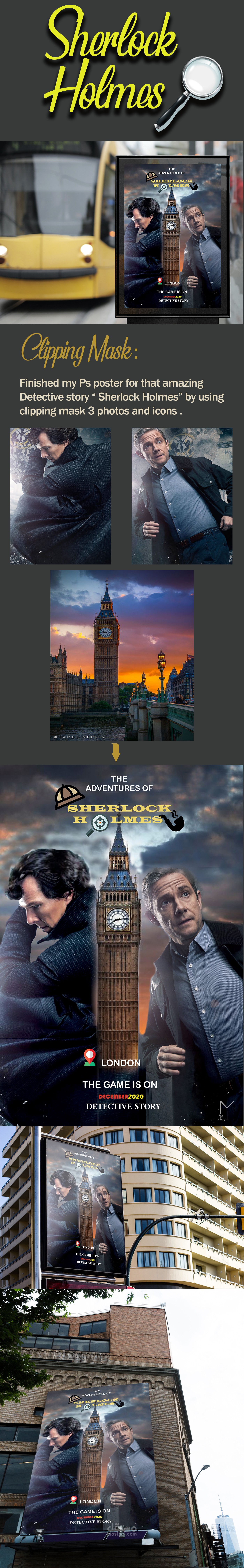 اعاده تصوير للبوستر الرسمى لمسلسل شارلوك هولمز باستخدام الدمج ( clipping Mask ) ببرنامج الفوتوشوب