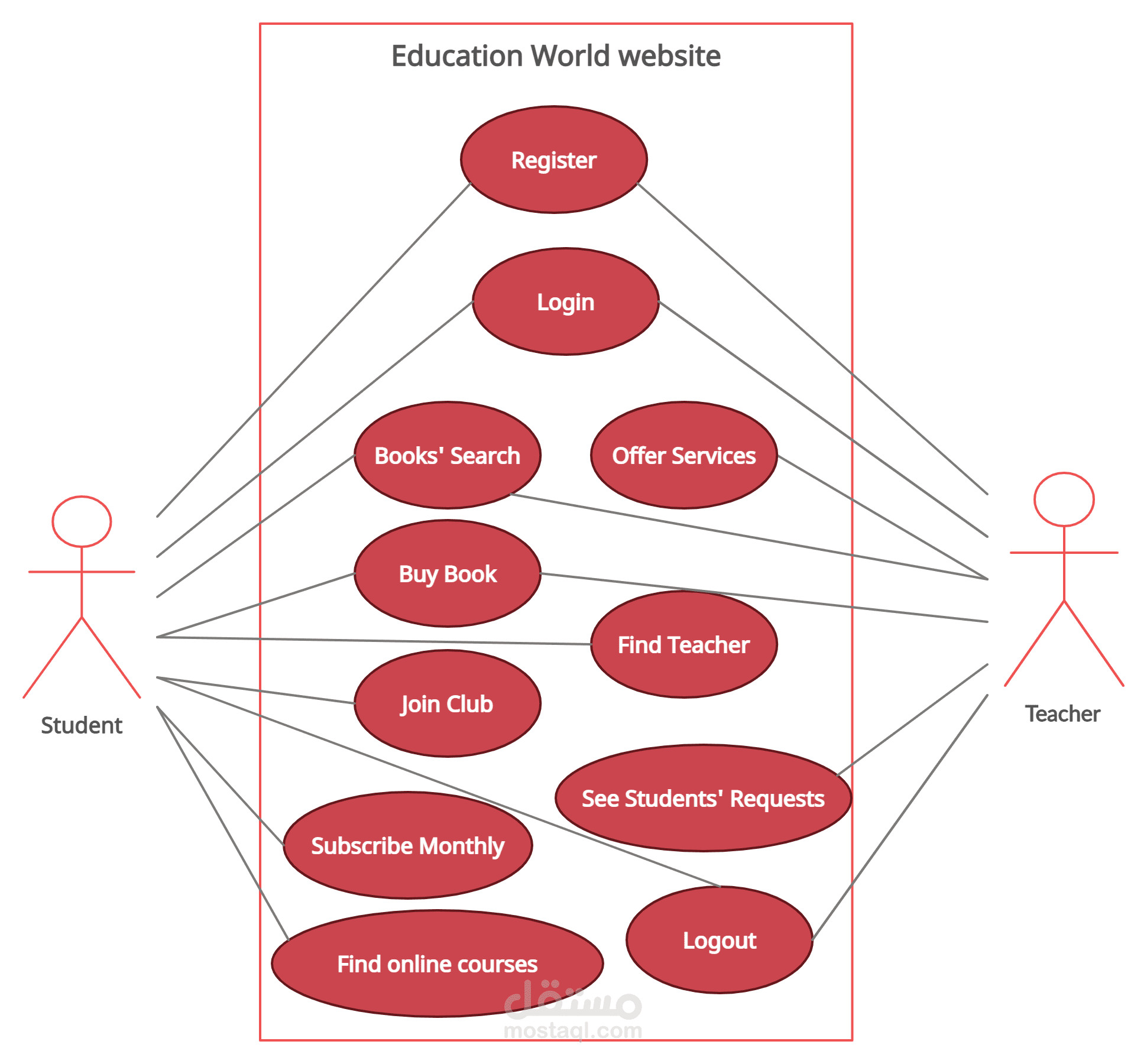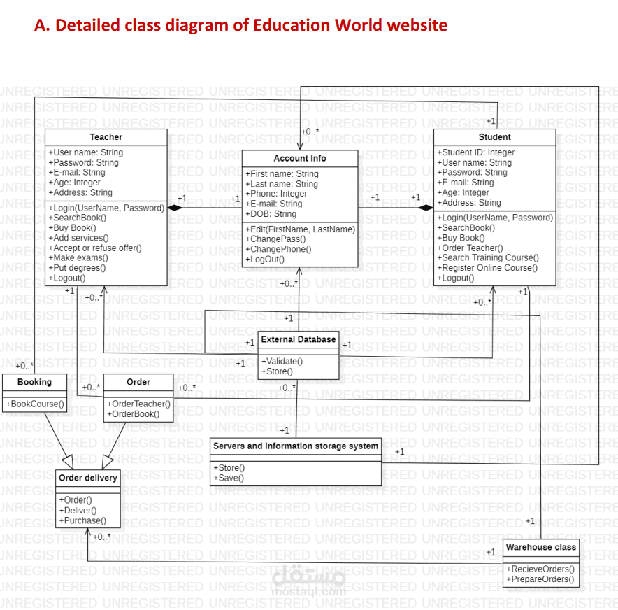 إنه نموذج تحليل (Analysis) لموقع ويب يسمى ب Education World Website الذي يقوم بتنظيم العملية التعليمية بين الطلاب والمعلمين، لذلك ف قد قمت بتحليله علي شكل مخططاتUML مثل Use Case Diagram، ووصف تفصيلي لاثنين من Use Cases (عبارة عن Sequence Diagrams لعمليتي تسجيل الدخول والبحث على دورات تدريبية اونلاين)، بالإضافة الي مخطط Class Diagram للنظام الذي يوضح Generalization وComposition، ومخطط Class Diagram تفصيلي لفئة النظام يشتمل على Object attributed and Object actions، بالإضافة إلى وصف كل هذه المخططات. إنه تحليل دقيق موثوق، يمكنني إضافة المزيد من المخططات والتفاصيل حسب الطلب.