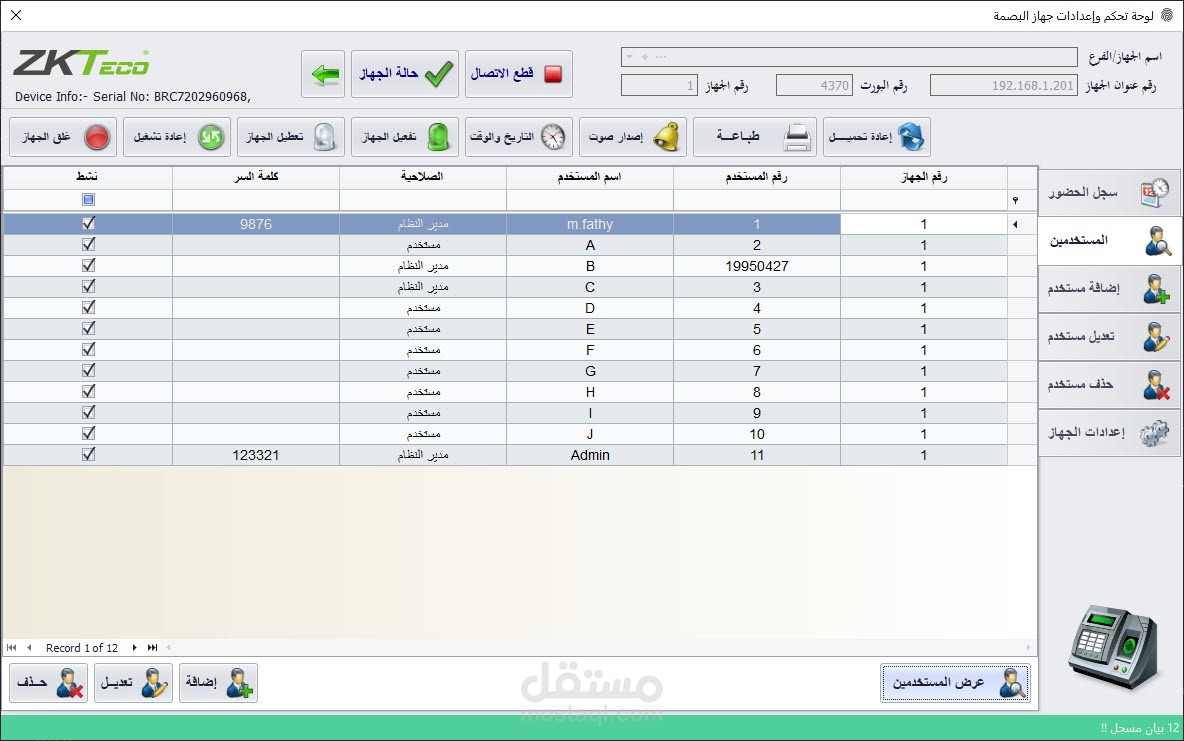 - عرض وتعديل واضافة جميع بيانات الموظفين على الجهاز.