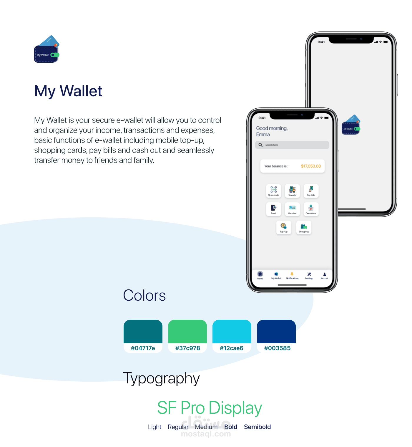 The e-wallet application helps users to manage their bank cards, track all their transactions, finish funds or pay bills directly from the my wallet app, wherever you are, and whatever you want.