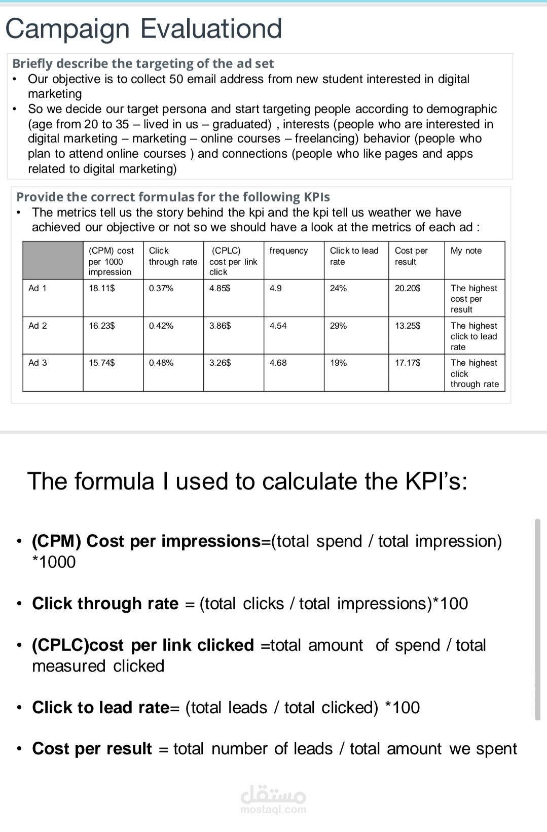 تقييم لنتائج حملة اعلان ممول على الفيس بوك