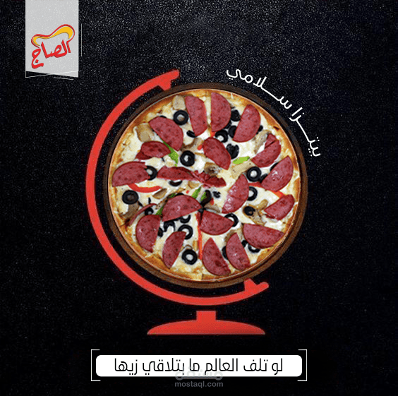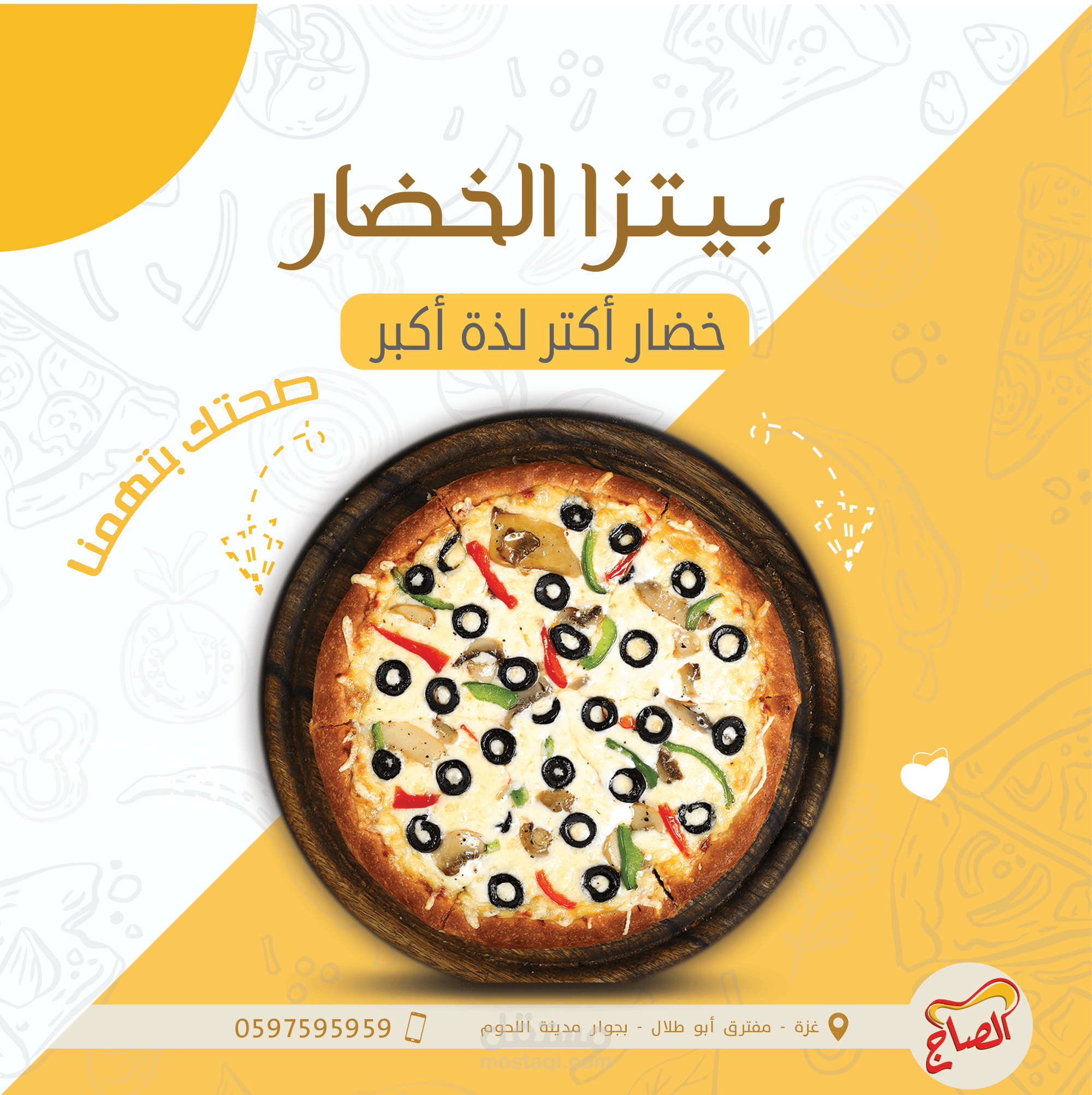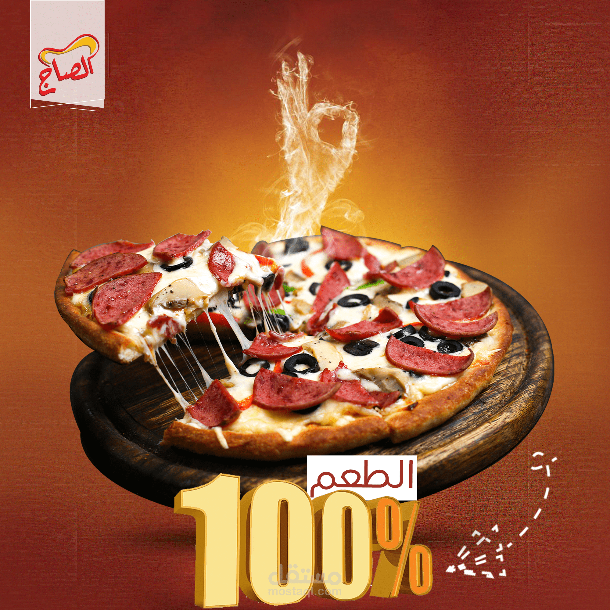 تصاميم سوشال ميديا لصفحة مطعم عبر فيسبوك تشمل أنواع متعددة للبيتزا.