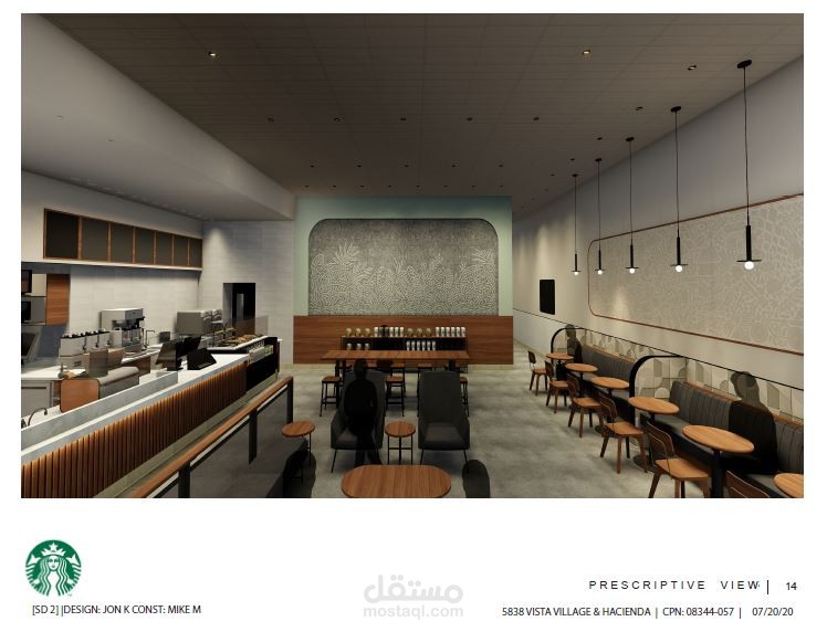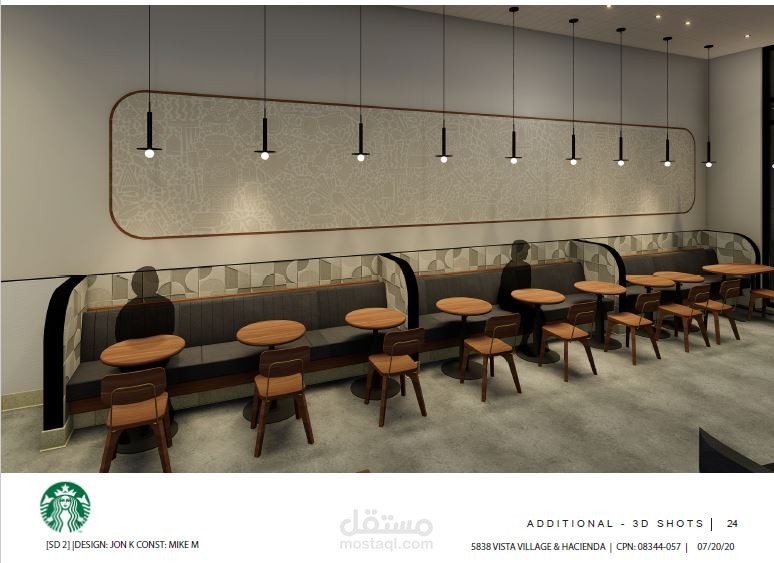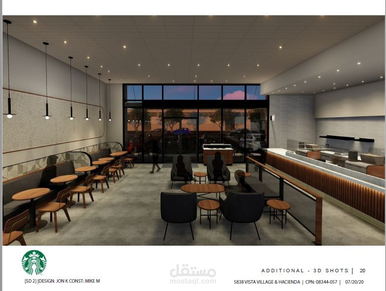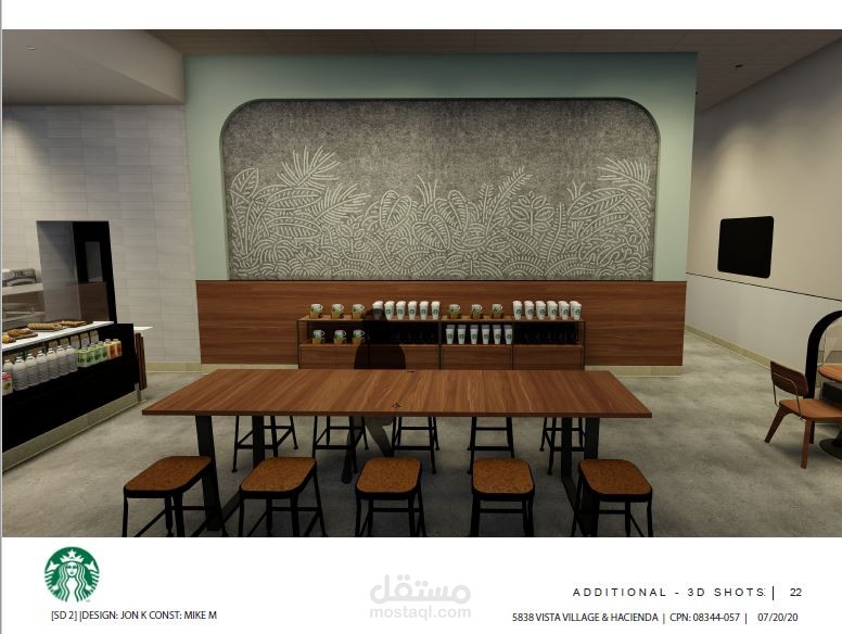 تصميمات 3d لمتاجر starbucks الشهيرة و ايضا تم تنفيذ الرسومات التنفيذية لها بكافة الواجهات و الرسومات الانشائية