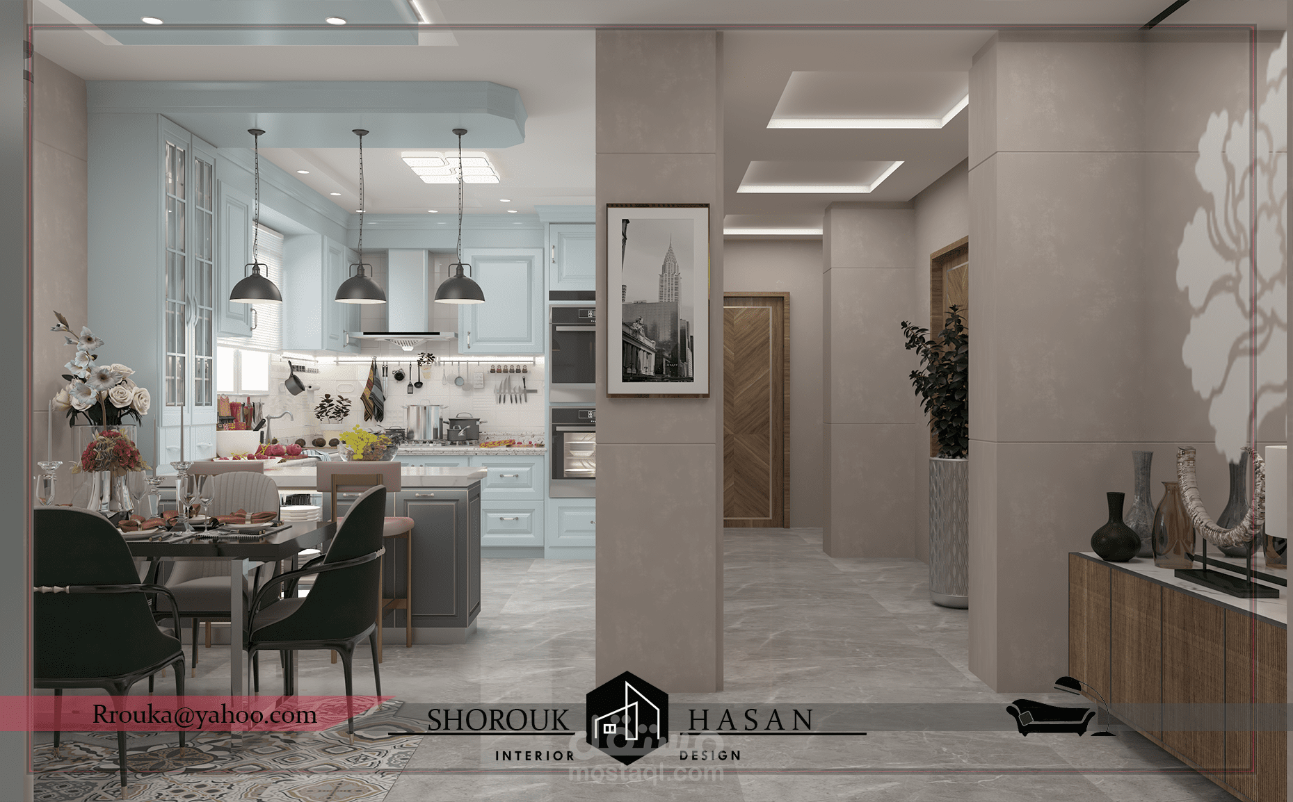مطبخ نيو كلاسيك بألوان الباستيل الهاديه