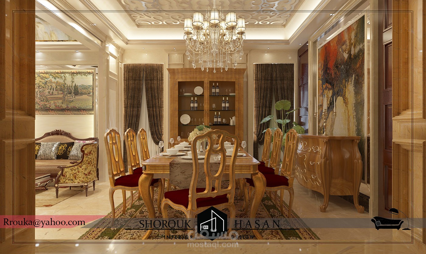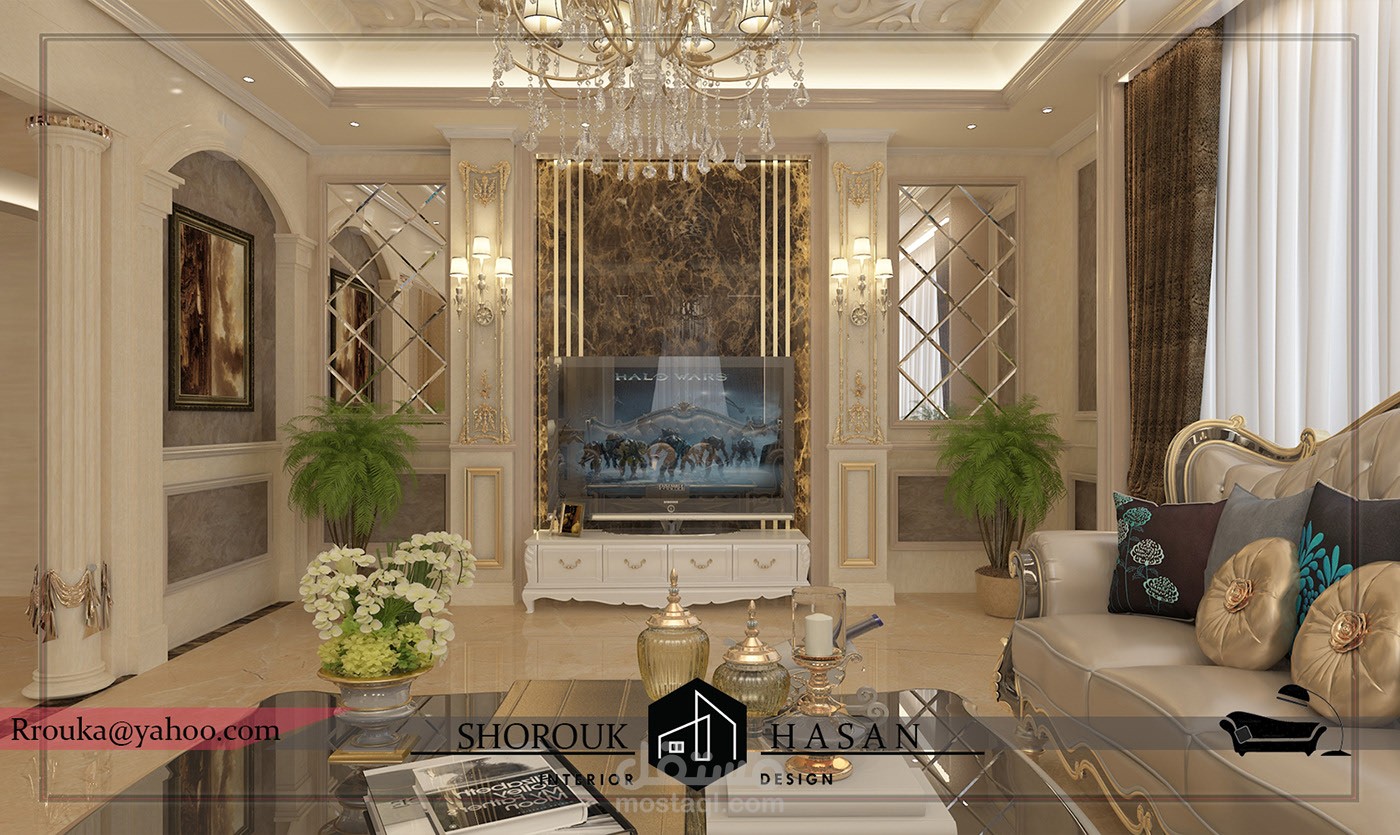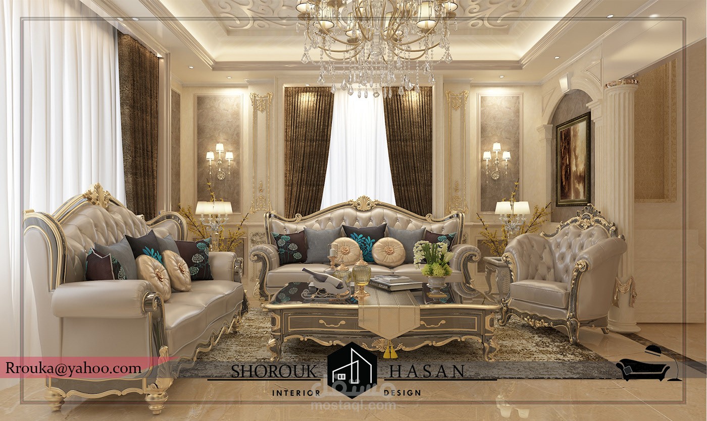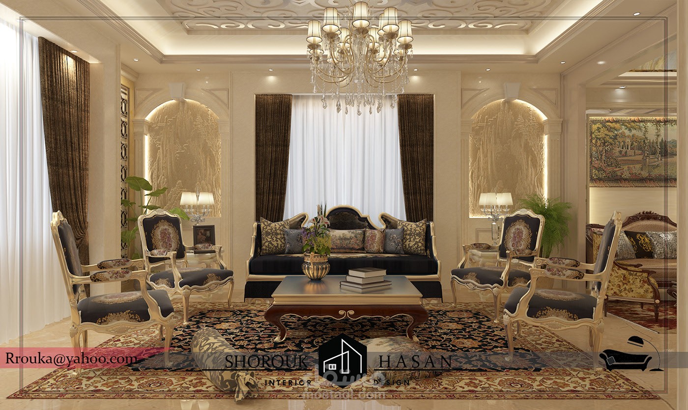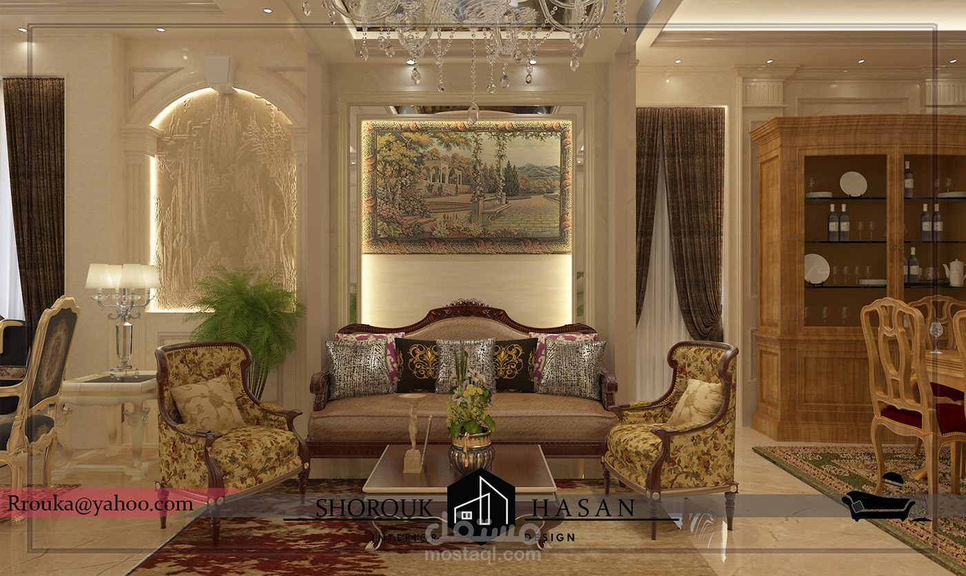 عمل تصميم لريسبشن فيلا كلاسيك بأضافة فرش العميل مع الاستايل المطلوب بلمسه جماليه
