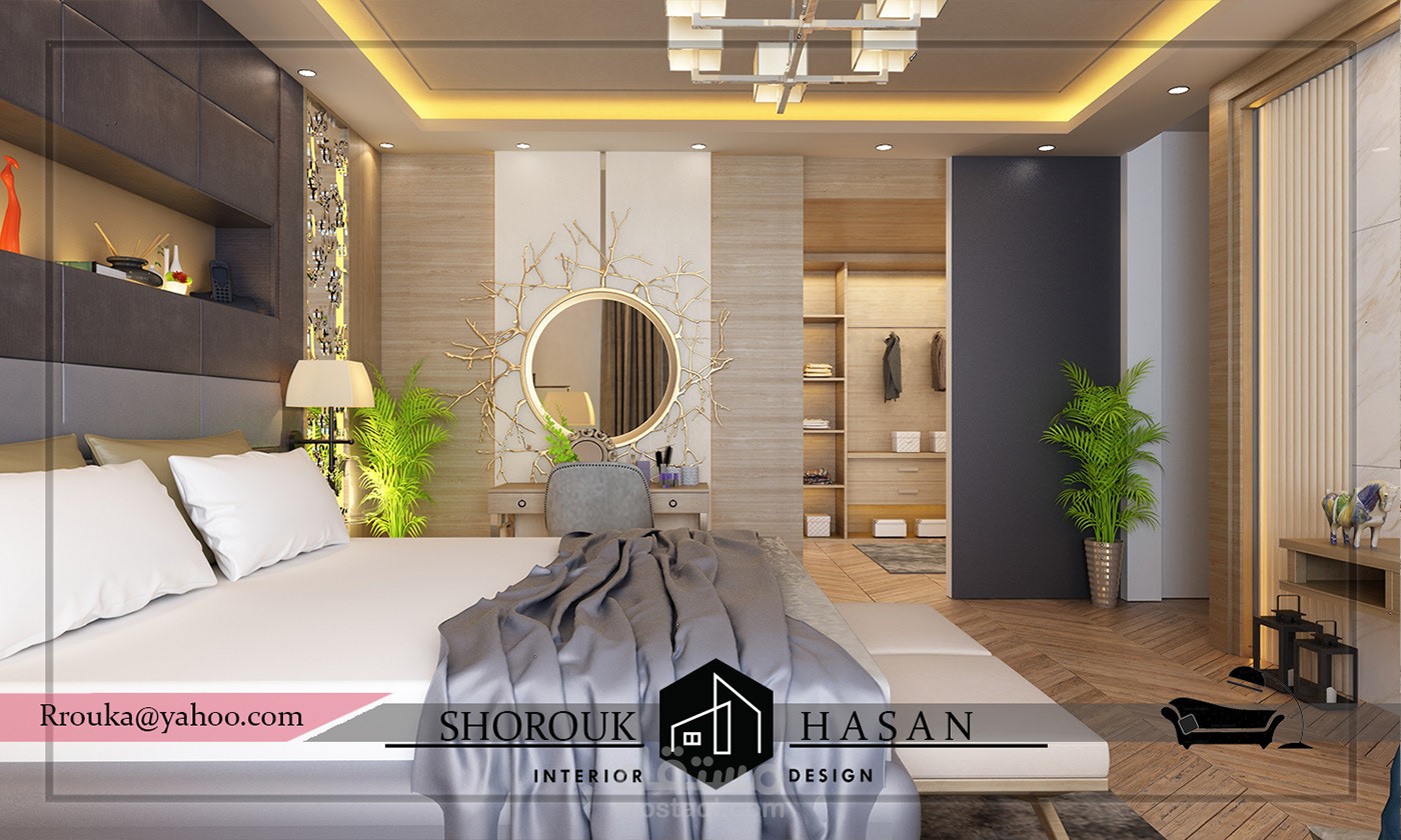 غرفة نوم رئيسيه مودرن بألوان جذابه