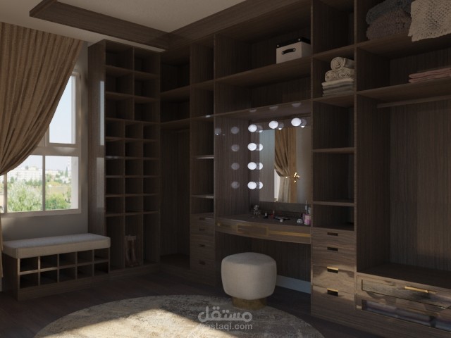 تصميم لغرفة ملابس علي الطراز الحديث و تختلف الخامات و الطراز علي حسب تفضيلات العملاء