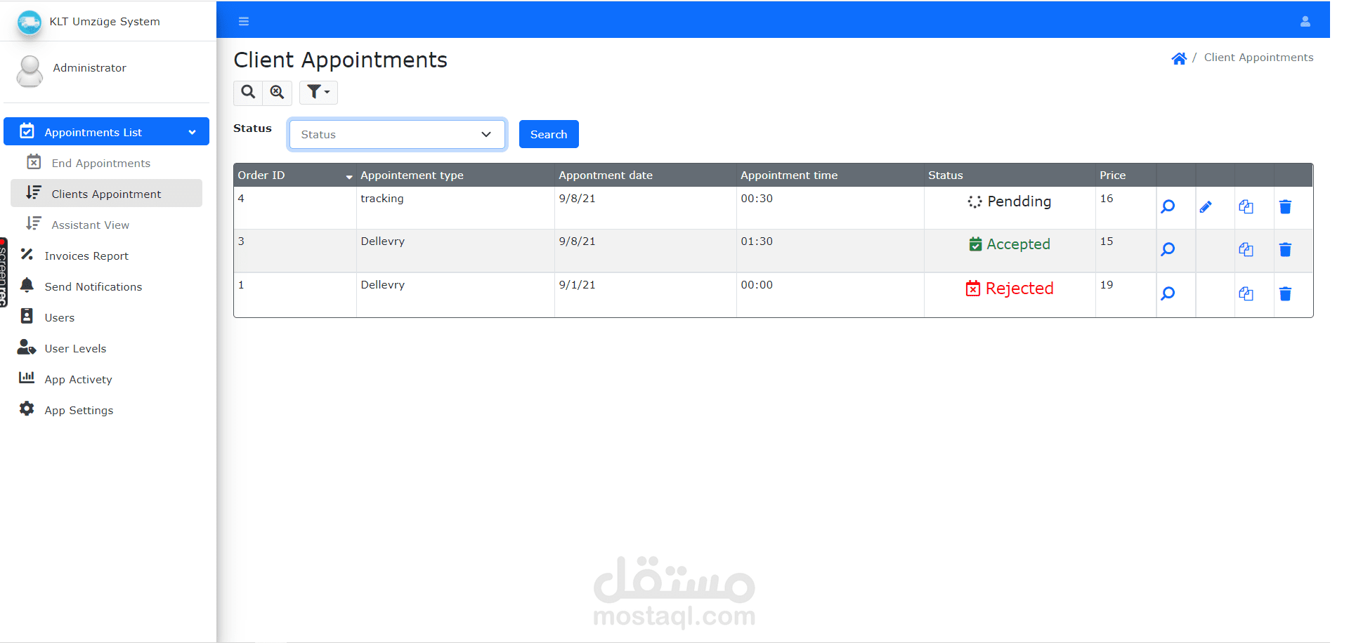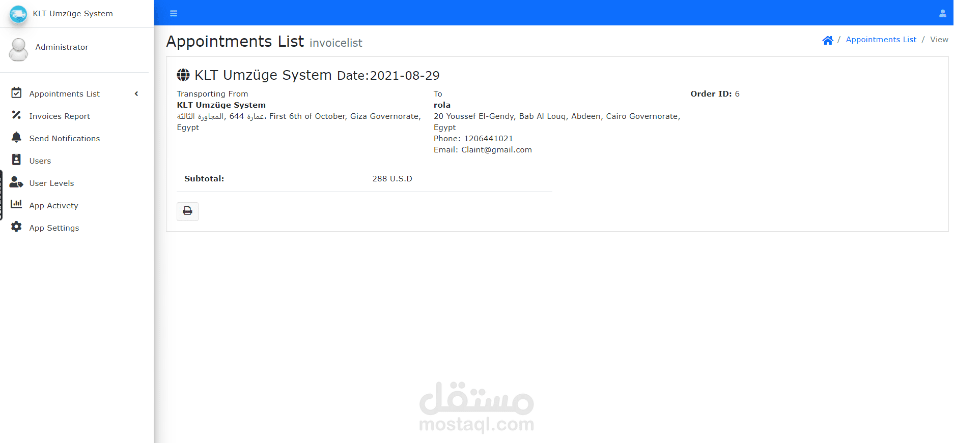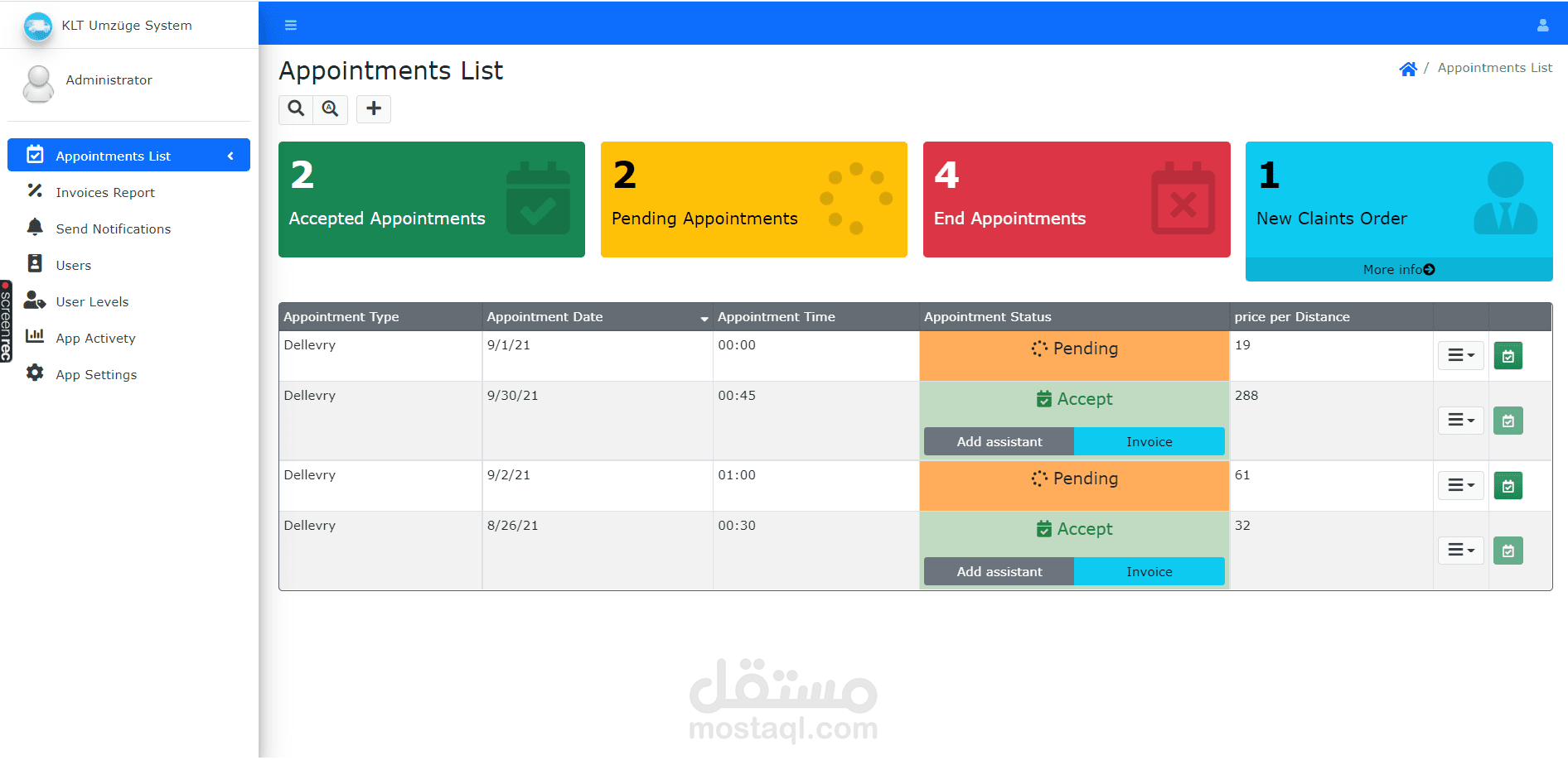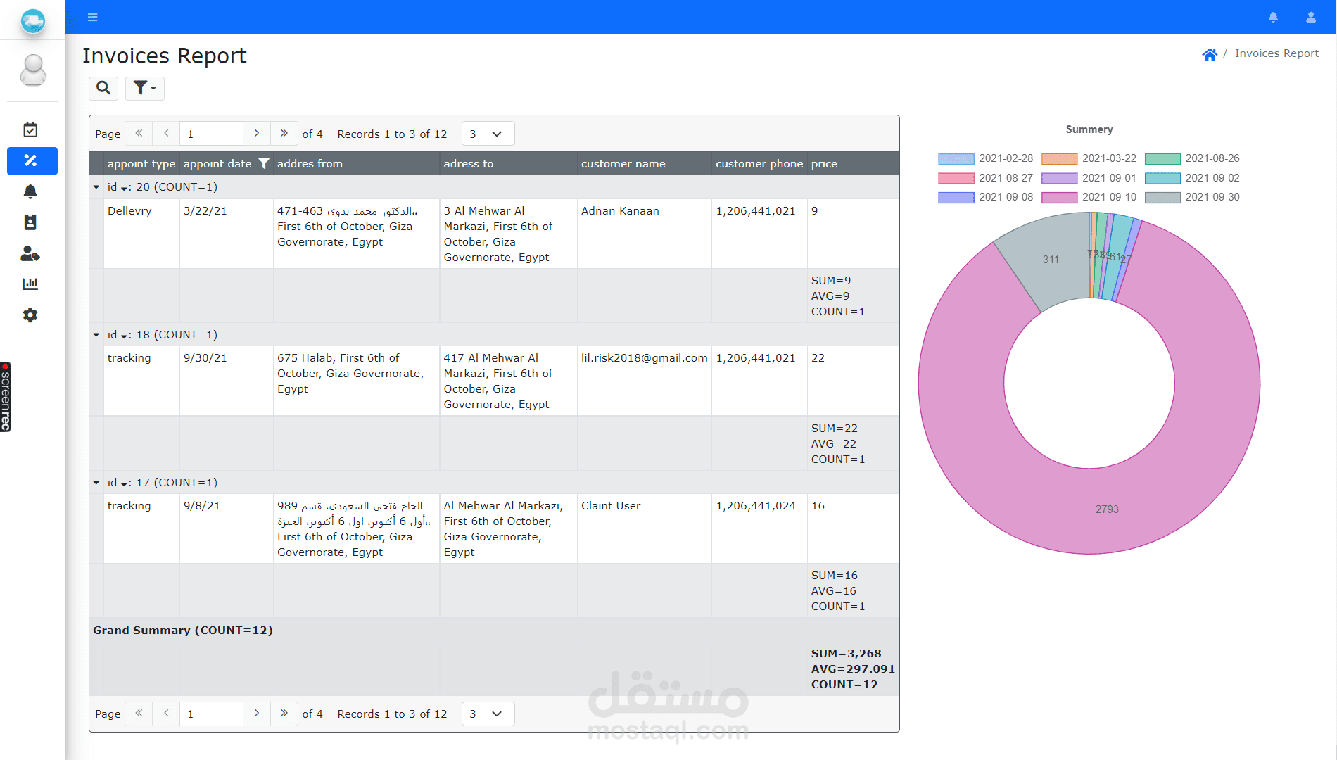 برنامج التحكم ومتابعة مواعيد لشركة شحن وارسال اشعارات بالمواعيد للمستخدمين