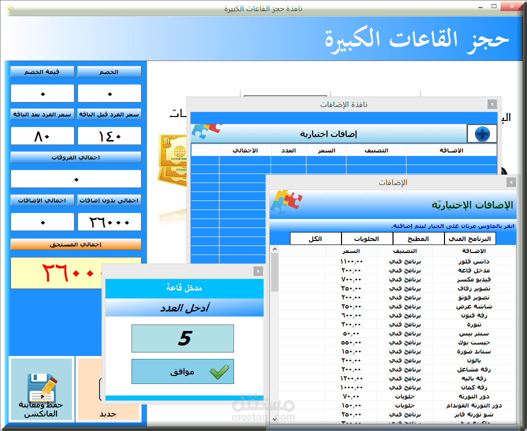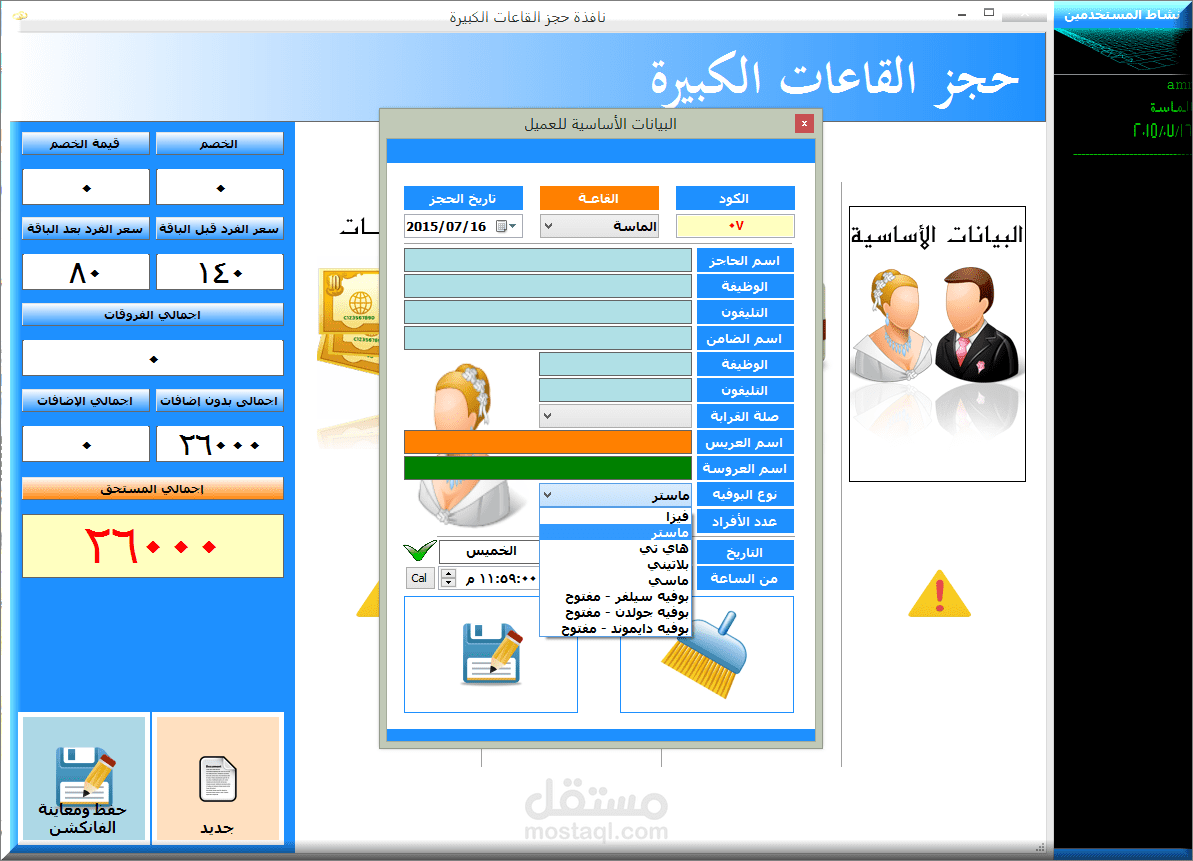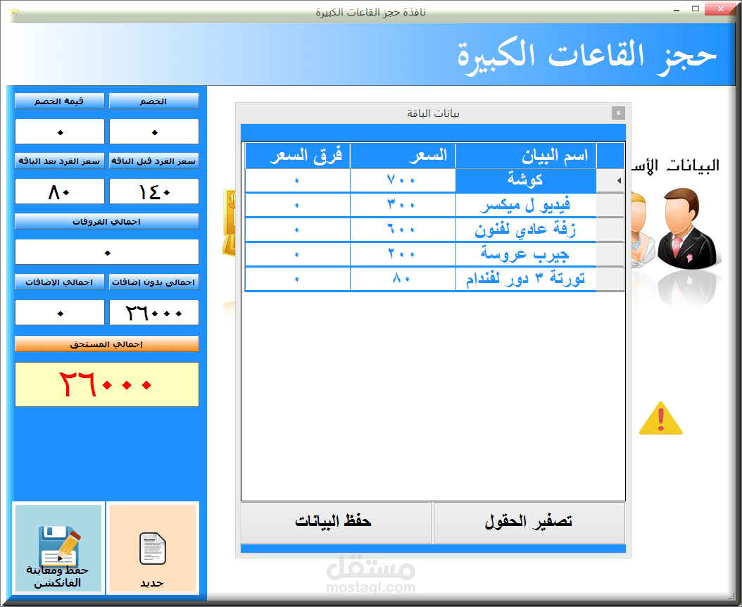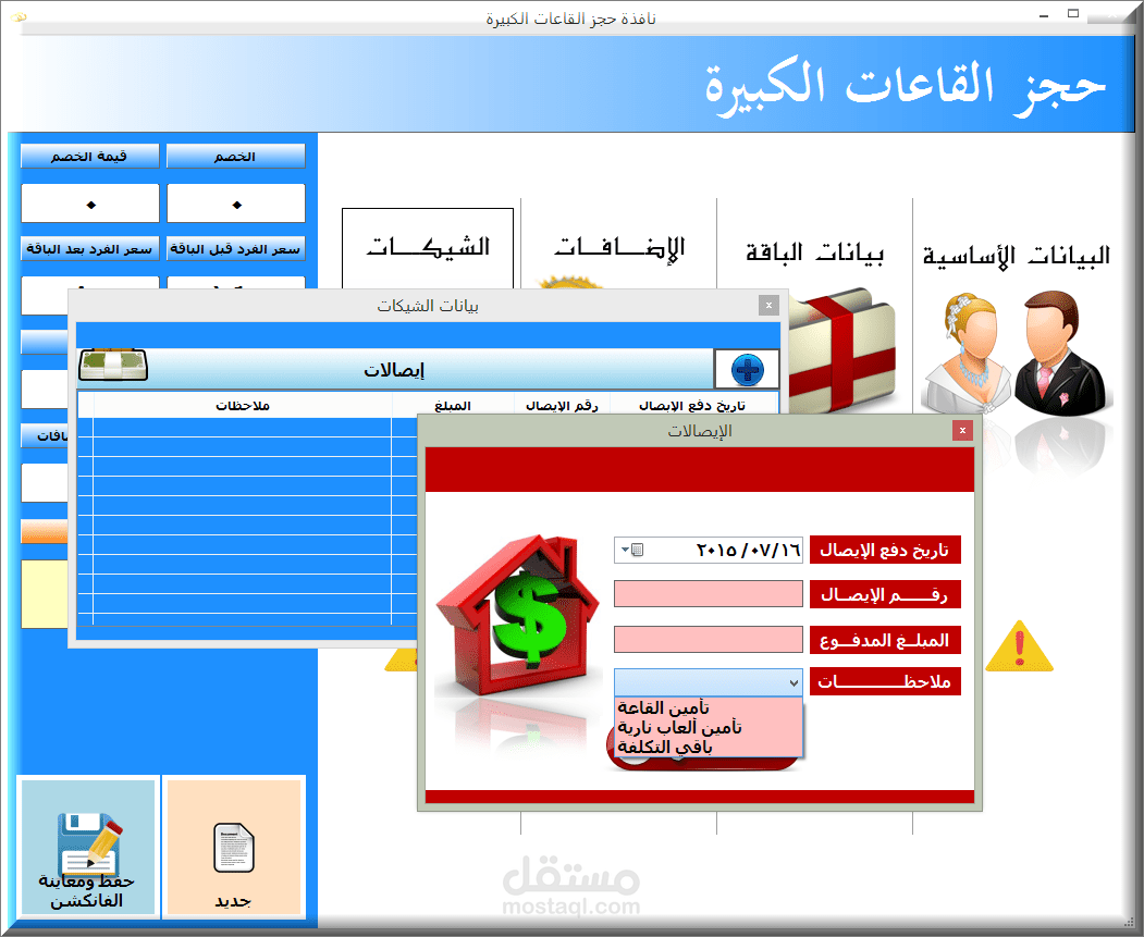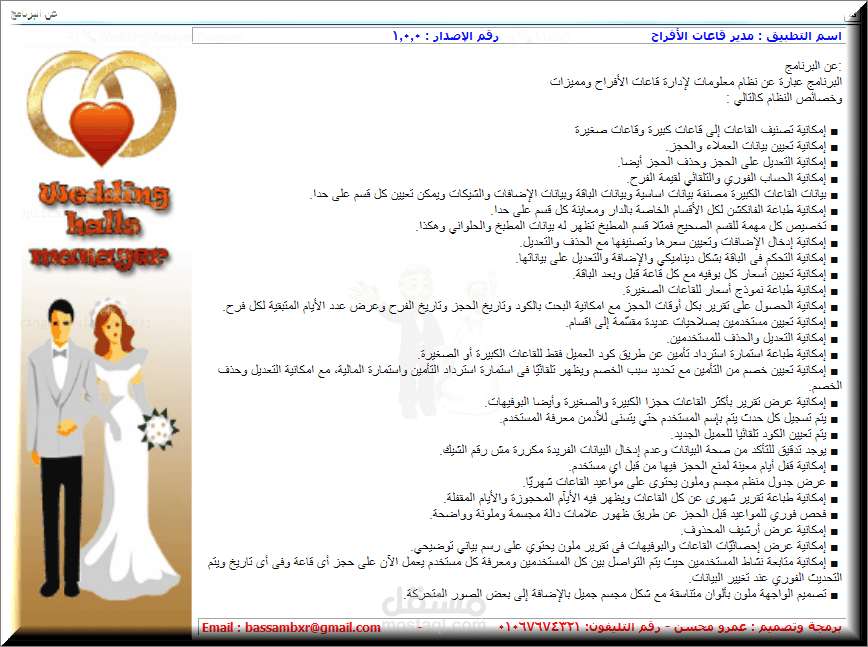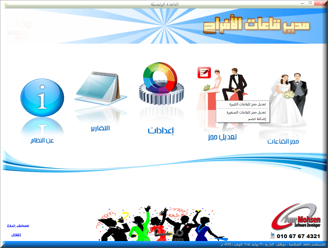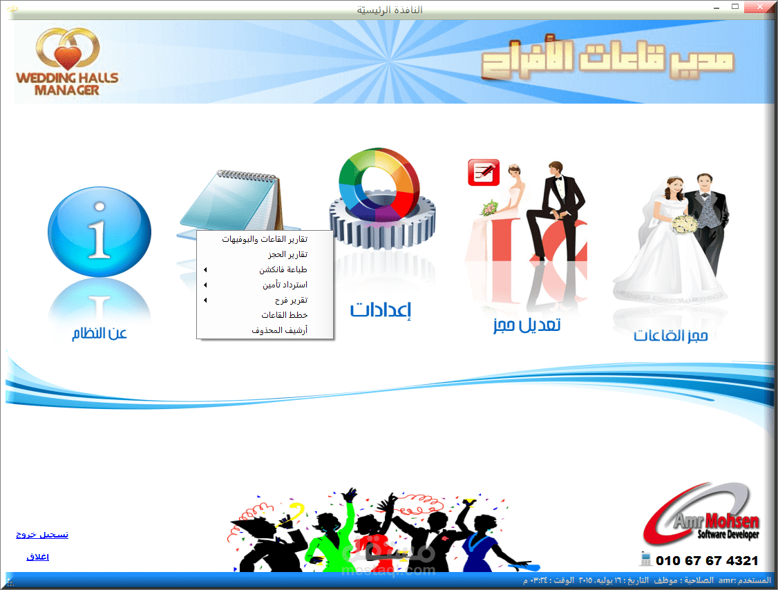 البرنامج عبارة عن نظام معلومات لإدارة قاعات الأفراح ومميزات