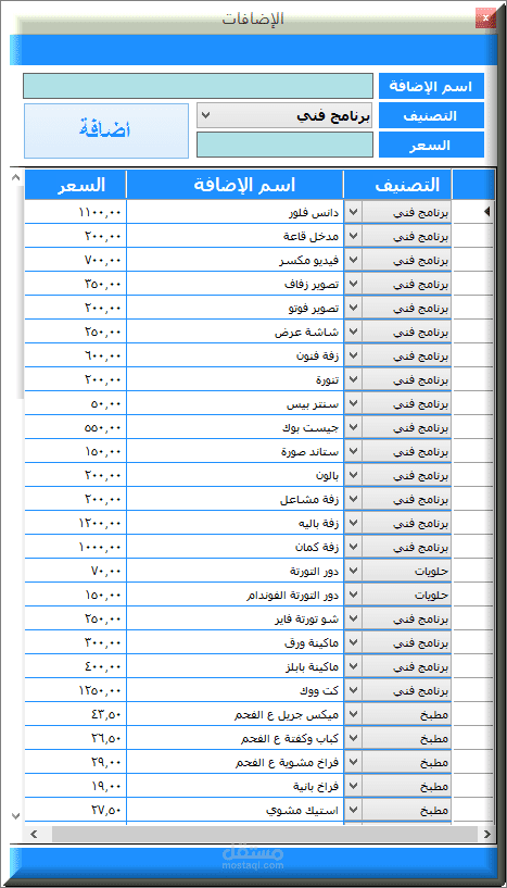 ■ إمكانية إدخال الإضافات وتعيين سعرها وتصنيفها مع الحذف والتعديل.