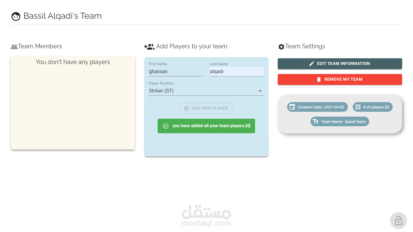 تطبيق ويب يستهدف قطاع ملاعب الرياضة (الخماسي).