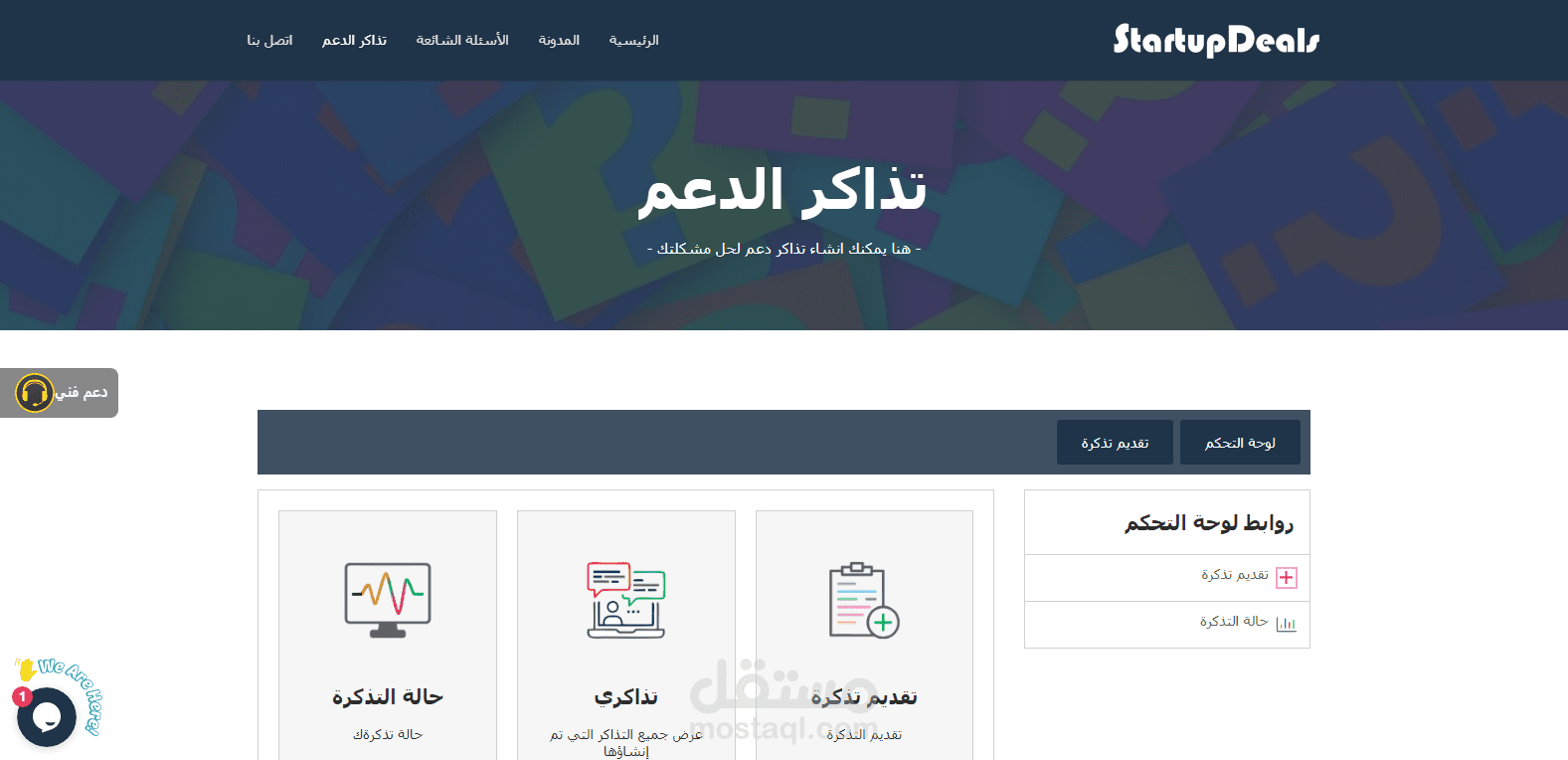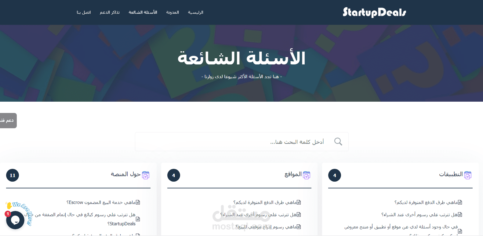 موقع ووردبريس عبارة عن نظام دعم متكامل فيه نظام الاسئلة الشائعة FAQS ونظام تذاكر دعم ونظام دردشة كتابية