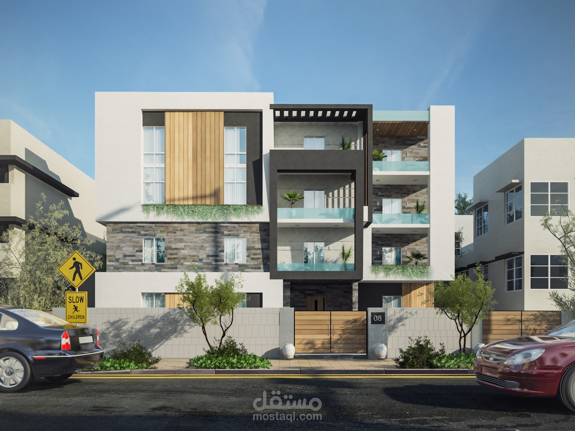 تصميم خارجى لفيلا على المدرسة الحديثة Modern style