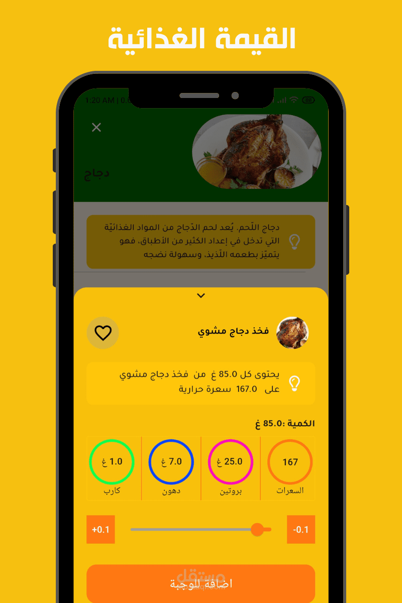 - القائمة المفضلة يمكنك اضافة اي نوع من الاغذية الي قائمتك المفضلة لتسهيل الوصول لها كما يمكنك اضافة اغذية غير موجودة او جديدة الي المفضلة