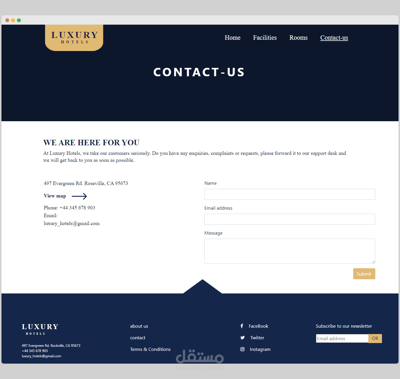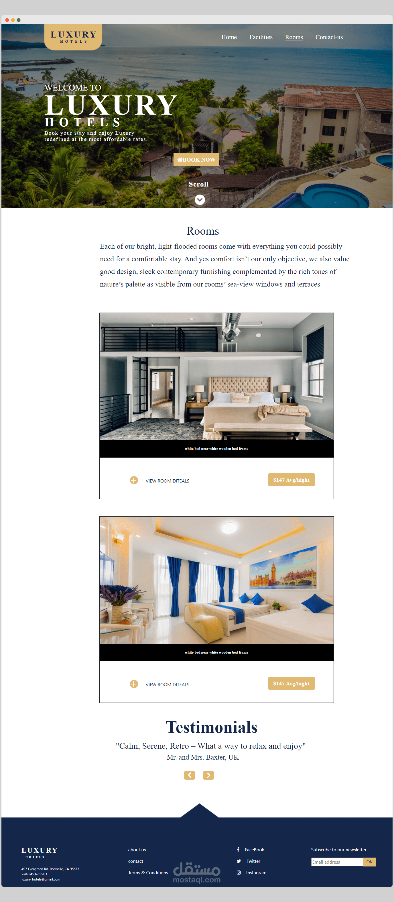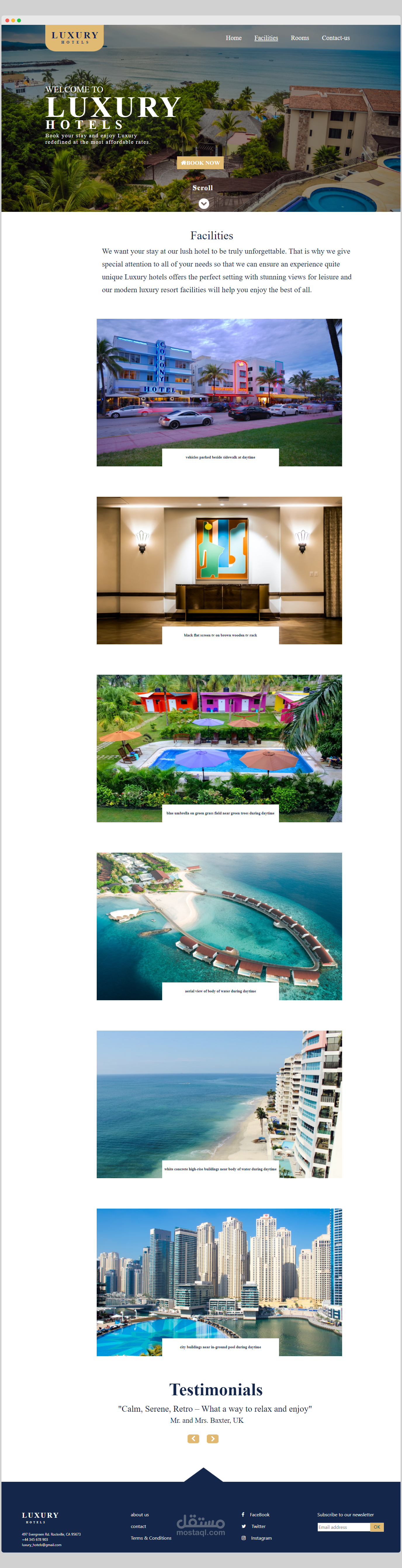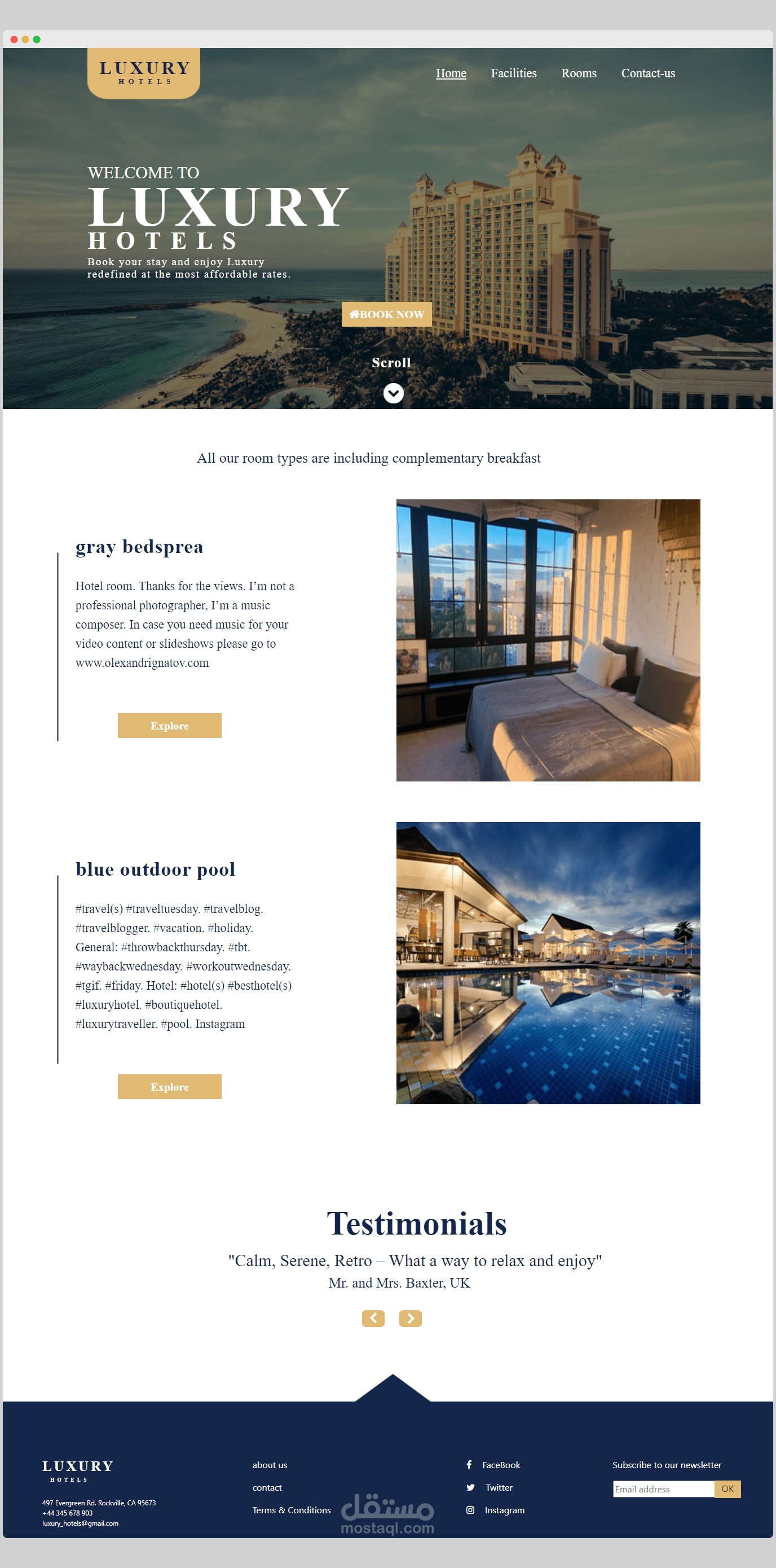 موقع مصممم للفنادق يحتوي على معلومات وصور خاصة بالفندق
