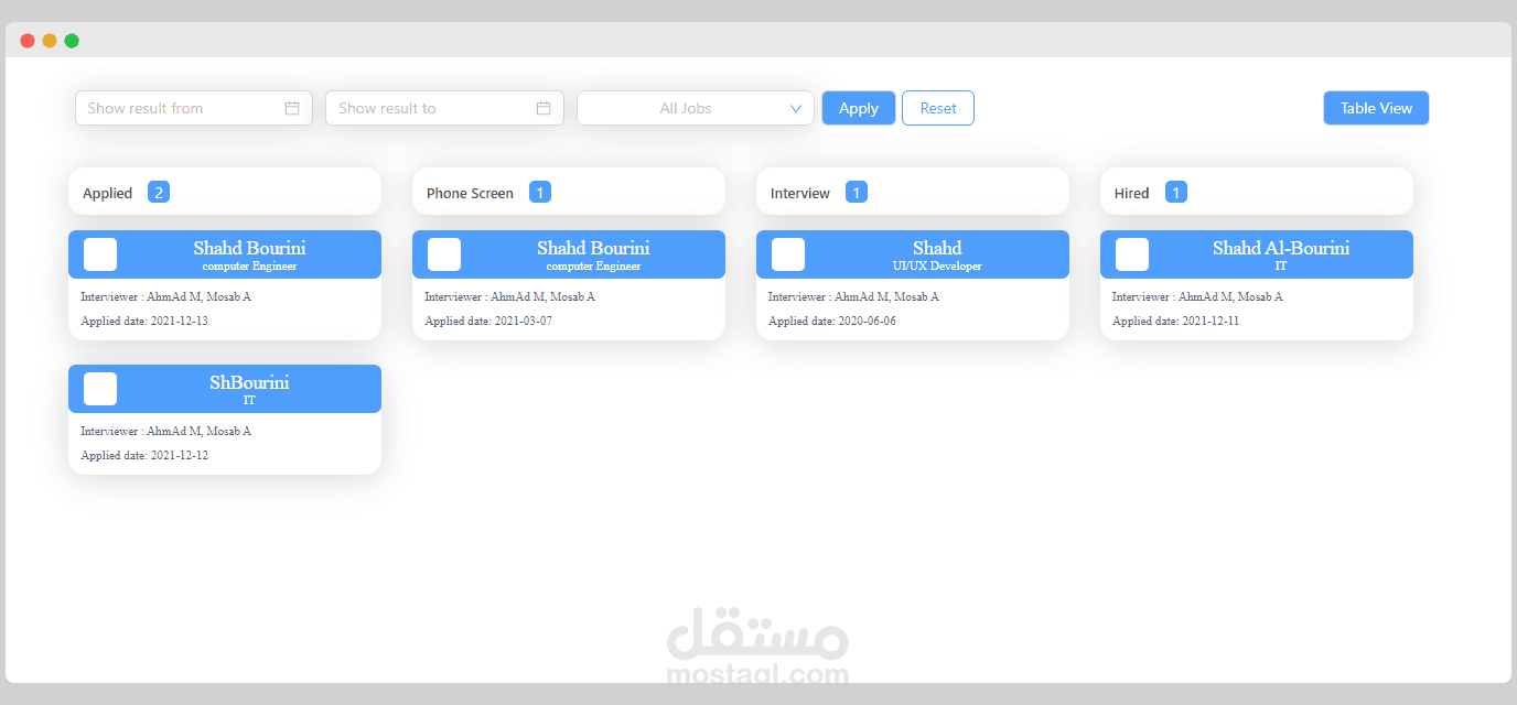 موقع للتوظيف حيث يقوم المدير بإضافة وظيفة معينة وبعدها يتم افراز المتقدمين لهذه الوظيفة حسب معايير محددة .
