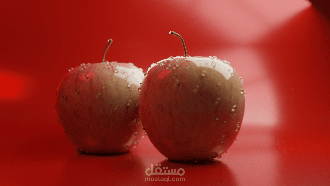 لقد عملت على برنامج ال blender بتجربة جديدة لقطرات المياه على التفاحة