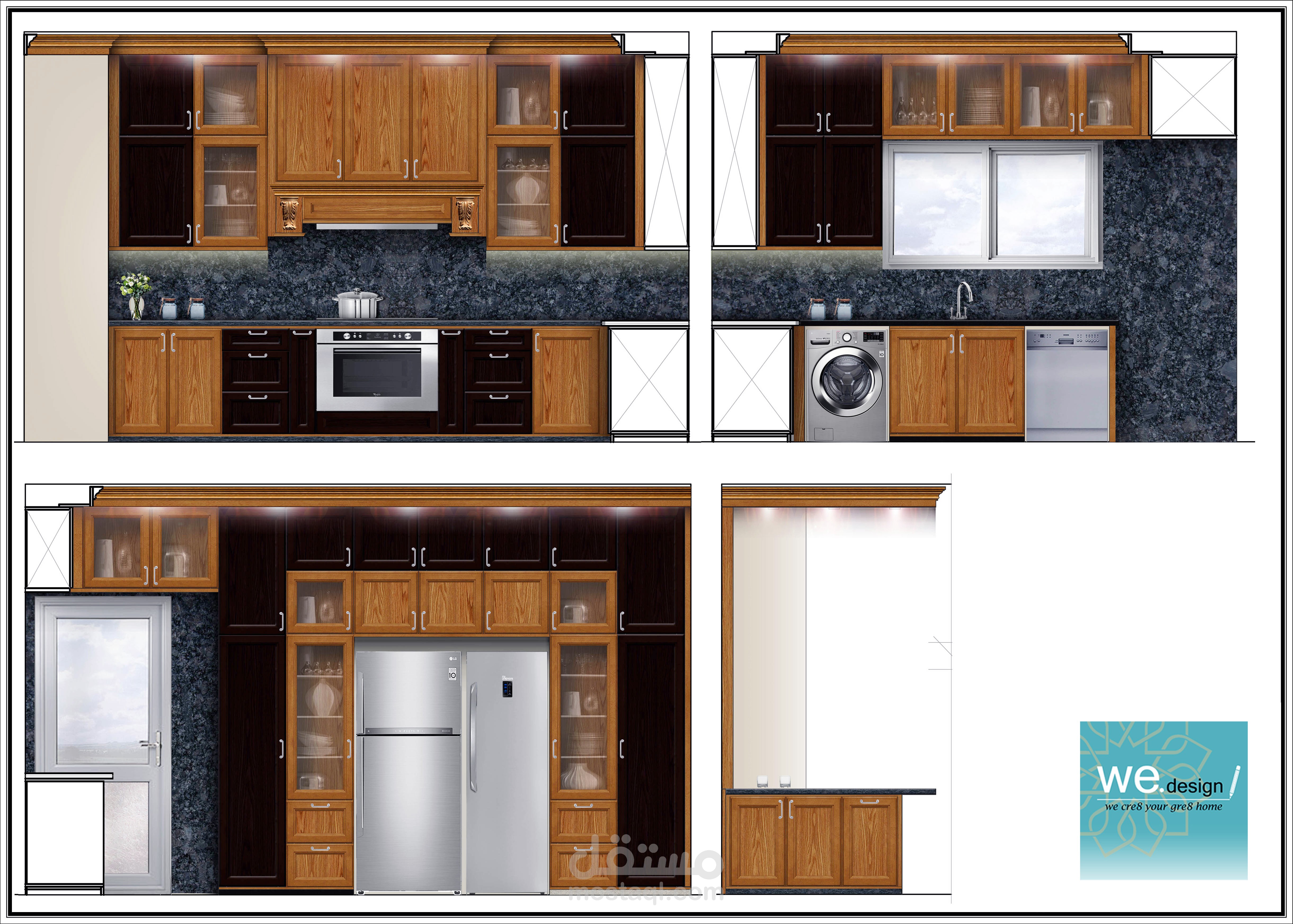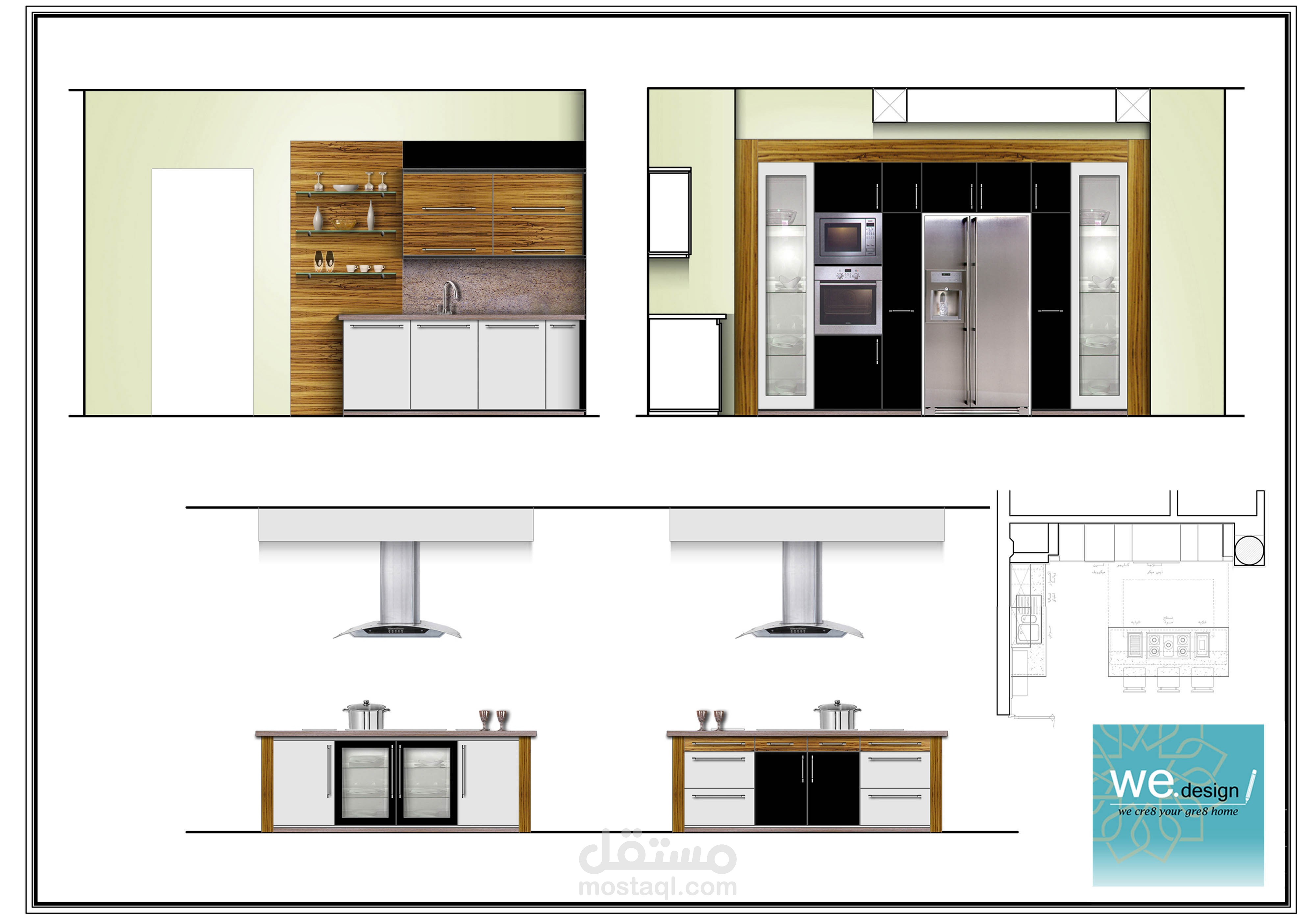 تصميمات مطابخ متنوعة مودرن و كلاسيك عن طريق الاوتوكاد و الفوتوشوب