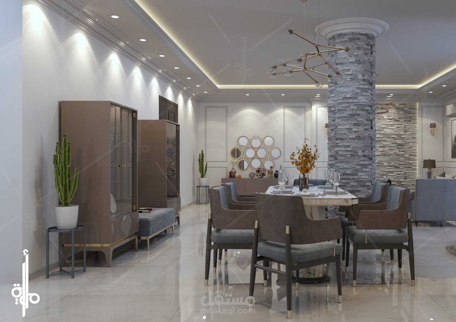 تصميم صالة استقبال تصميم يجمع بين الكلاسيك والمودرن
