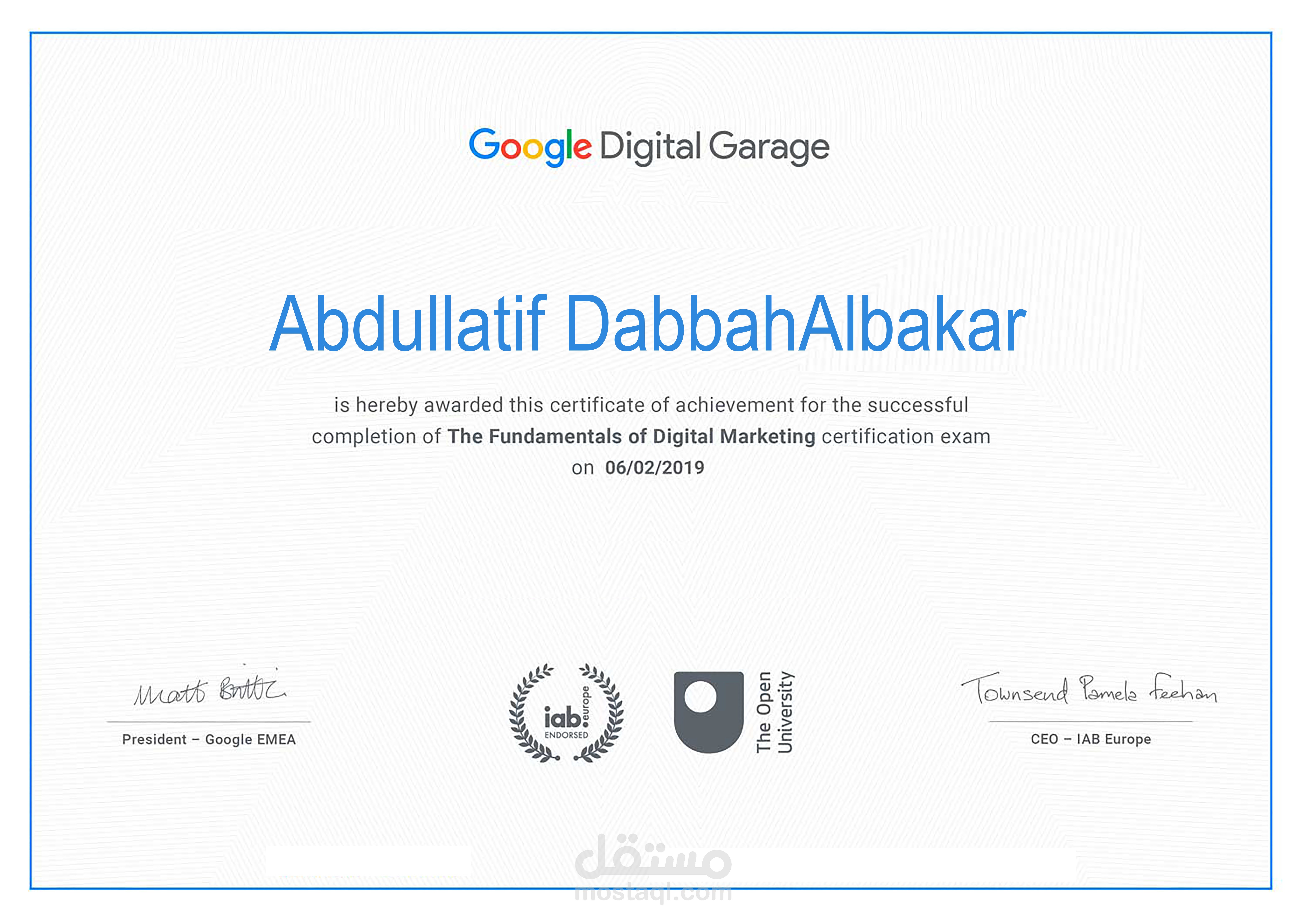 شهادة معتمدة في أساسيات التسويق الالكتروني من شركة Google