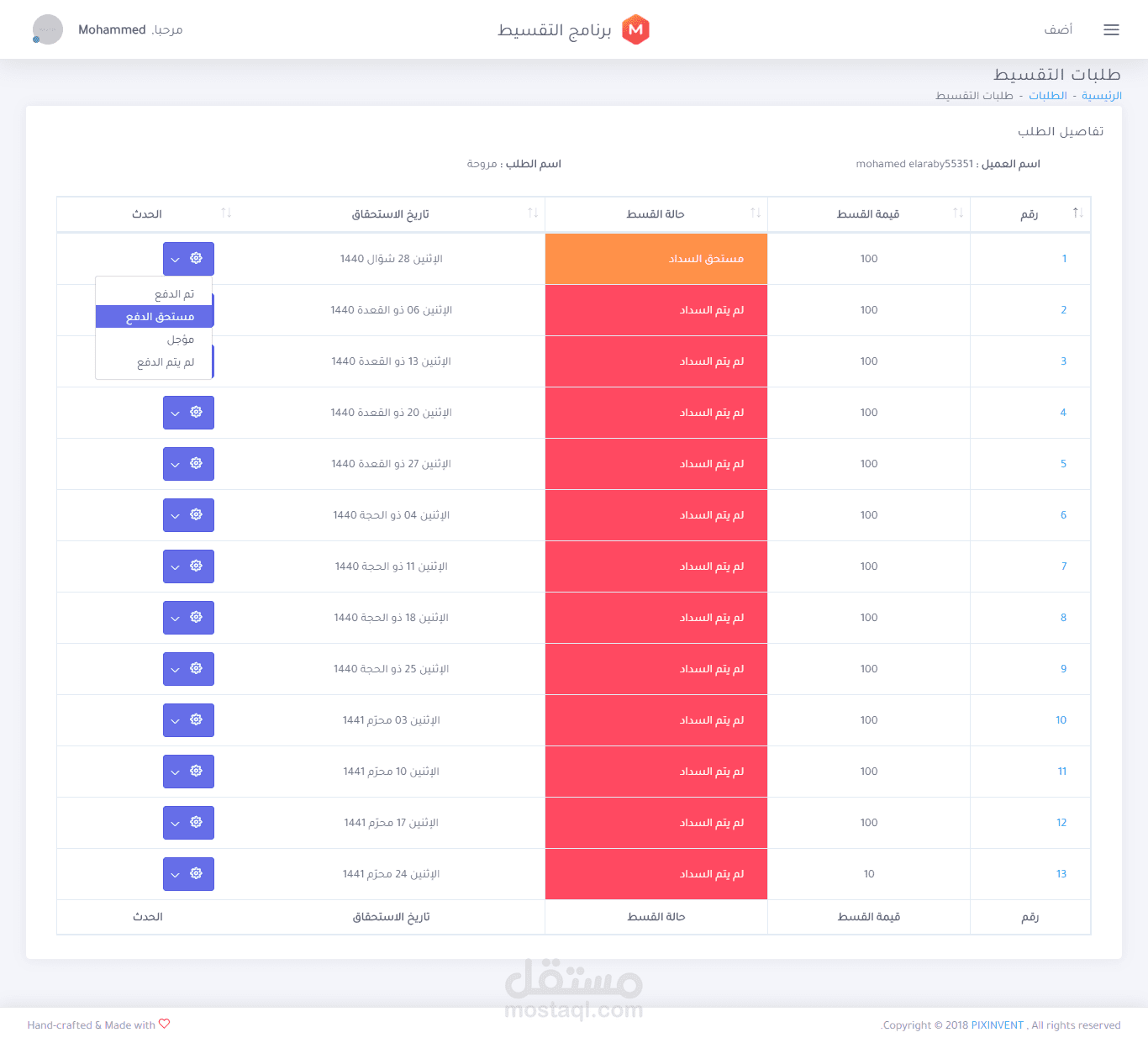 - Before the installment is due, the system sends mail for the user to remind him to pay his installment.