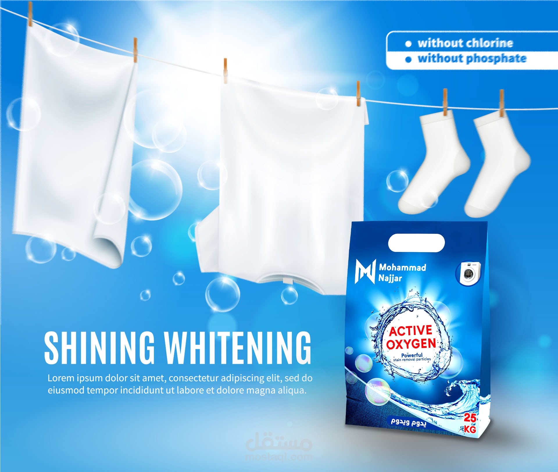 2.تصميم كيس لبودرة غسيل أوتوماتيك بثلاث مقاسات (2,4,8 كغ) باللغتين العربية والإنكليزية
