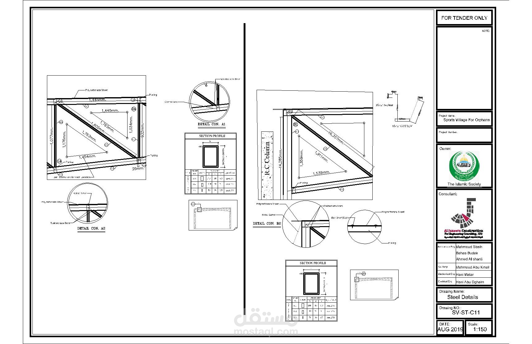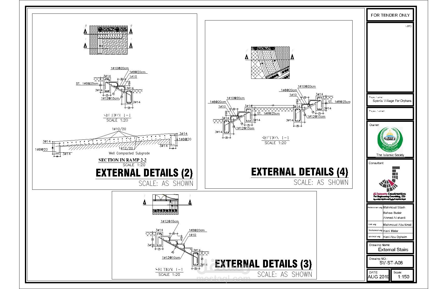 وشملت الأعمال تصاميم معدنية وخرسانية مختلفة بالاضافة لتصاميم خاصة بالطرق واللاندسكيب الانشائية
