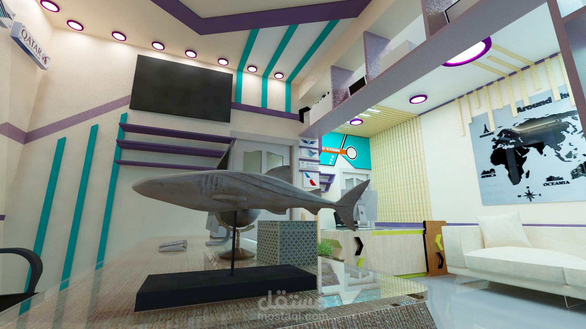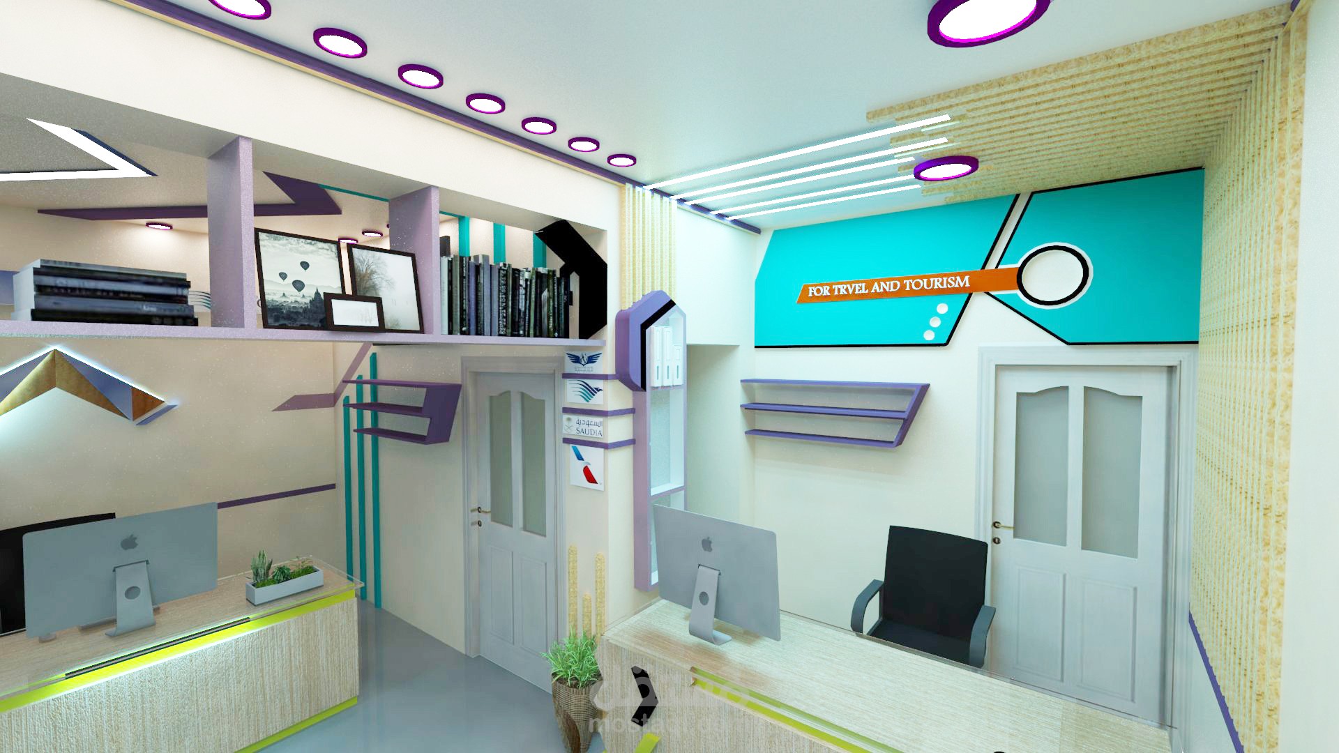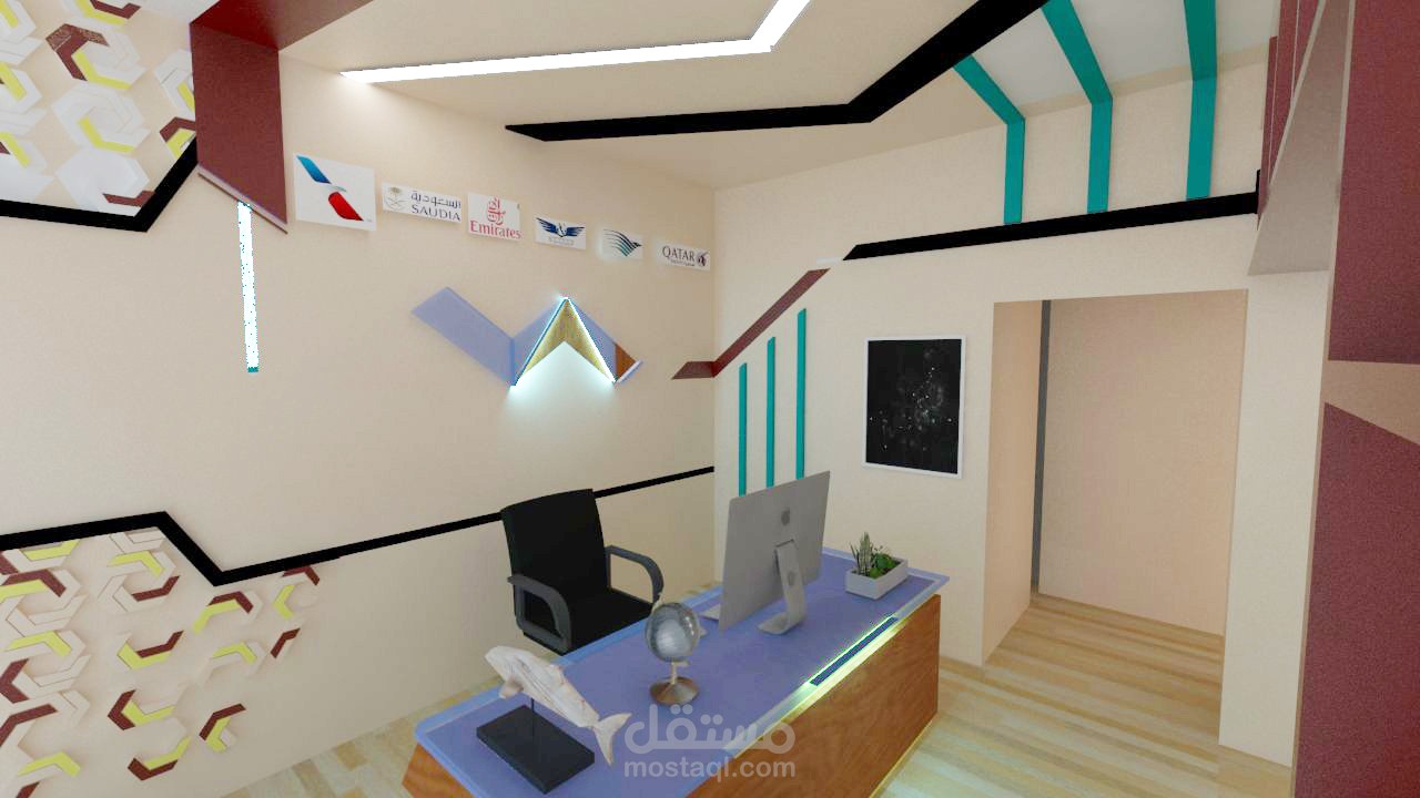 تصميم داخلي لديكور مكتب سفريات وسياحة
