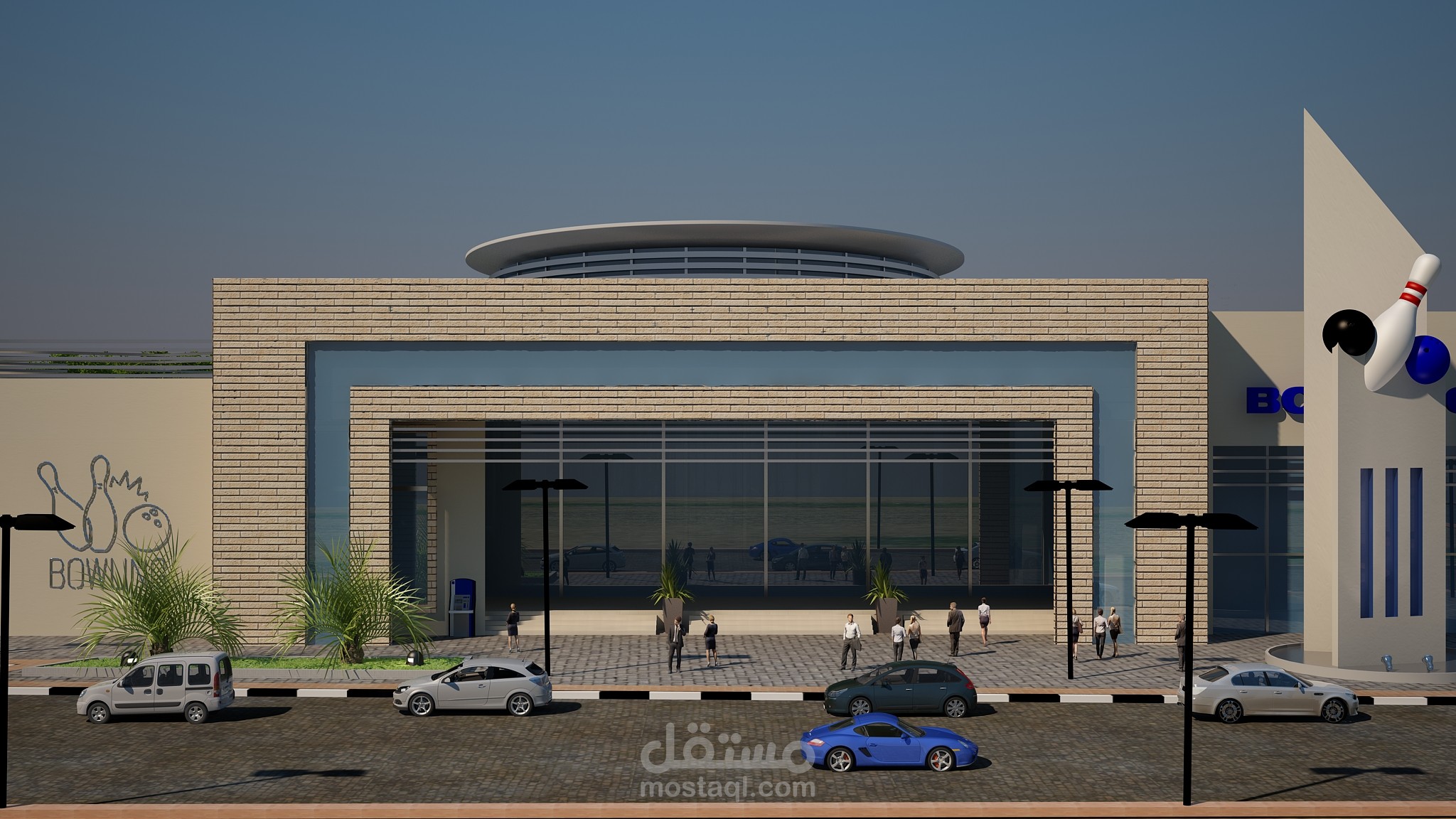تصميم صالة ألعاب مكونة من Bowling center ,Skating, Playing area