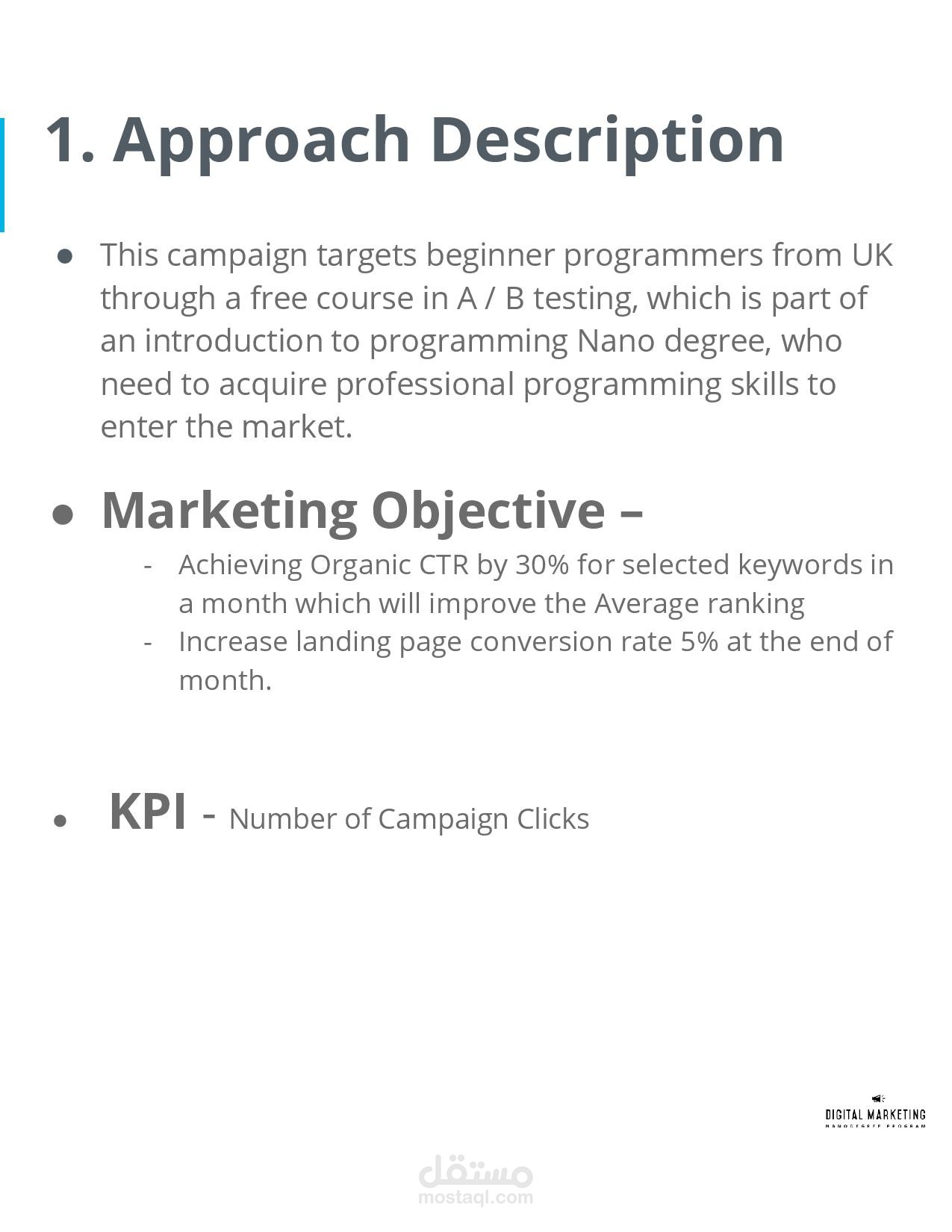 2) you will perform an off-site SEO audit where you will audit the back-links to the site, and make recommendations for a link-building campaign.