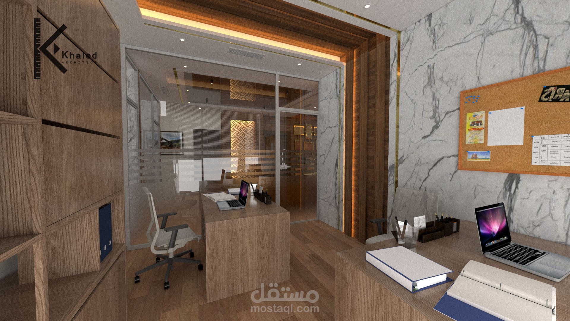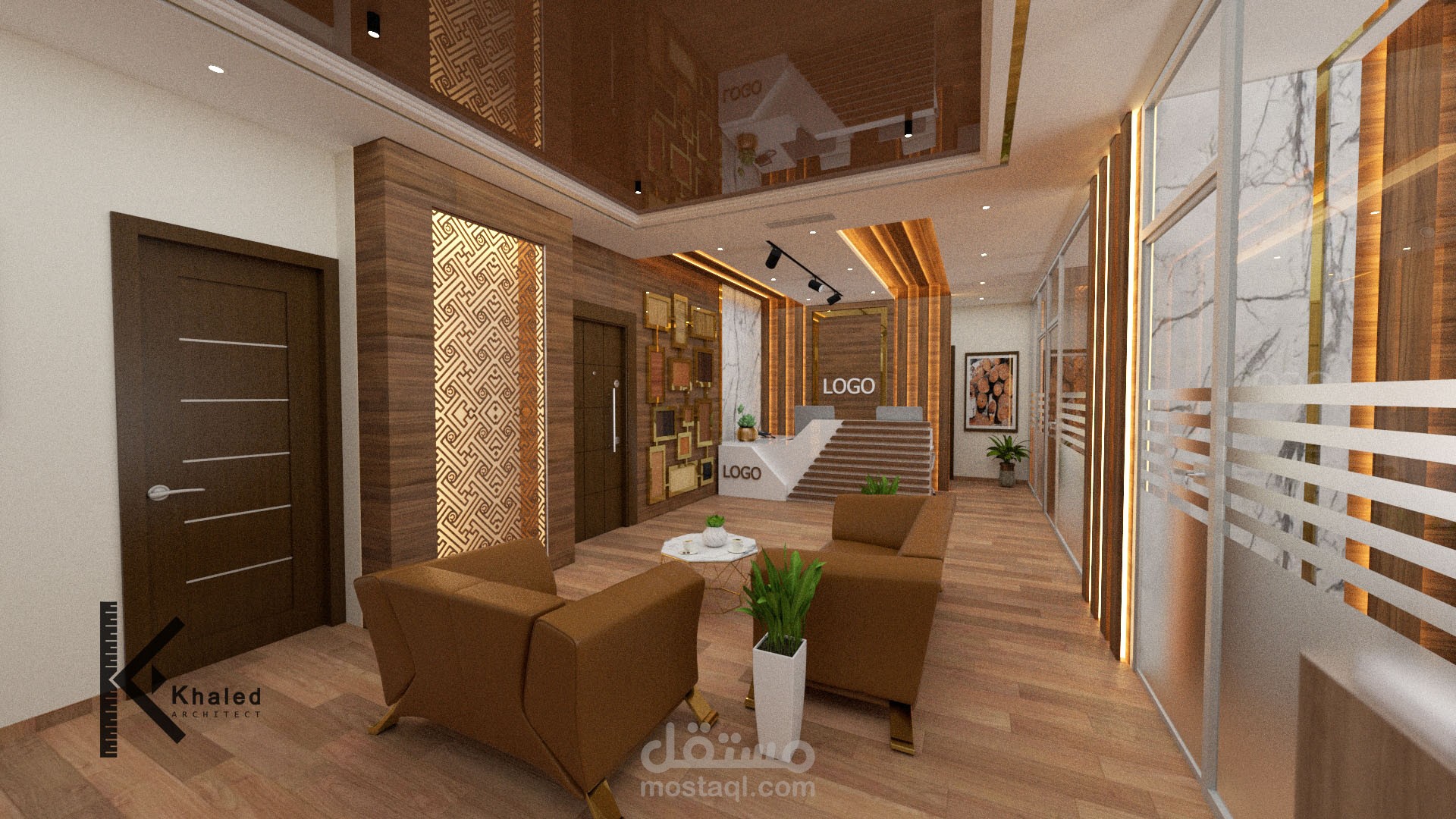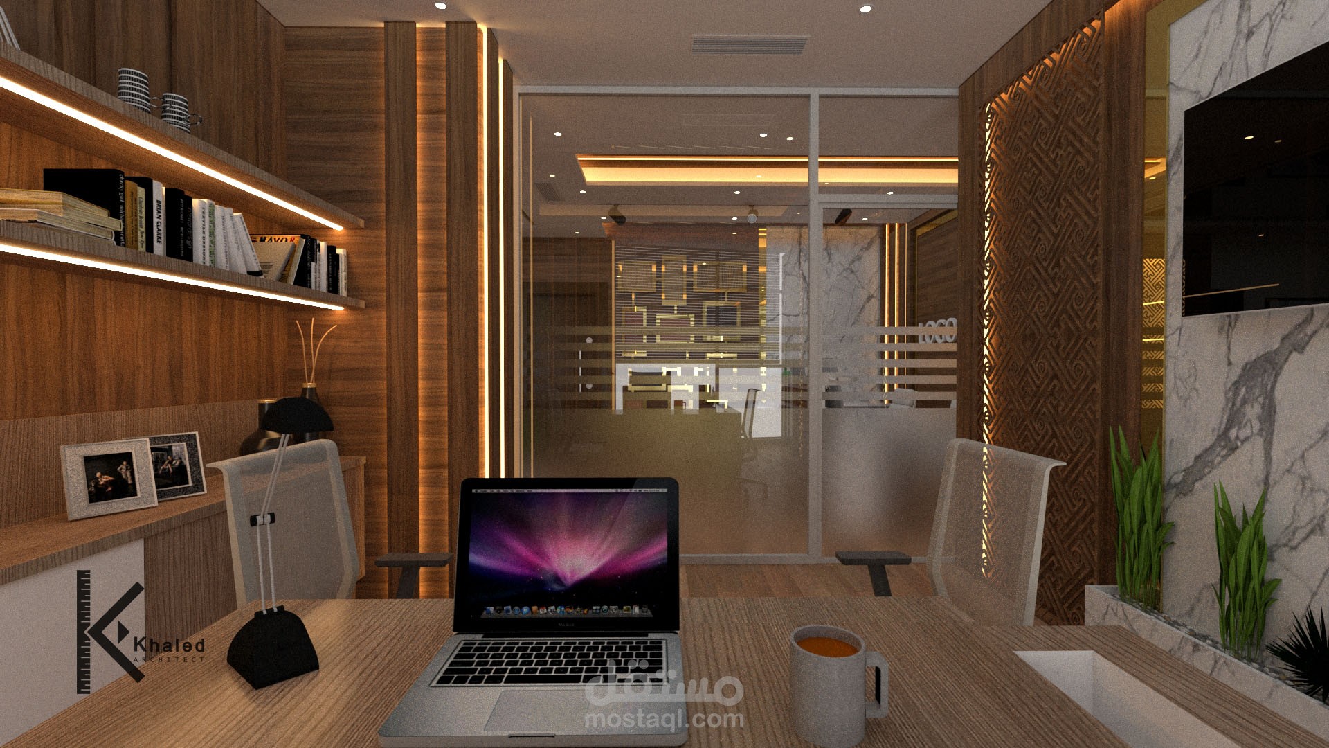 تصميم داخلي لمكتب شركة أخشاب بالسعودية على الطراز المودرن وقد تم استخدام الأخشاب والباركيه للأرضيات لتعبر عن هوية الشركه وتجهيز المخططات التنفيذيه وجدول التشطيبات للمشروع