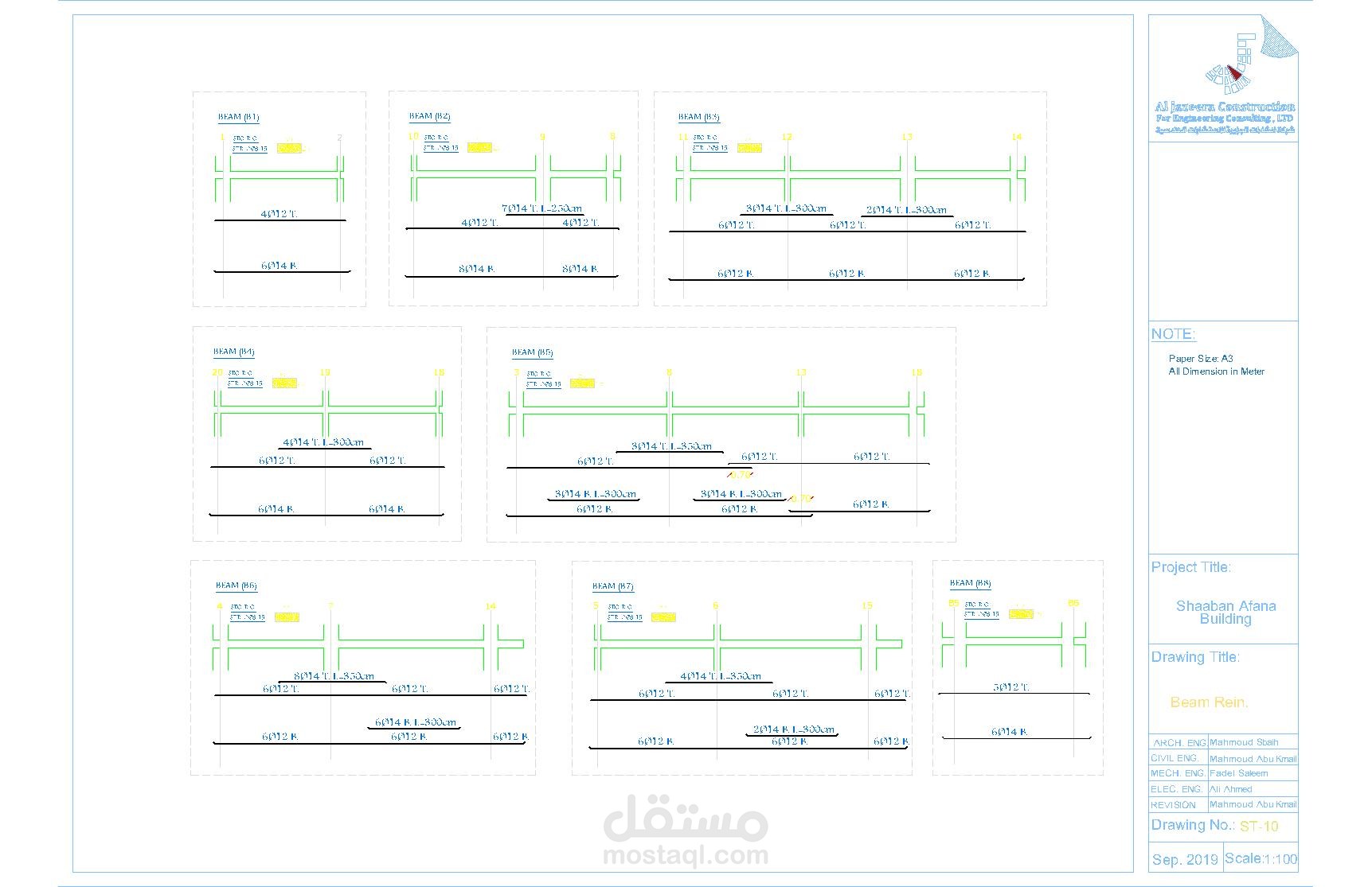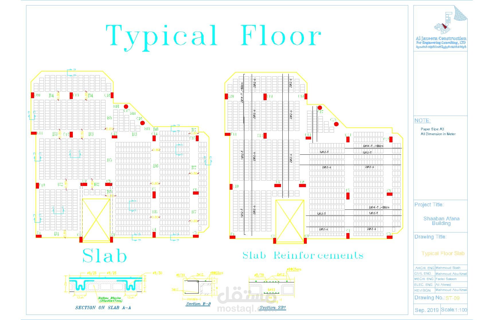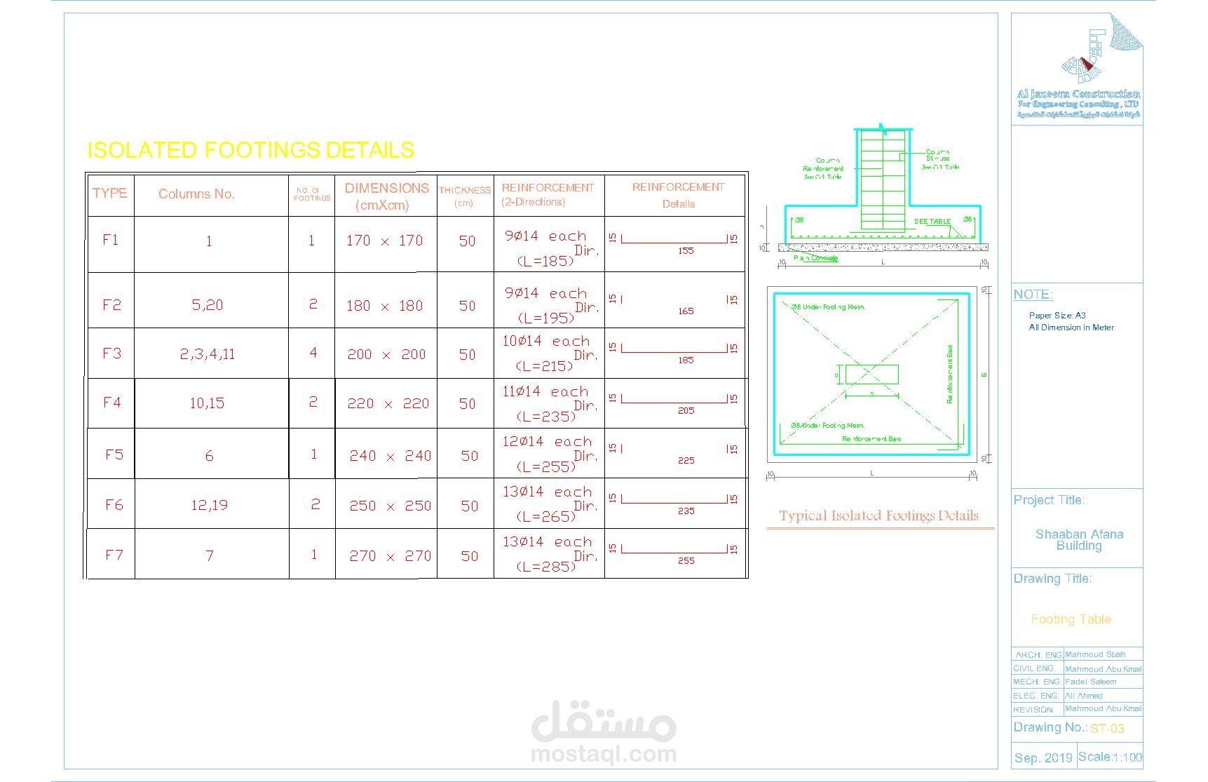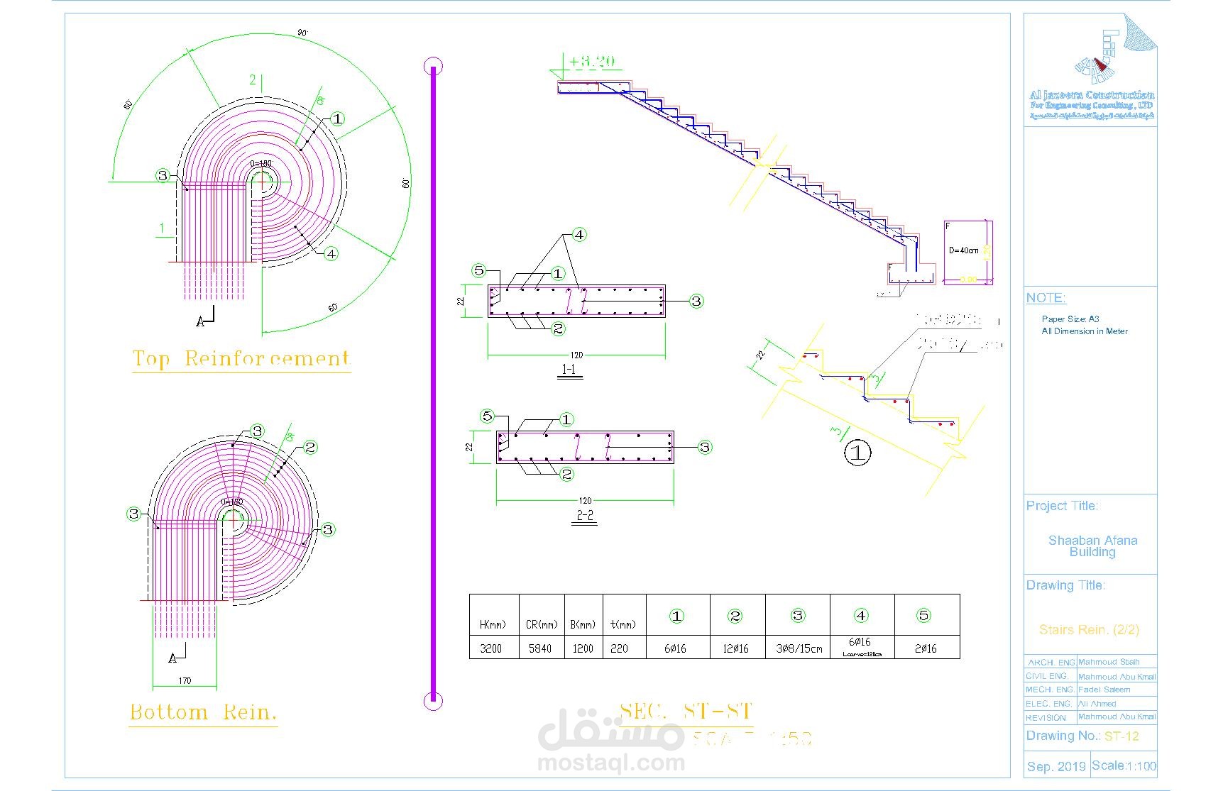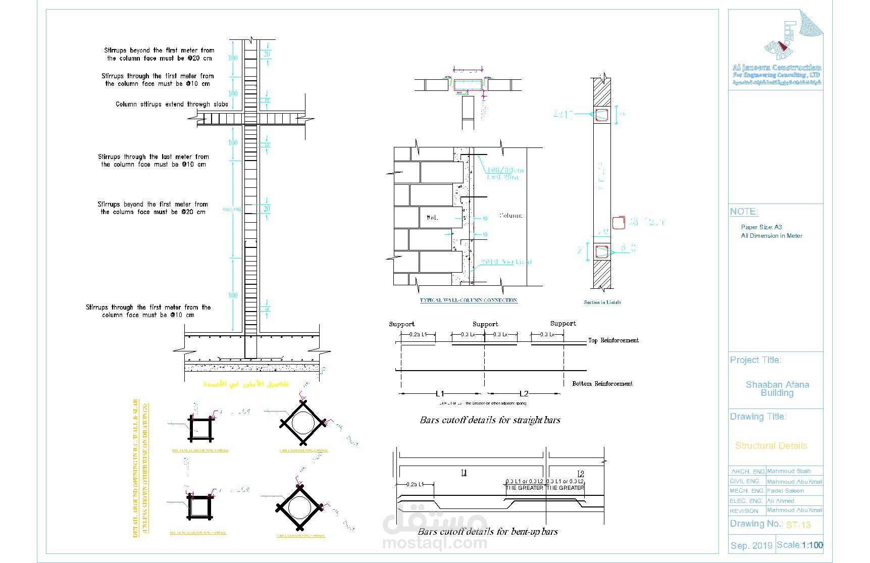 تم بحمد الله عمل تصميم انشائى محترف لفيلا سكنية فى جازان بالمملكة العربية السعودية وذلك طبقاً للكود الامريكي ومواصفات واشتراطات الكود وتم عمل ايضا حصر لكميات الحديد والخرسانة المستخدمة فى الانشاء وتم عمل قطاعات توضح التسليح فى جميع اجزاء المبني مع عمل نوتة حسابية تشمل طريقة حساب الاحمال على عناصر المبني الانشائية وايضا طريقة تصميمها وجميع الاشتراطات الماخوذة فى الحسبان . كما تم ايضا عمل تصميم انشائي للسور وحمام السباحه ومجلس منفصل للرجال ومرفق جميع الملفات للتصميم .