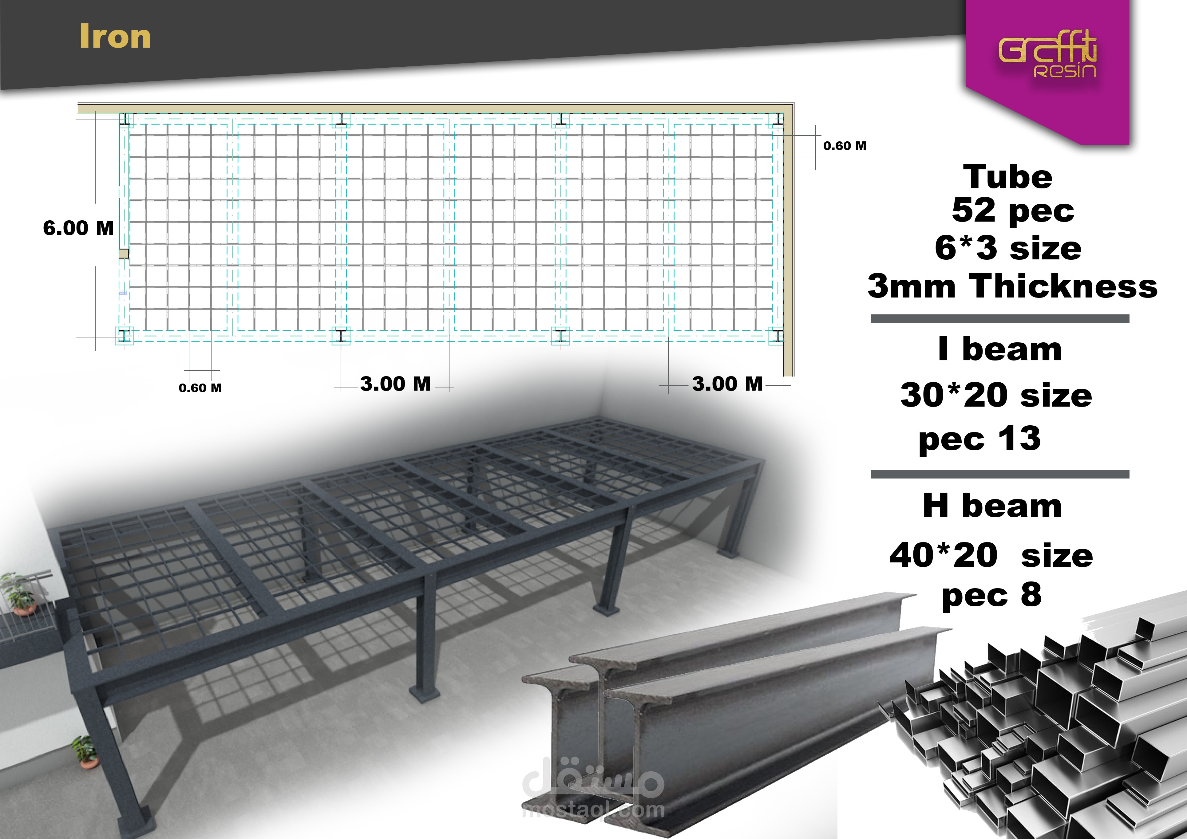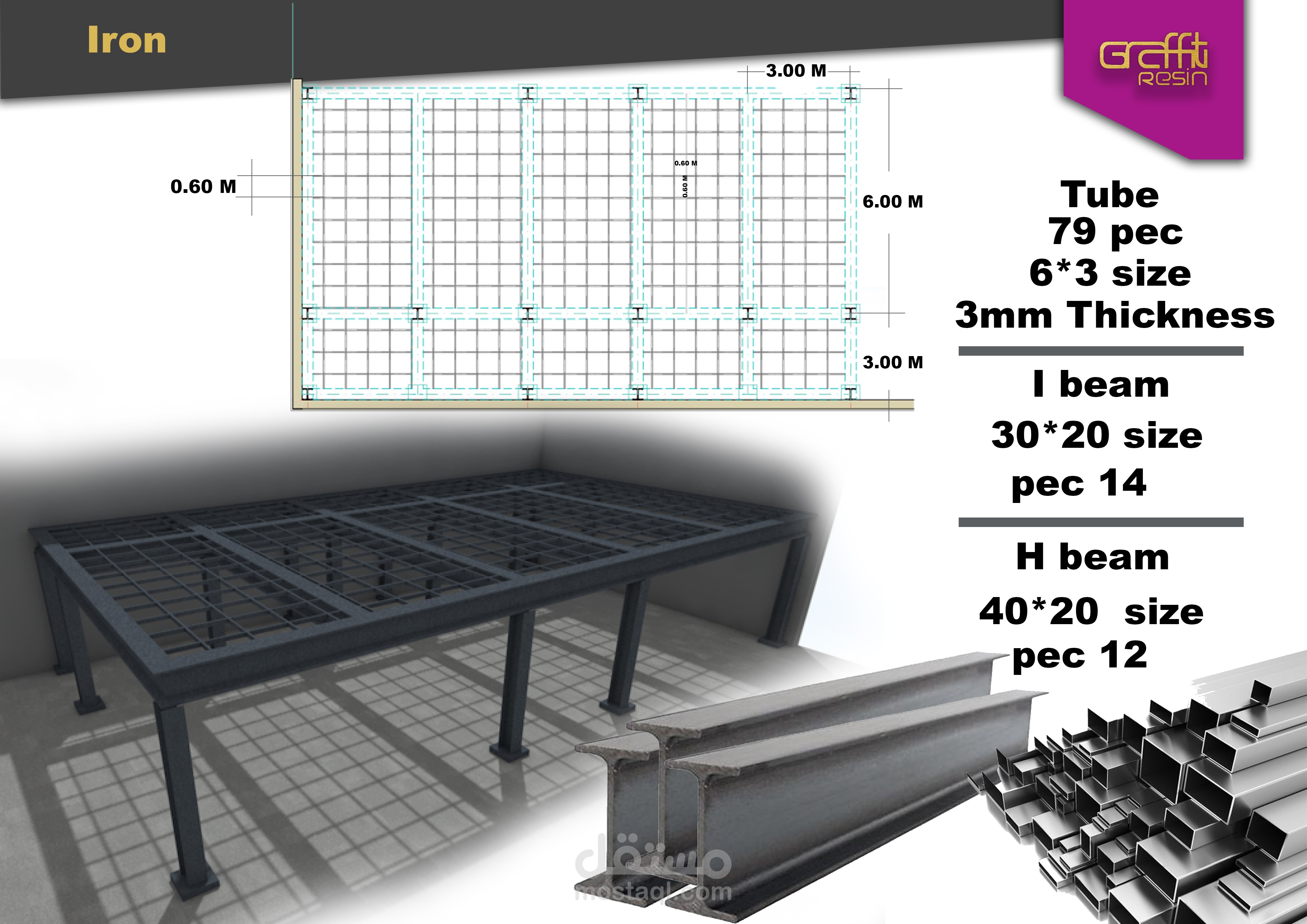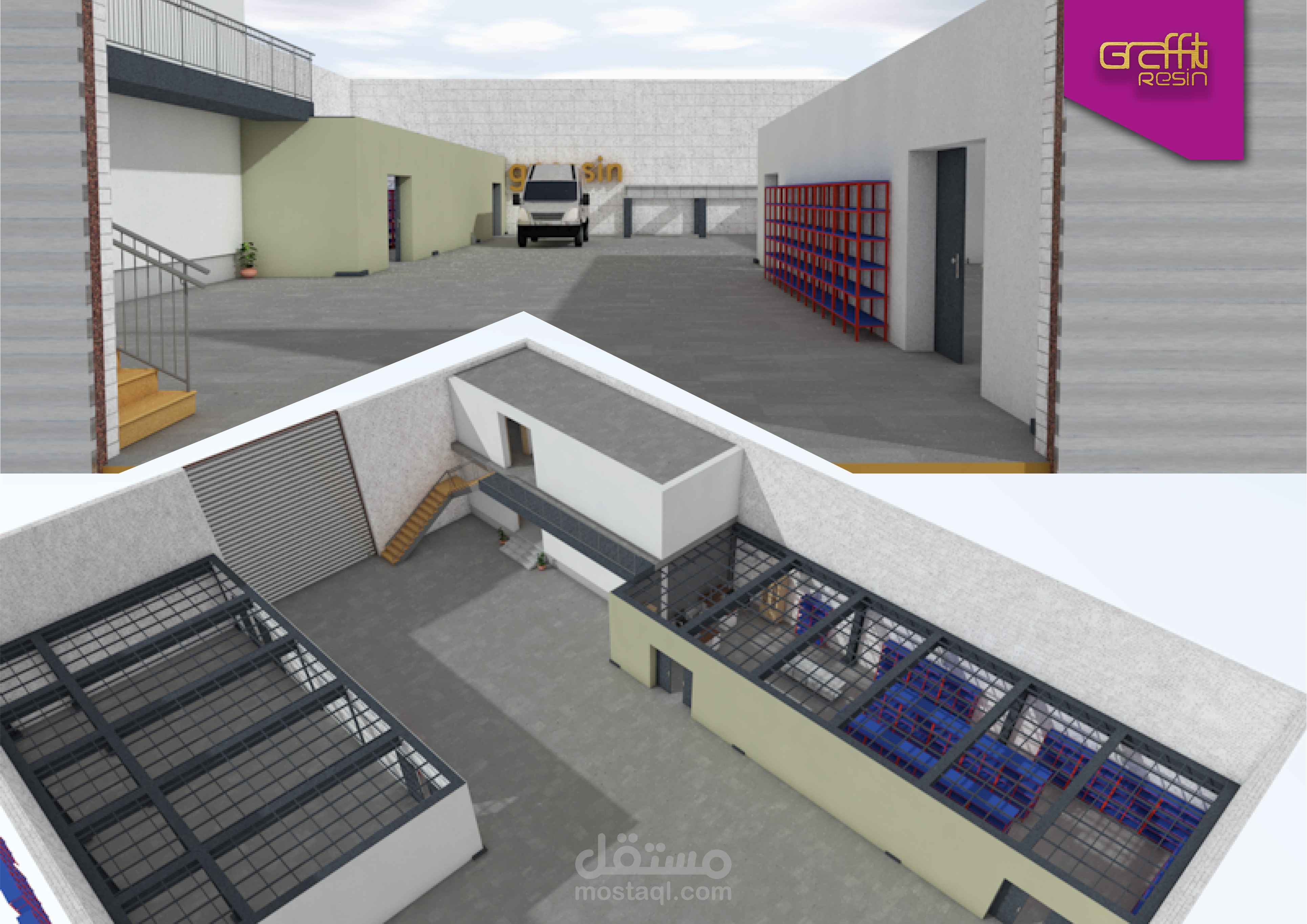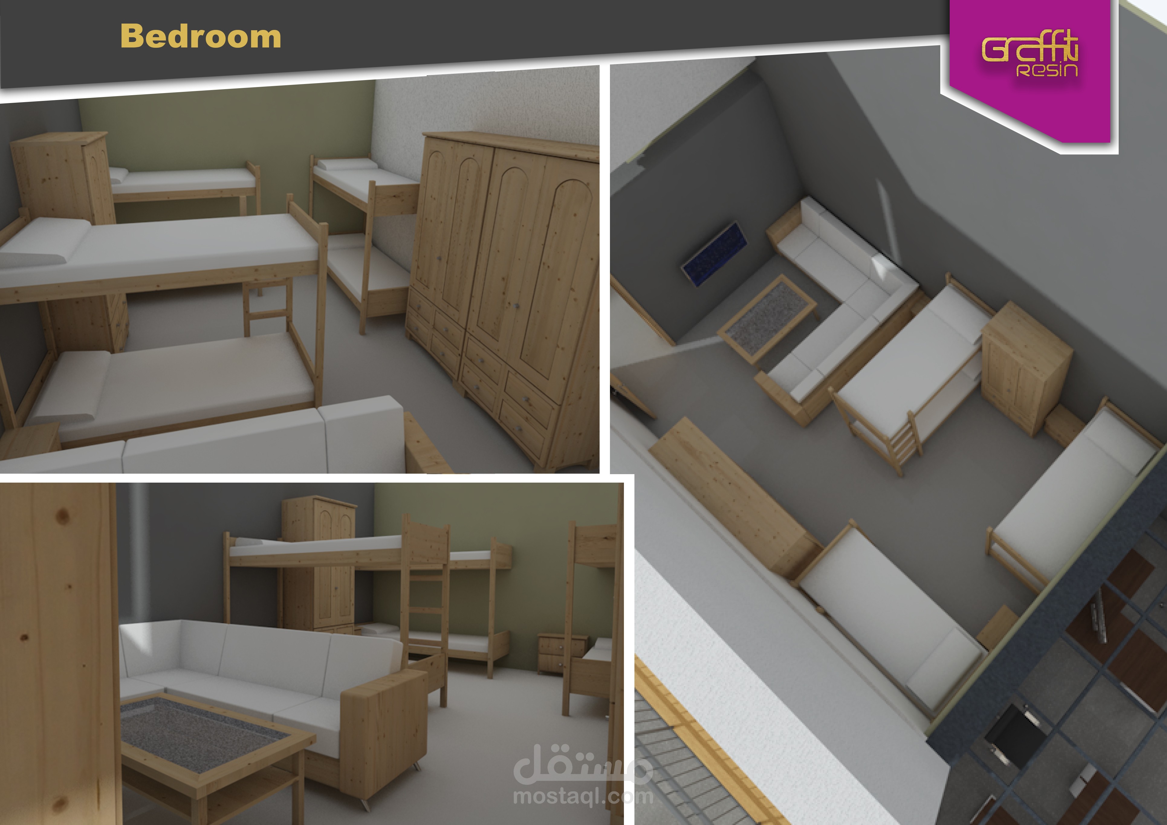 تصميم ثلاثي الابعاد مع التقسيم الداخلي حسب المتطلبات المحتاجه