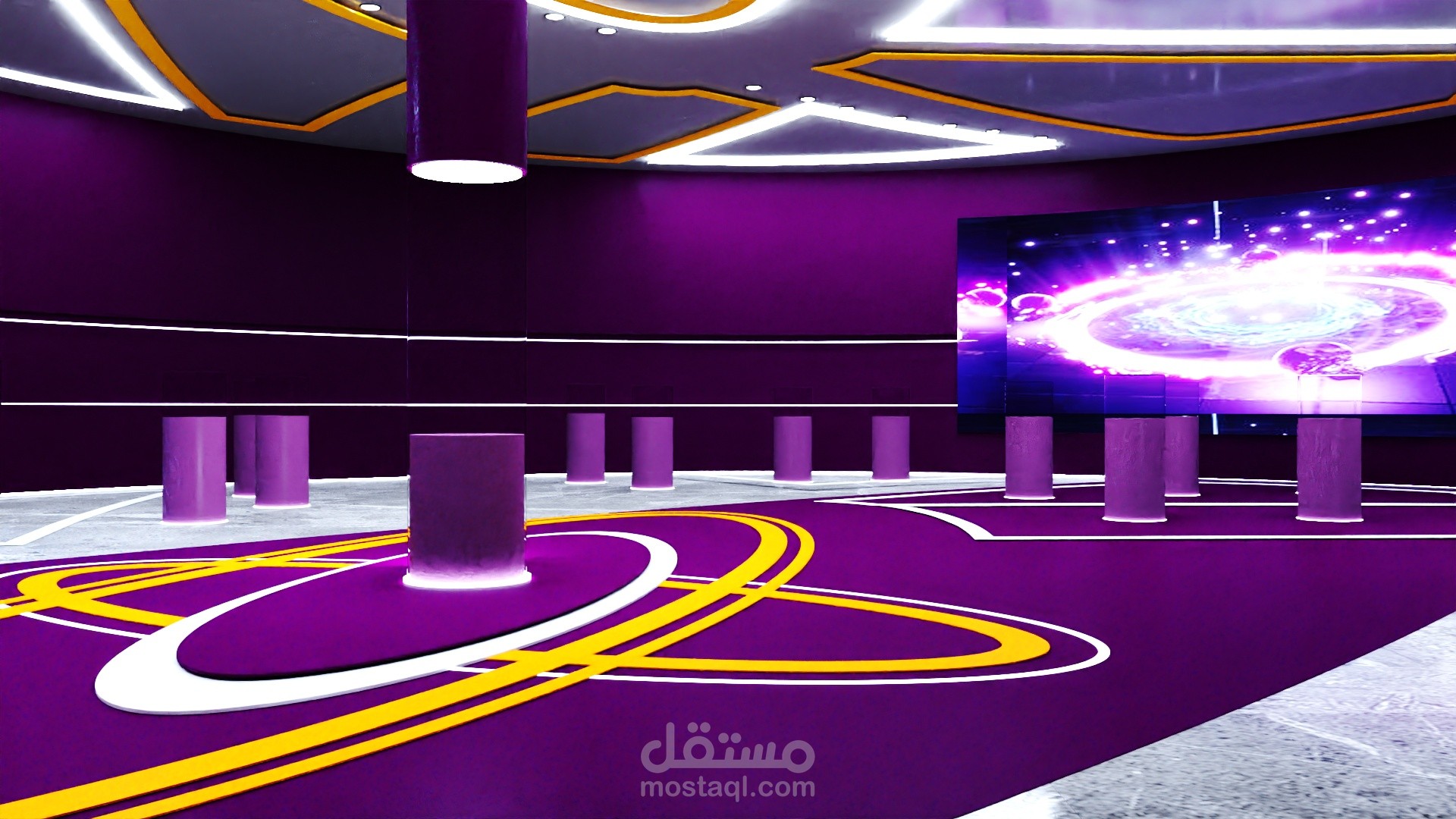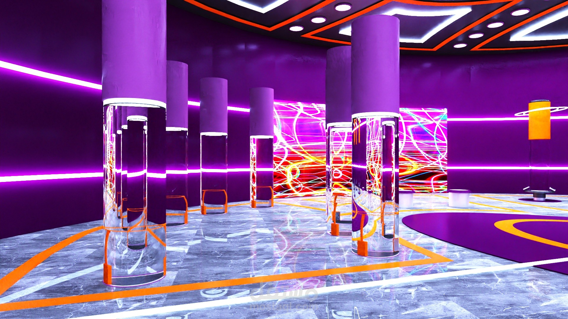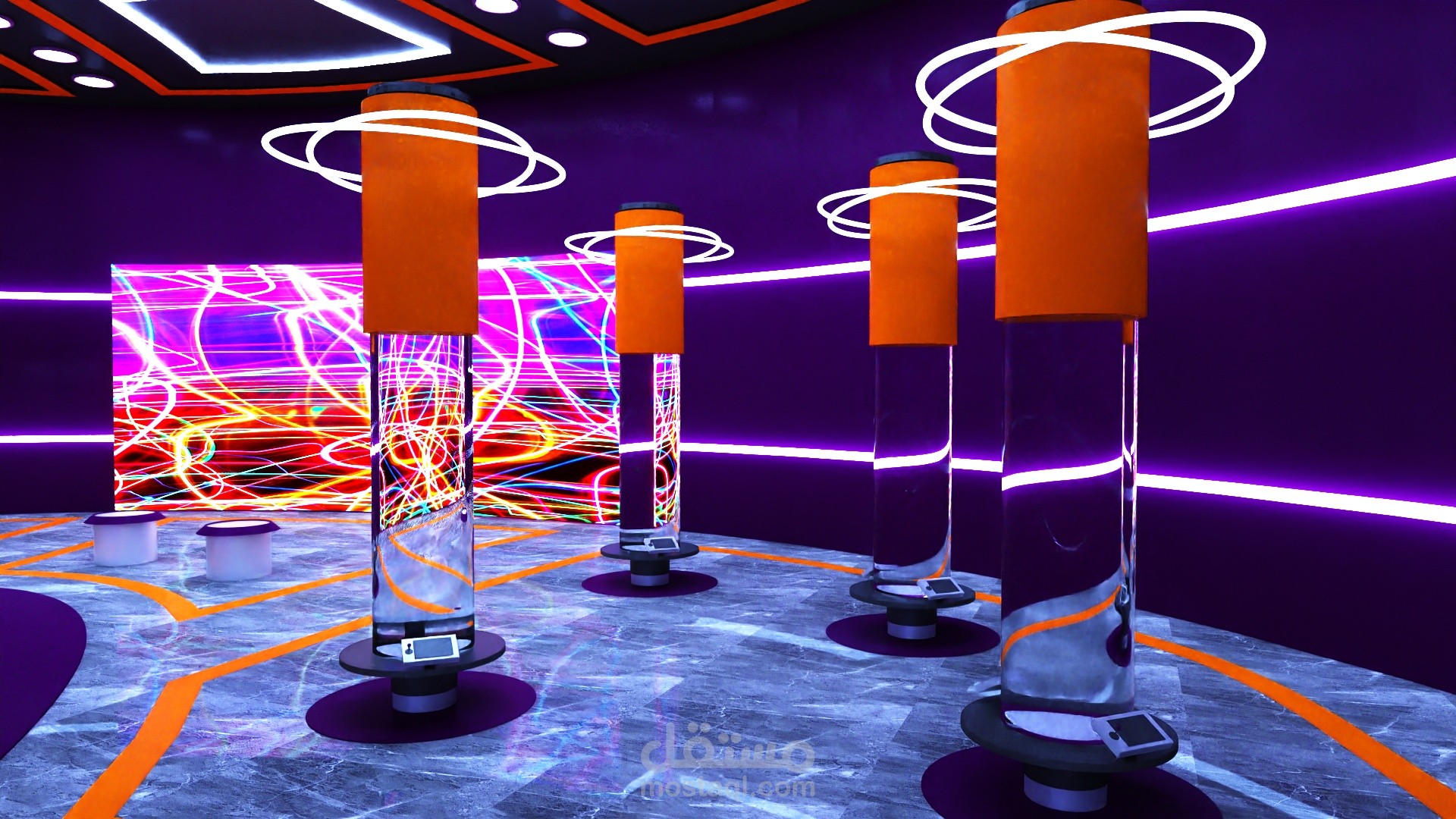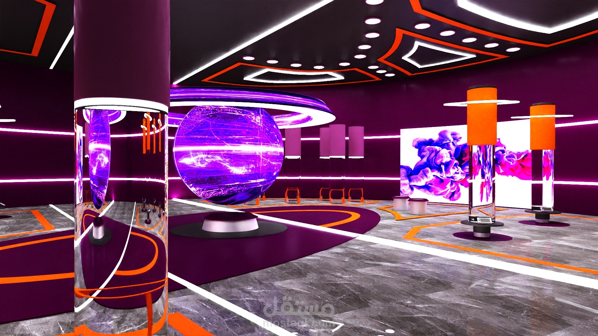 The project lines are inspired by the atom The work of scientist Addison is treated within the museum by interacting with her and experimenting with her