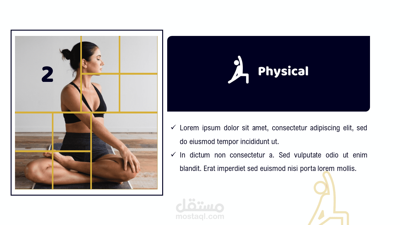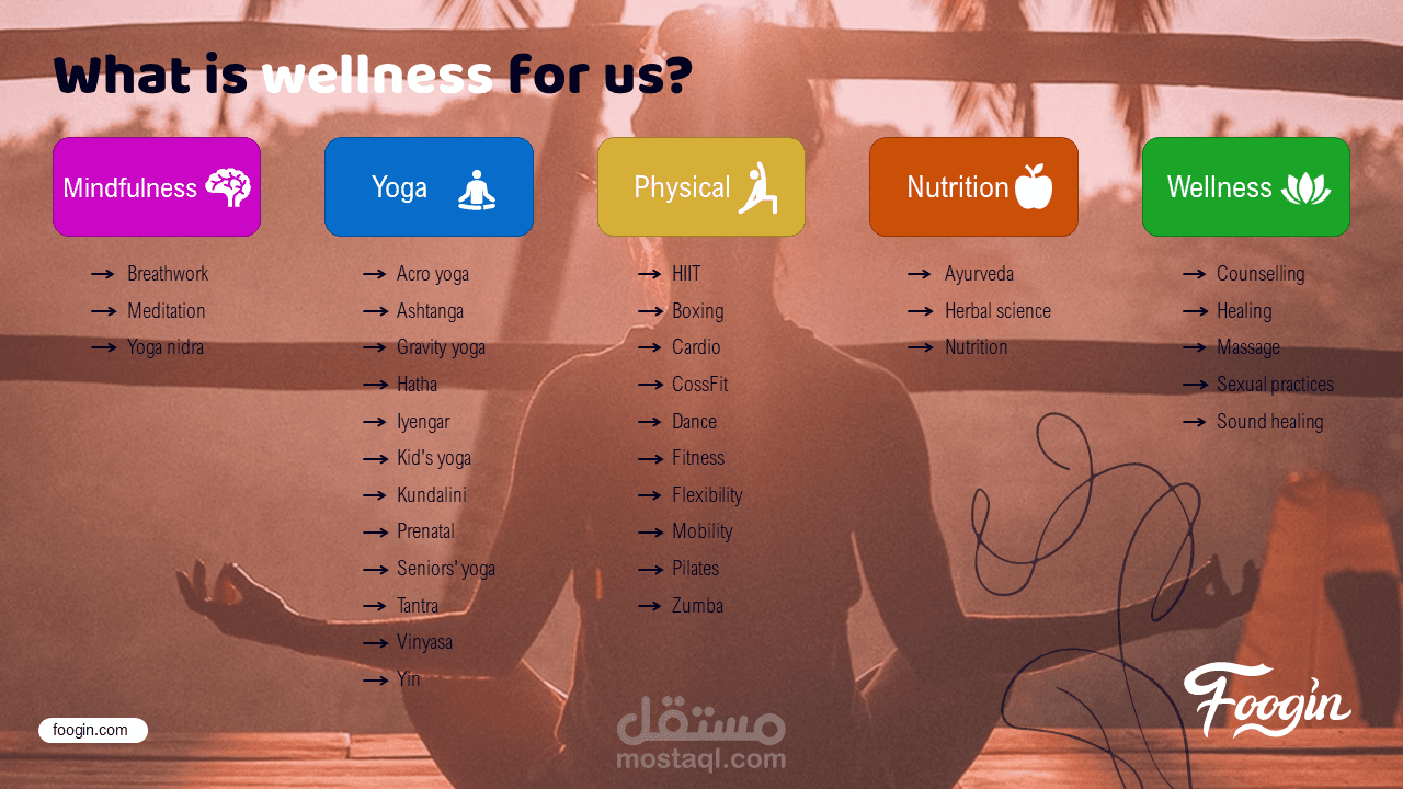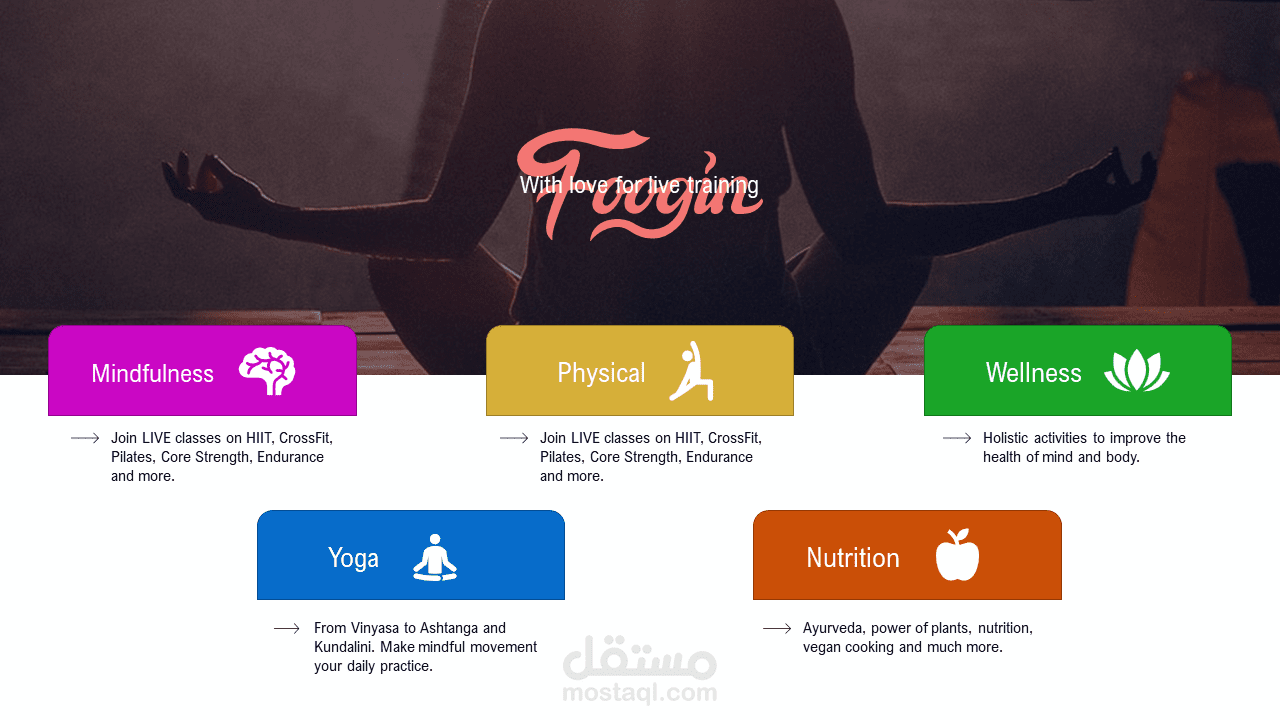 عرض تقديمي وقالب لمركز تدريبي عبر الانترنت خاص باليوغا وغيرها من الرياضات الأخرى.