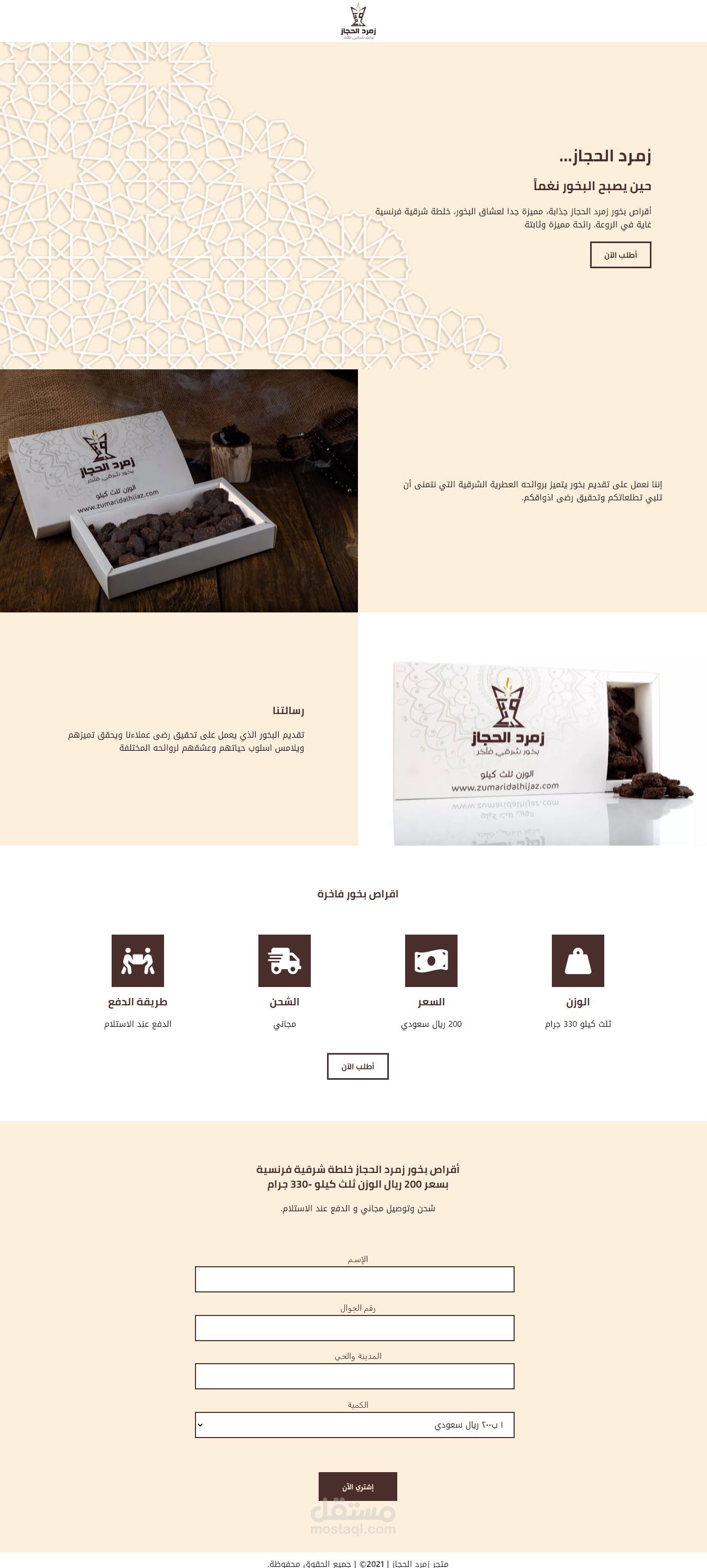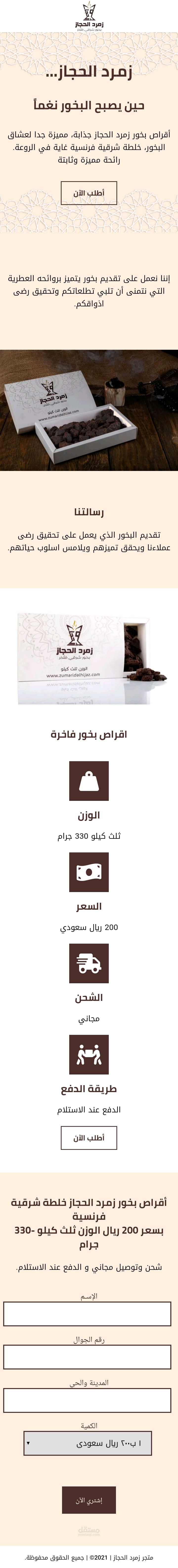 صفحة هبوط لمتجر زمرد الحجاز لبيع البخور الفاخرة