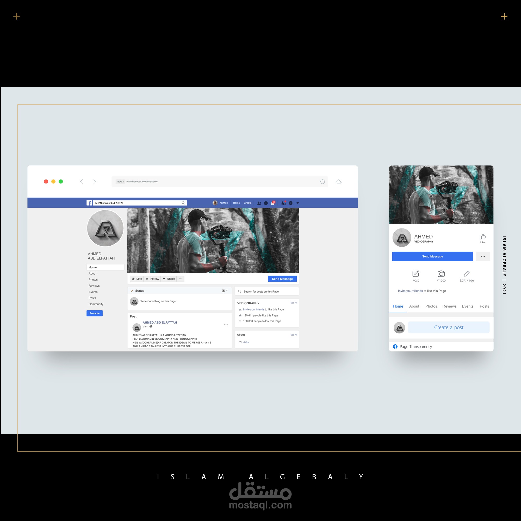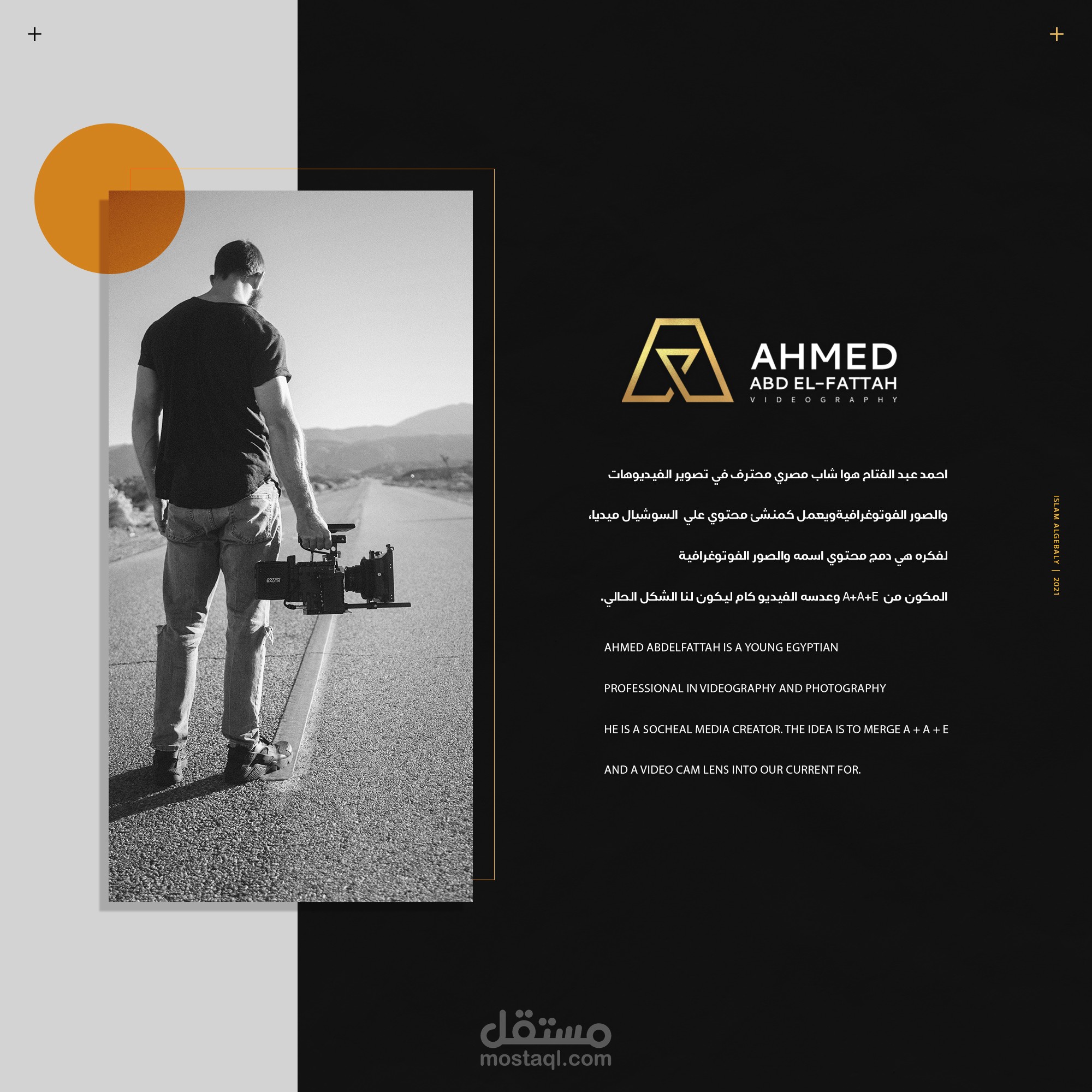 أحمد عبد الفتاح هو شاب مصري محترف في تصوير الفيديوهات والصور الفوتوغرافيه ويعمل كمنشئ محتوي علي السوشيال ميديا , الفكره هي دمج محتوي اسمه وعدسه الكاميرا ليكون لنا الشكل الحالي