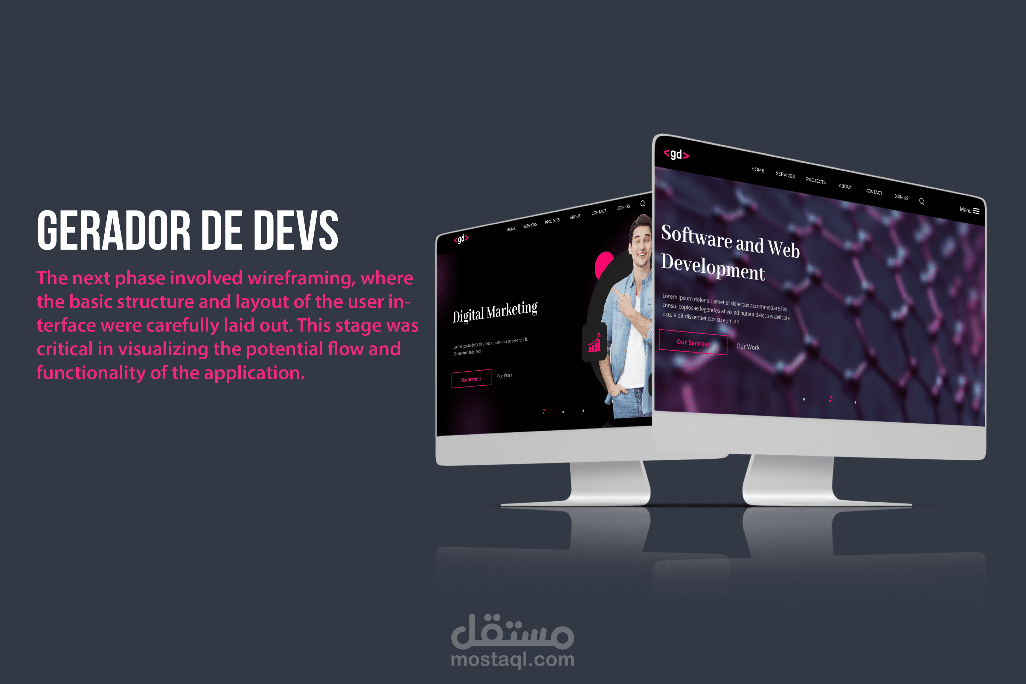 The project was an intensive one-month UI/UX design effort for a top Brazilian tech firm, focused on improving their main products. It began with detailed client discussions, moved to wireframing the interface's core layout, and concluded with sleek design prototypes that boost usability and visual appeal. Our detailed process from start to end guaranteed results that met the client's precise vision. Gerador de Devs