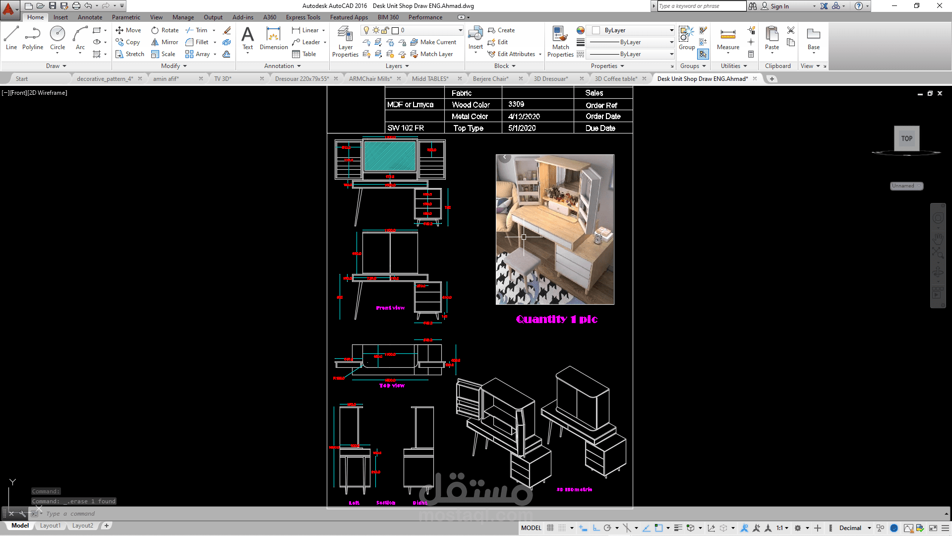 -انشاء تصميم اوتوكاد واحد SHOP DRAWING 2D لكافة الديزاينات والديكورات واللوجوات والنقشات