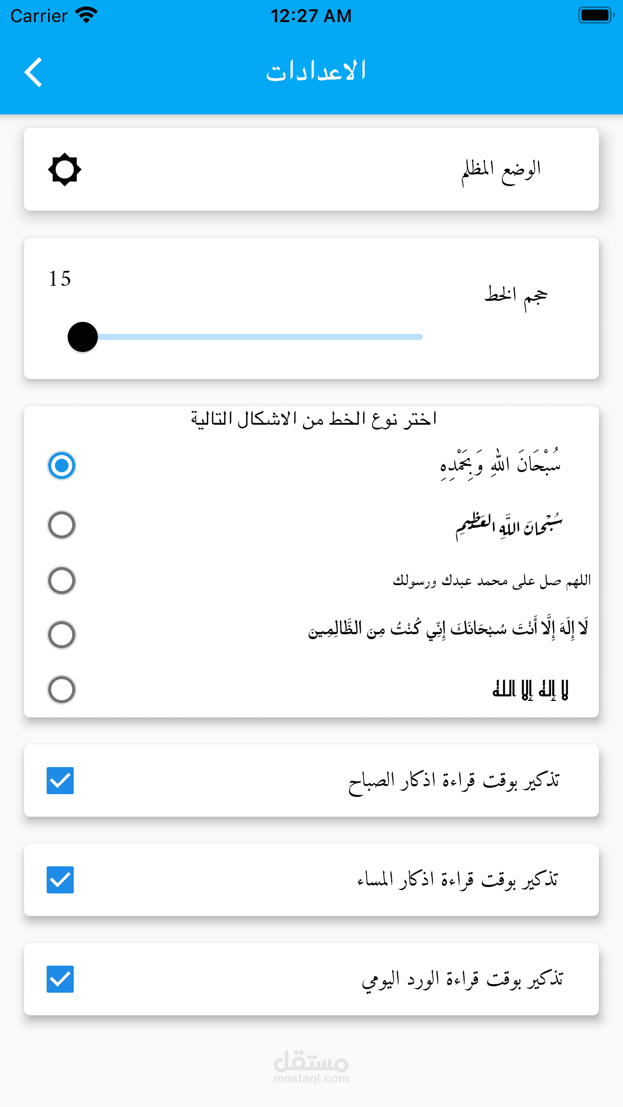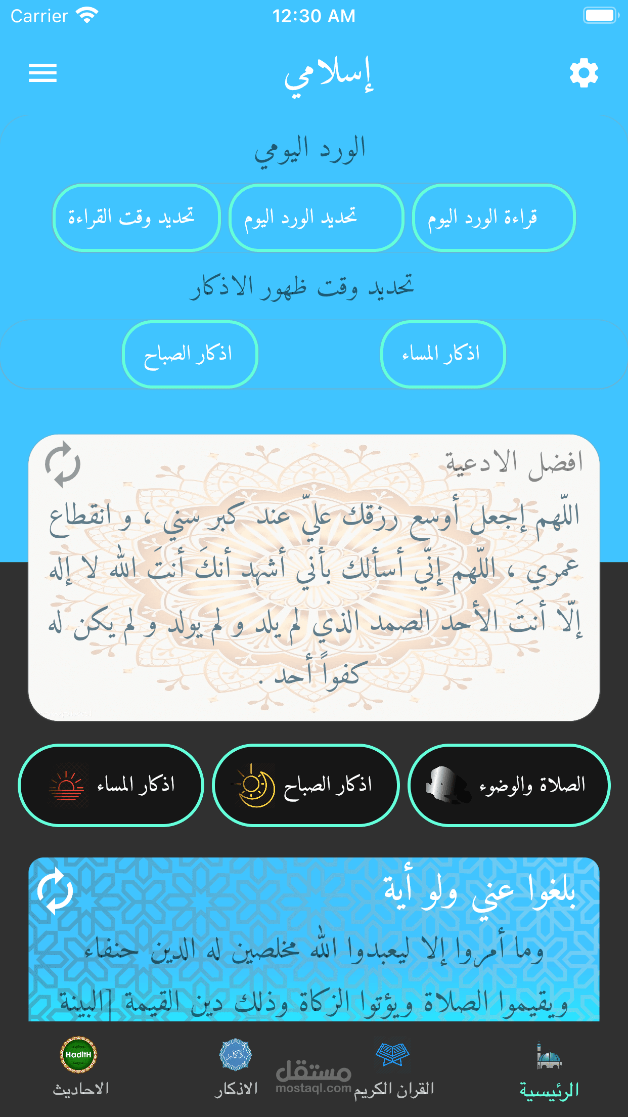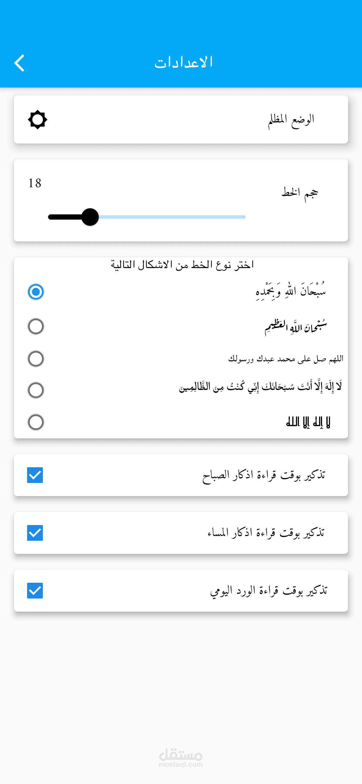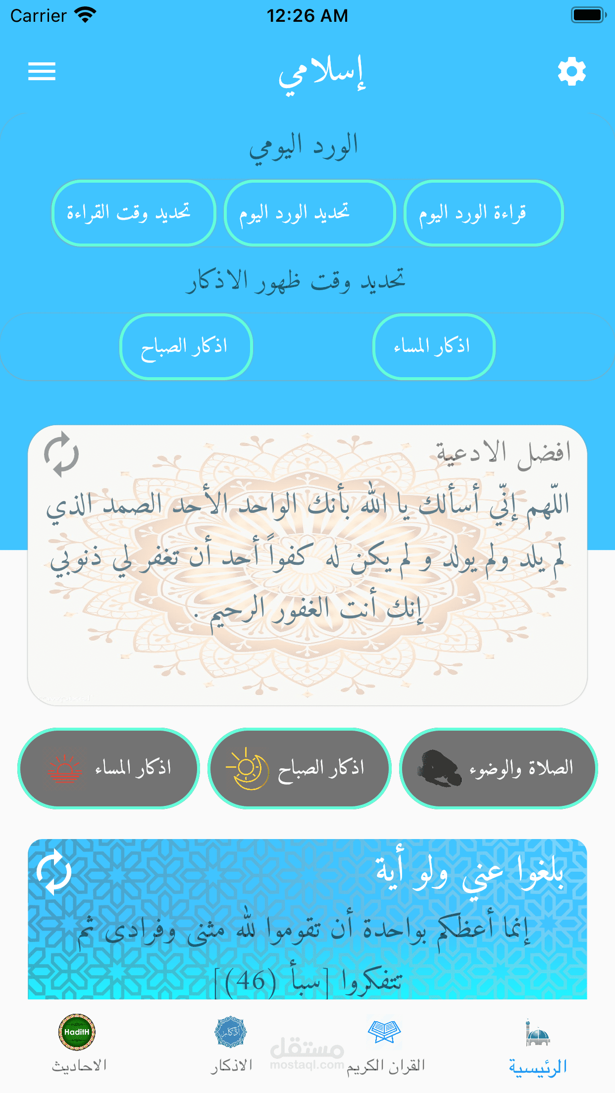 8- يوجد به تنبيه بوقت قراءة اذكار الصباح والمساء والورد اليومي.