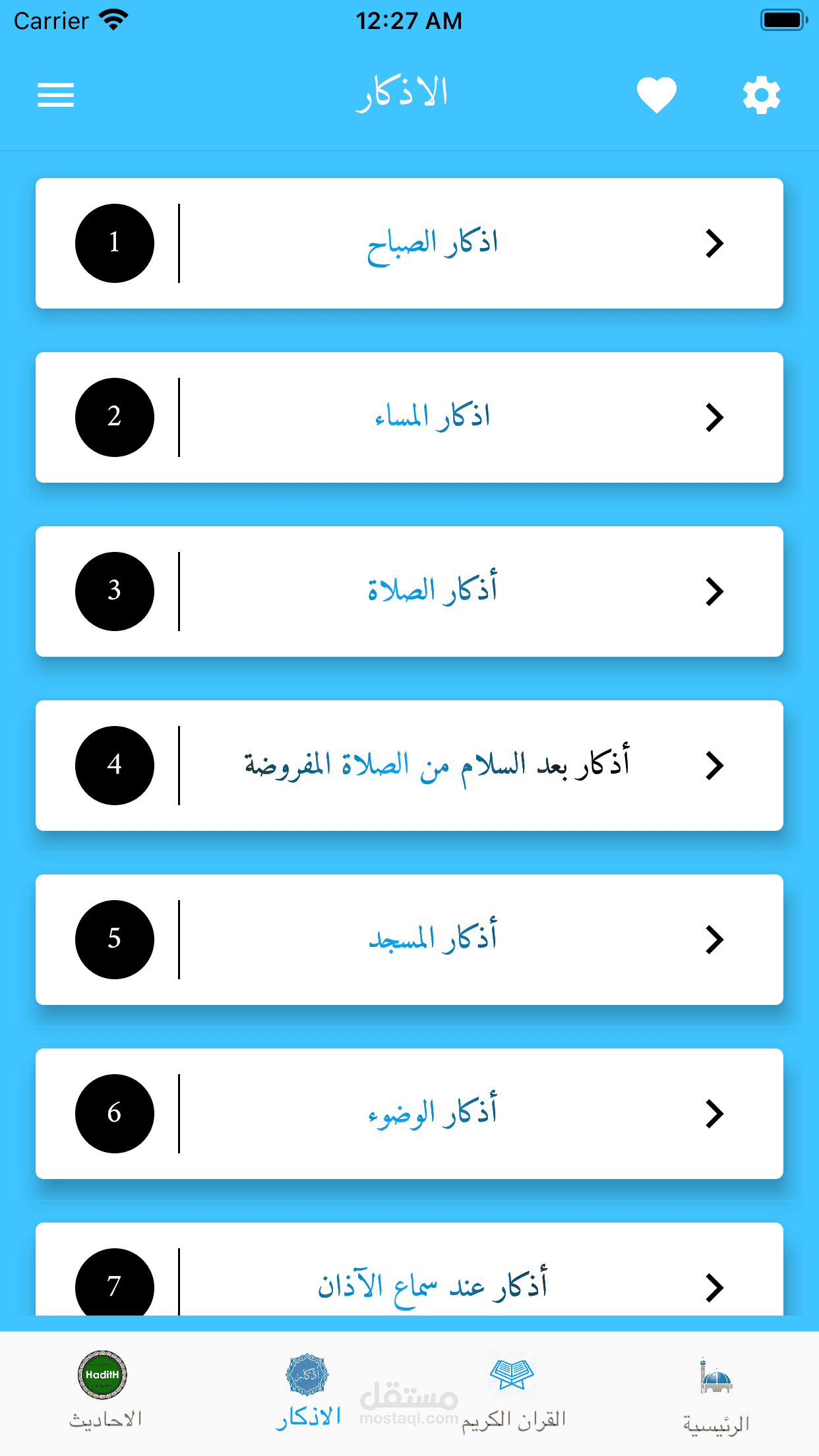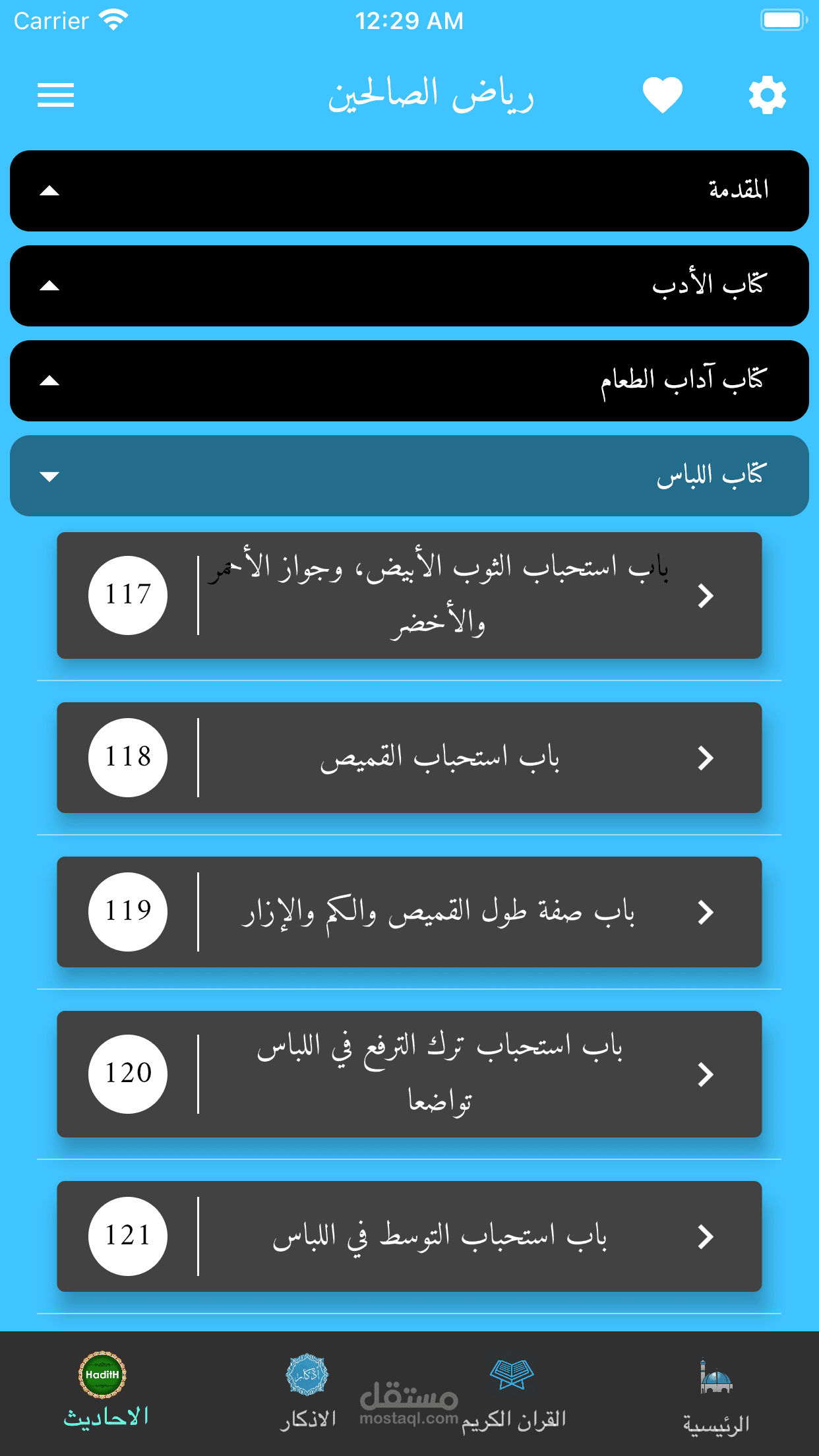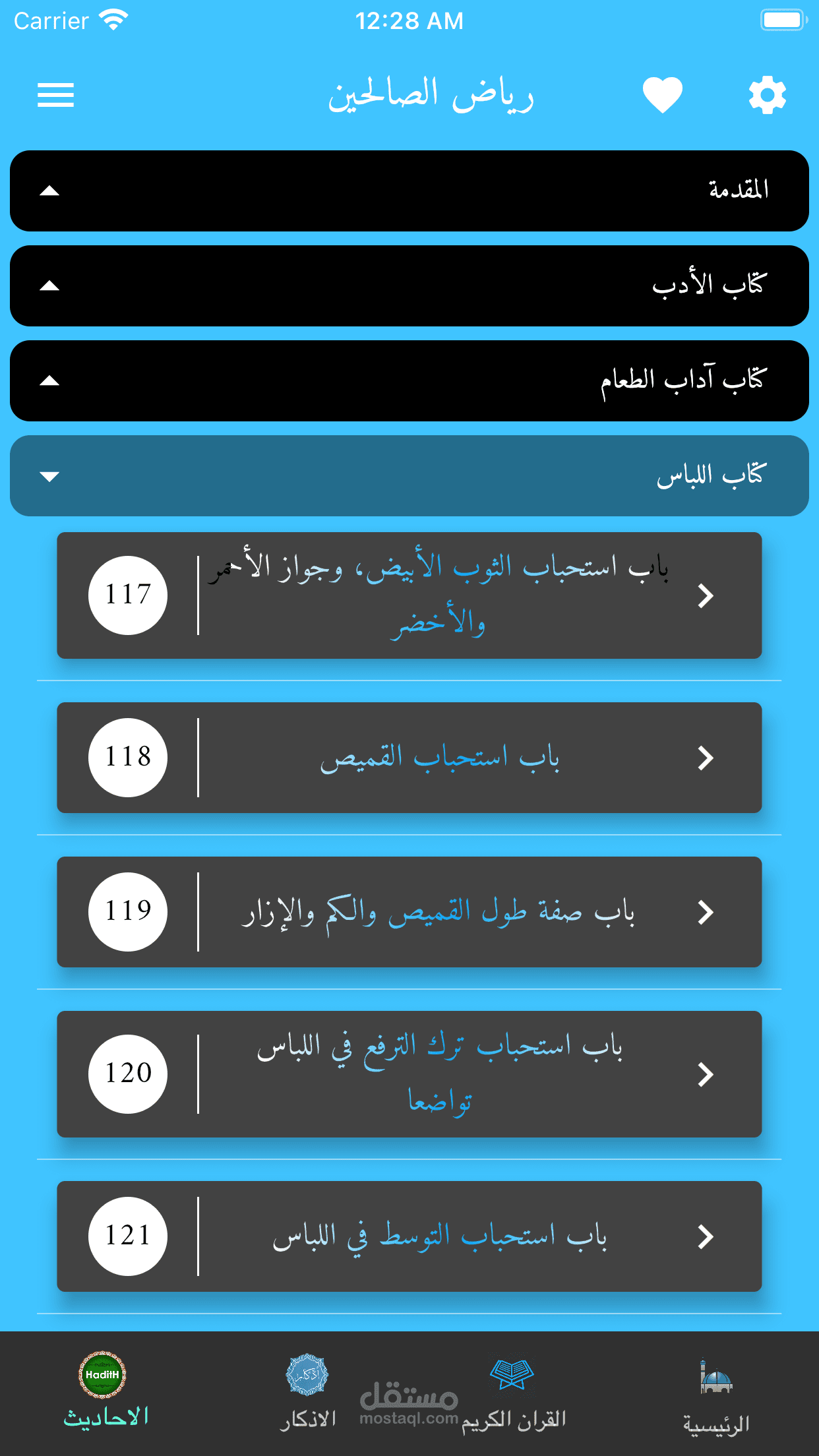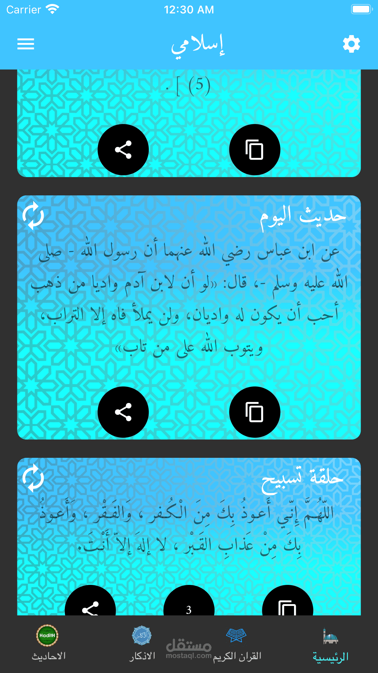 9- يوجد به صفحة للاحاديث المفضلة والاذكار .