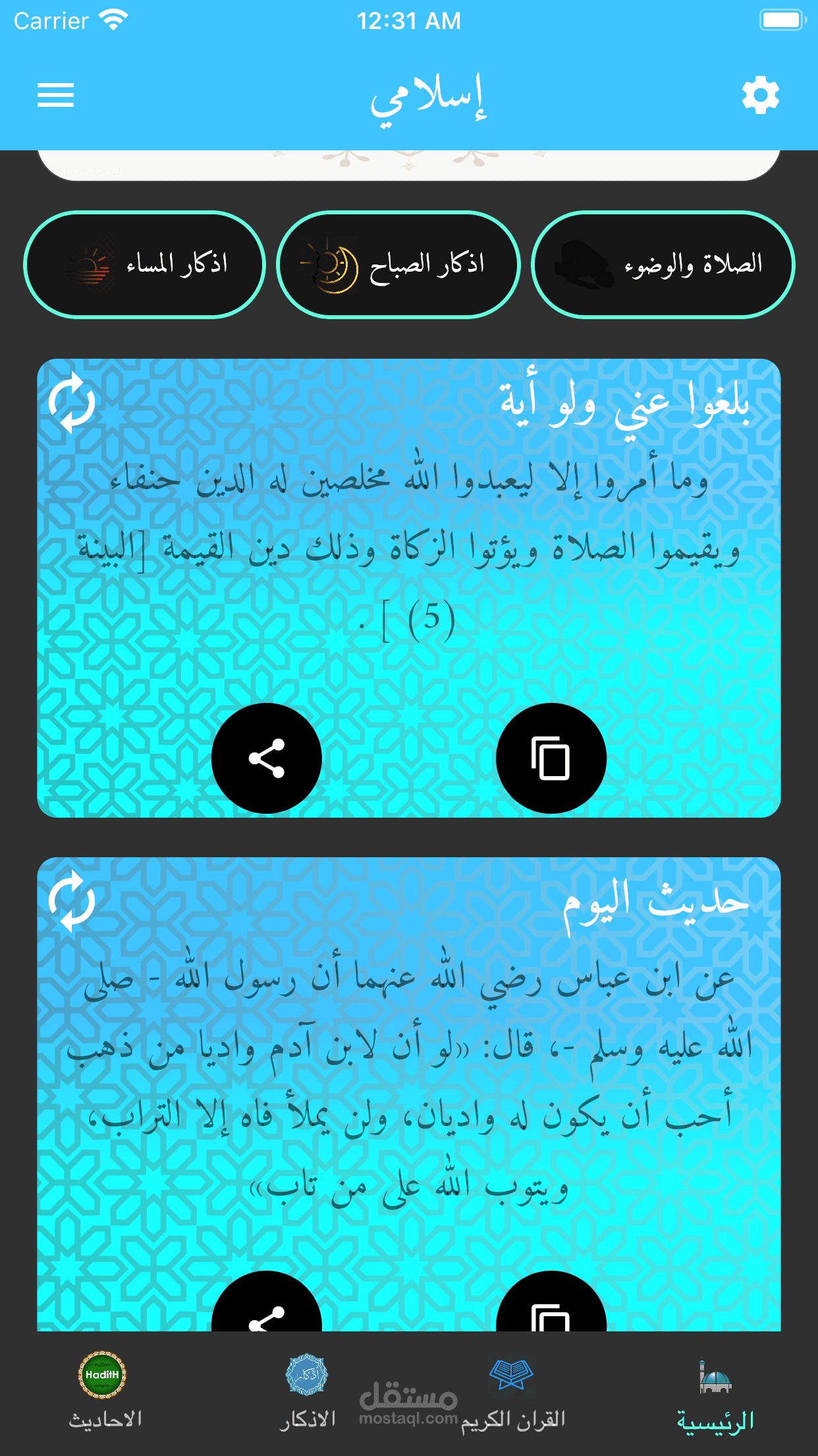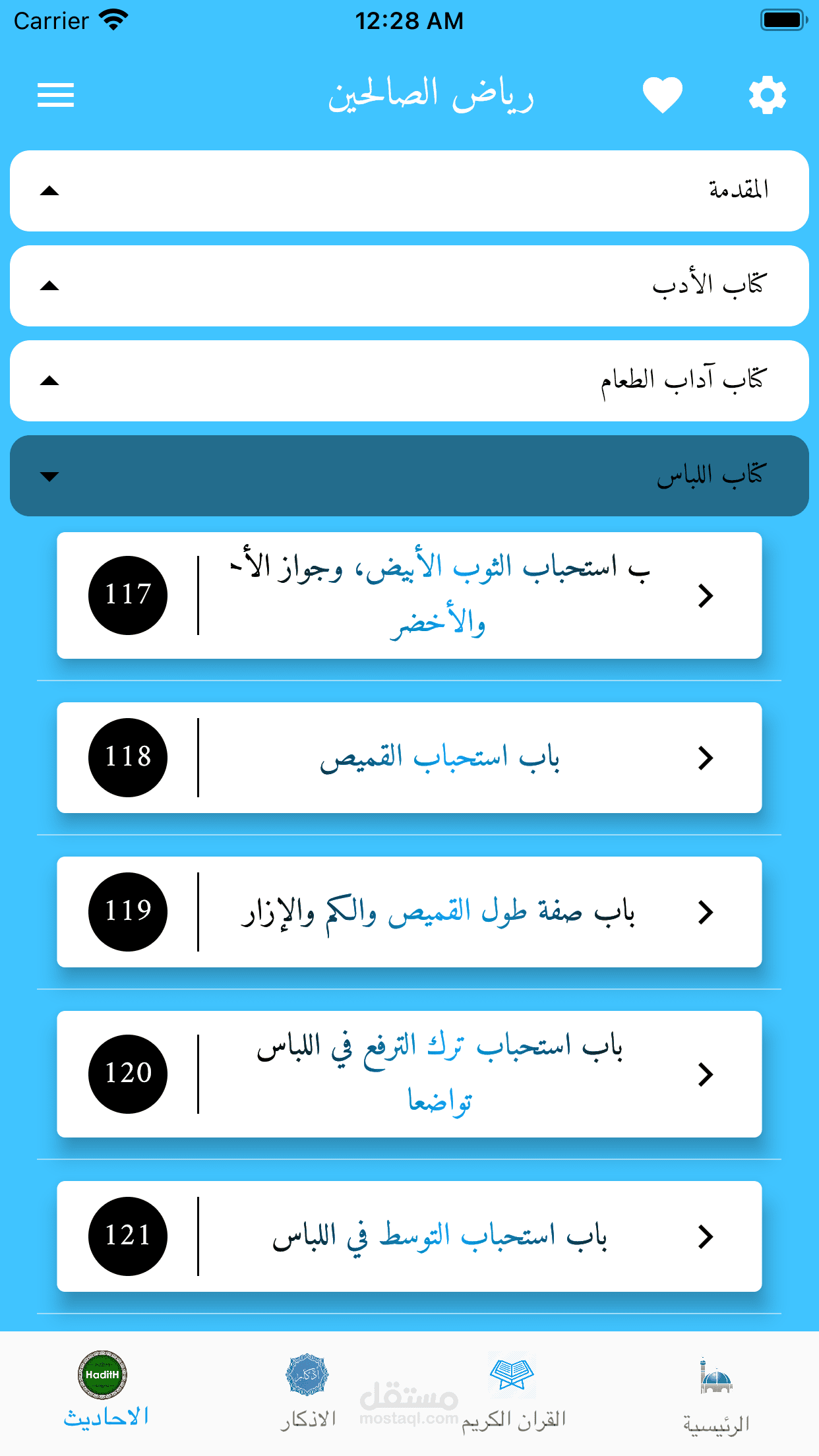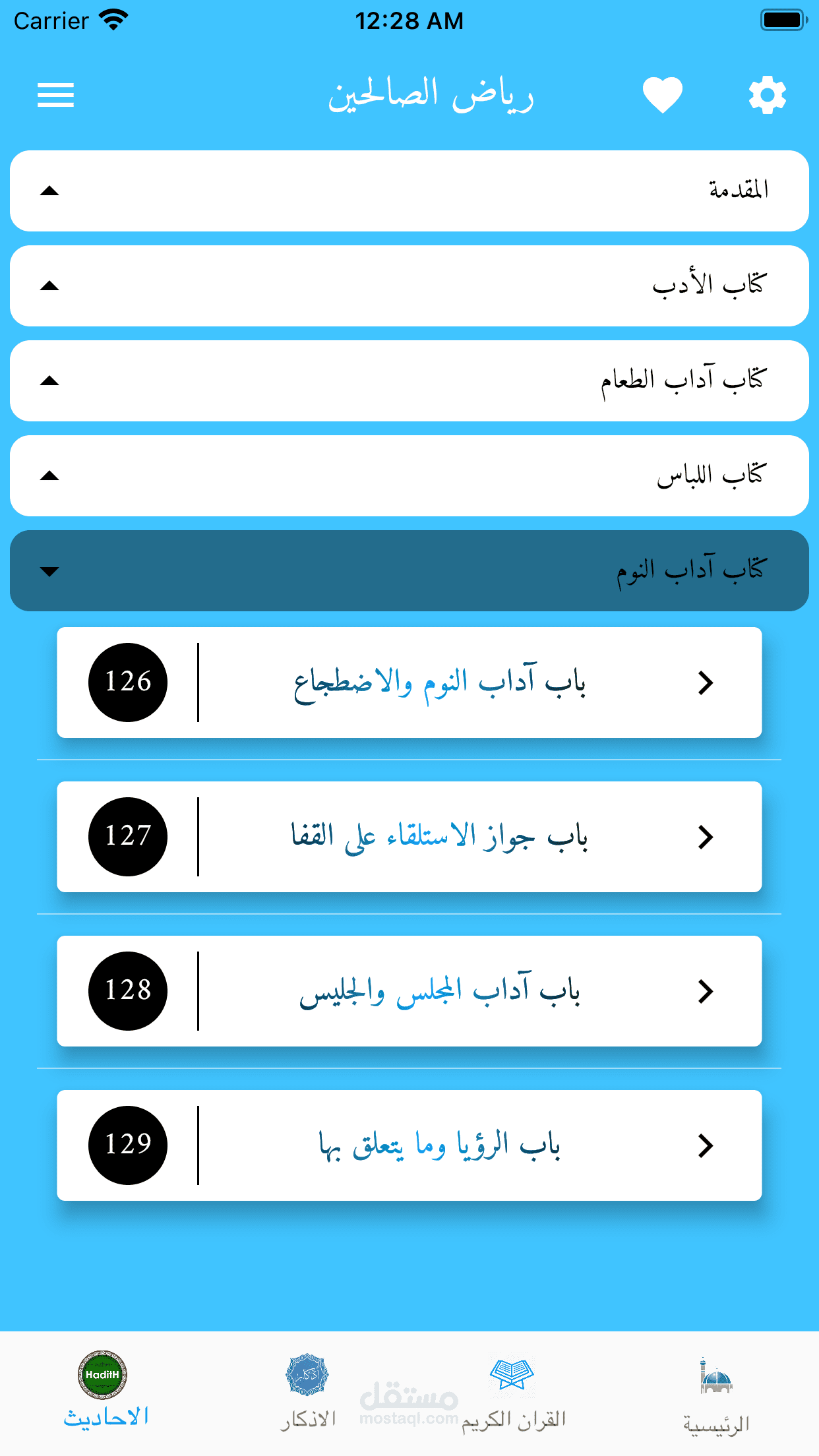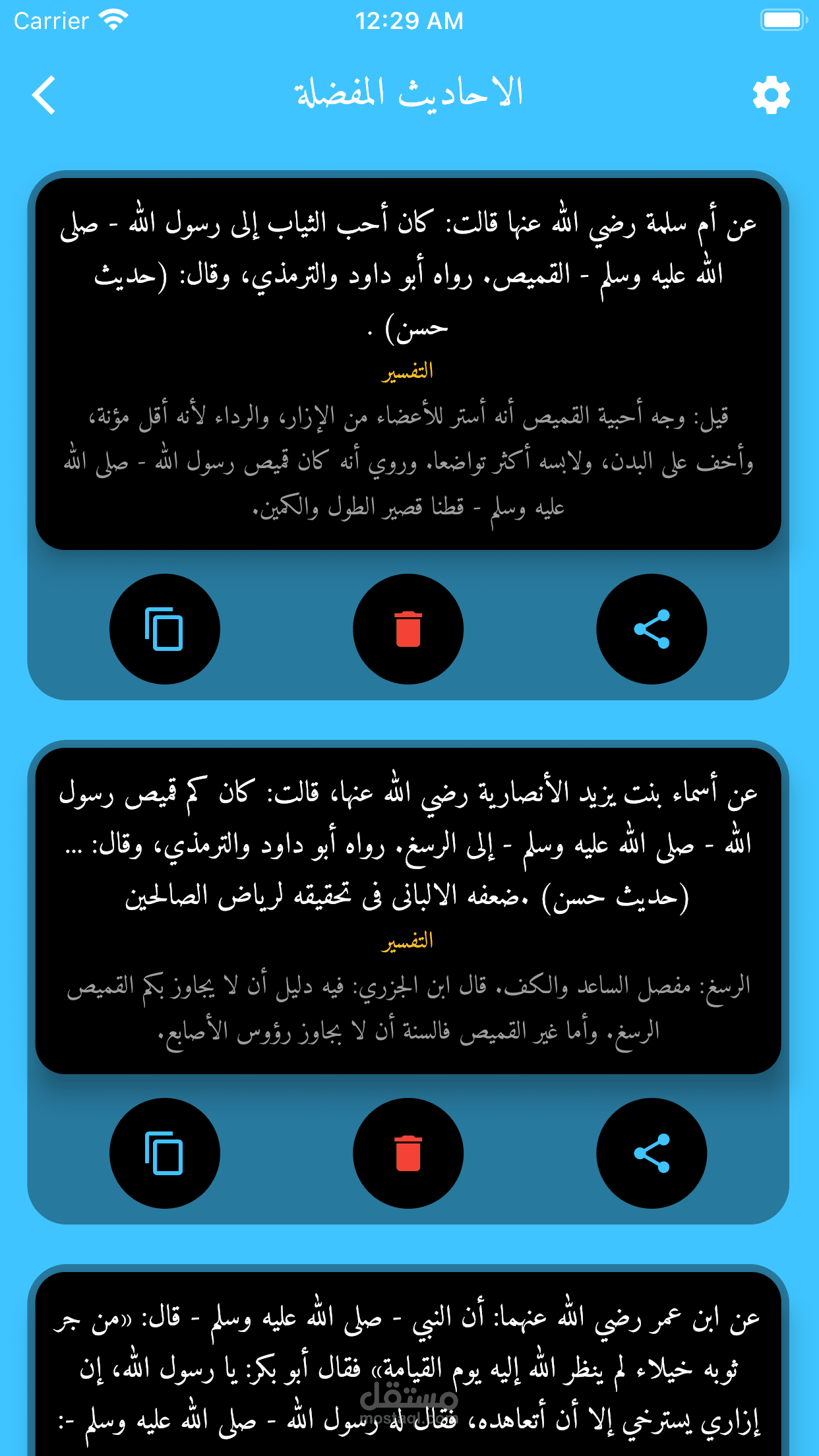 9- يوجد به صفحة للاحاديث المفضلة والاذكار .